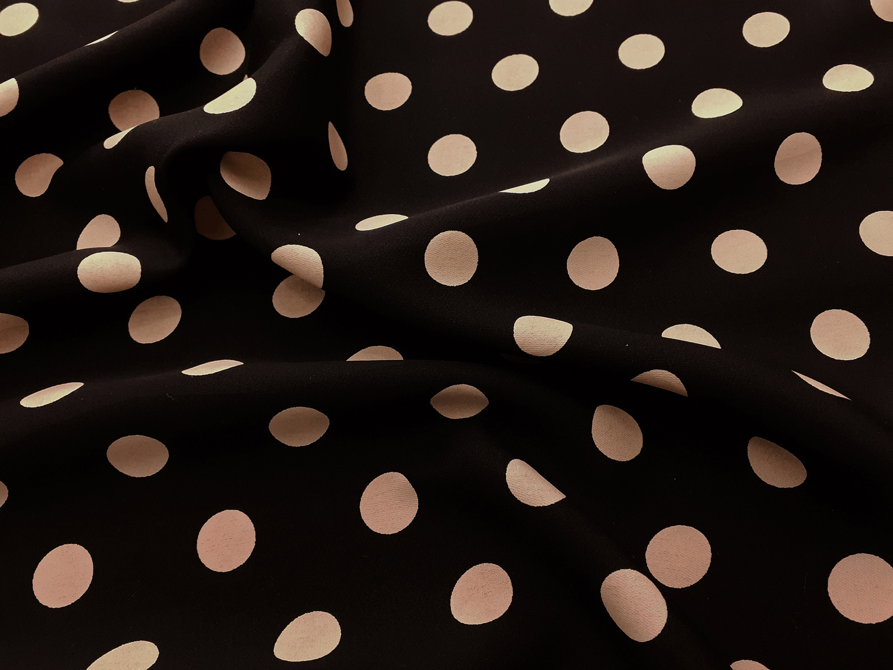 Crepe Marocaine in seta pois beige su fondo nero