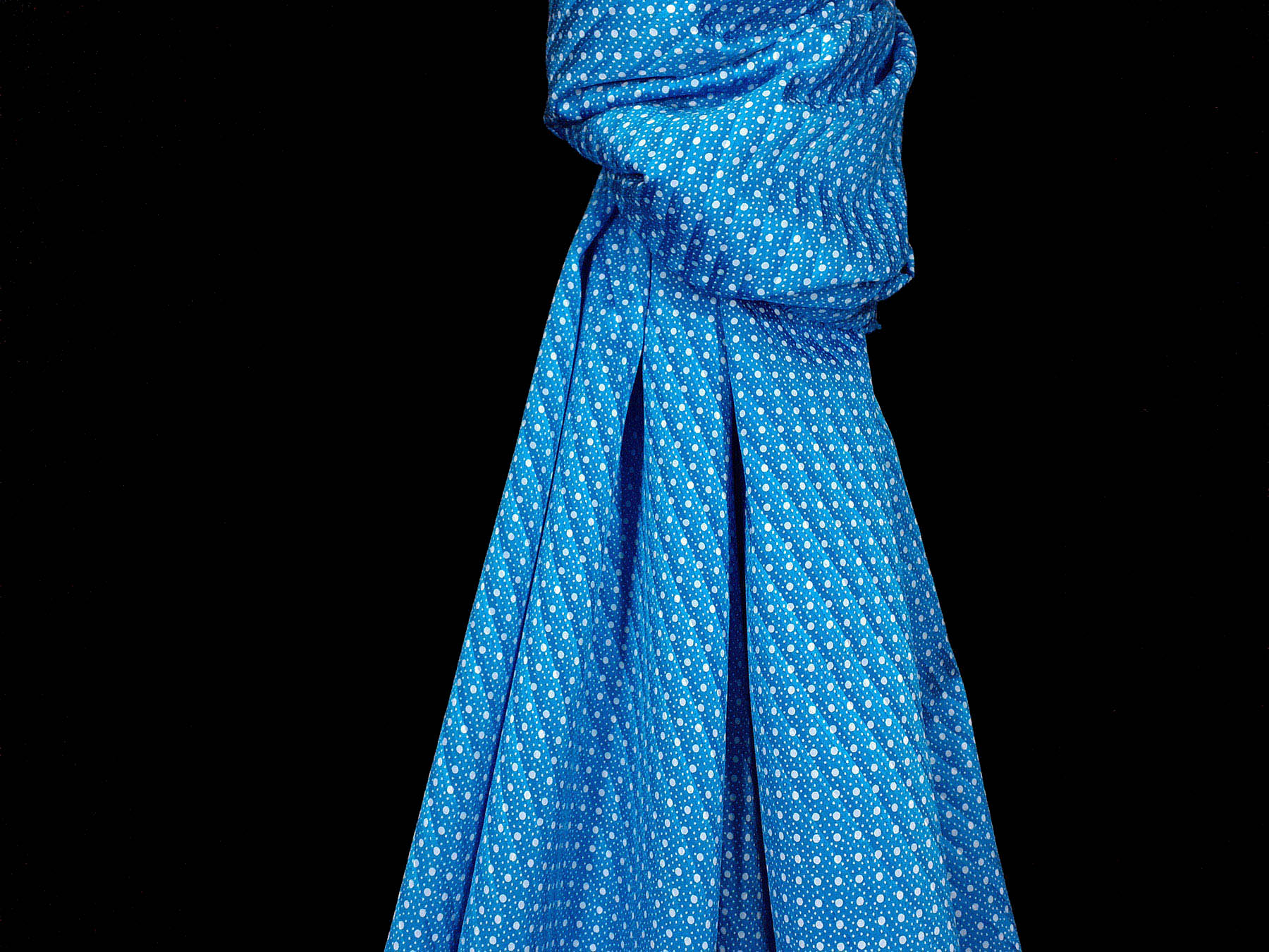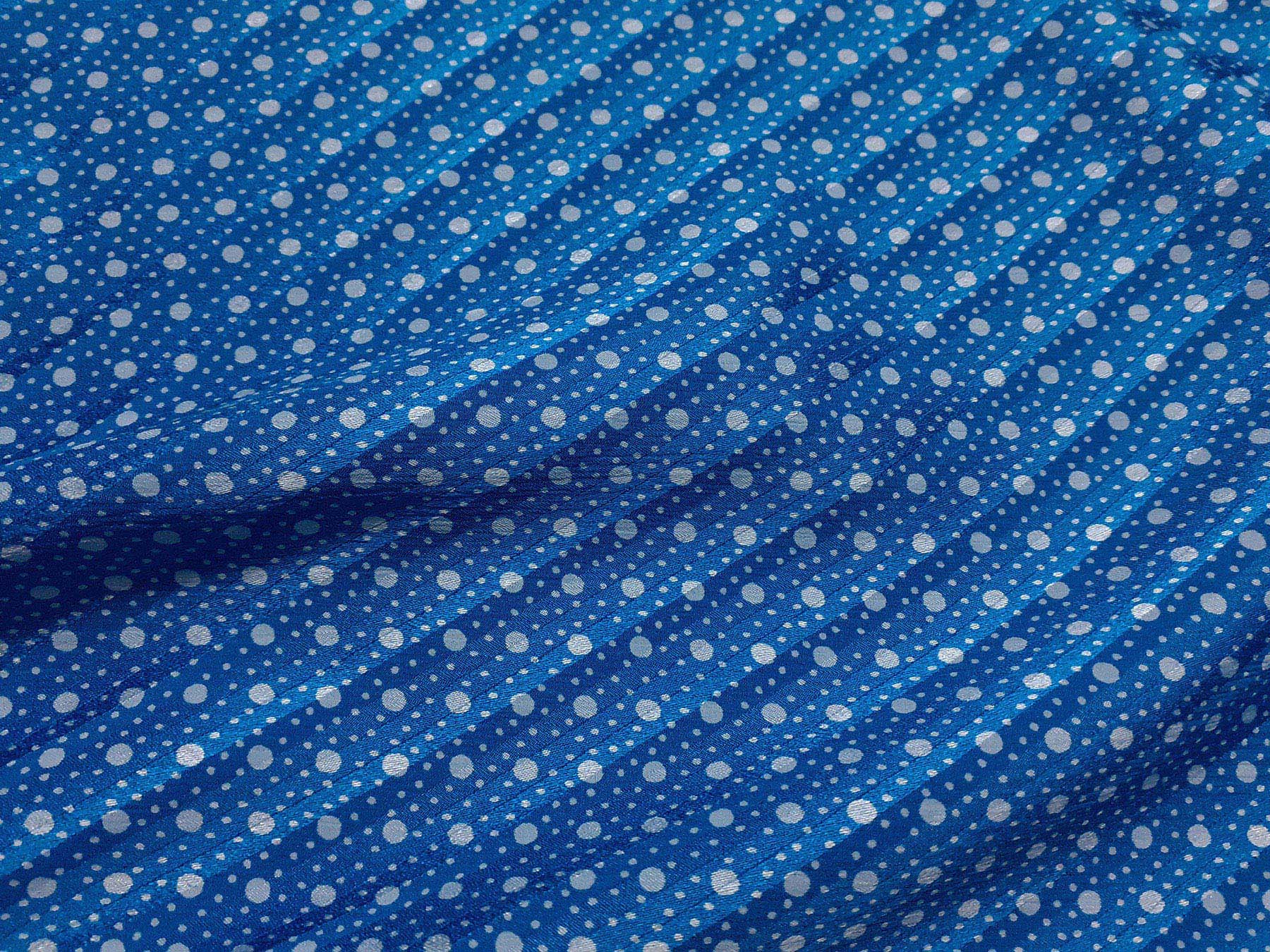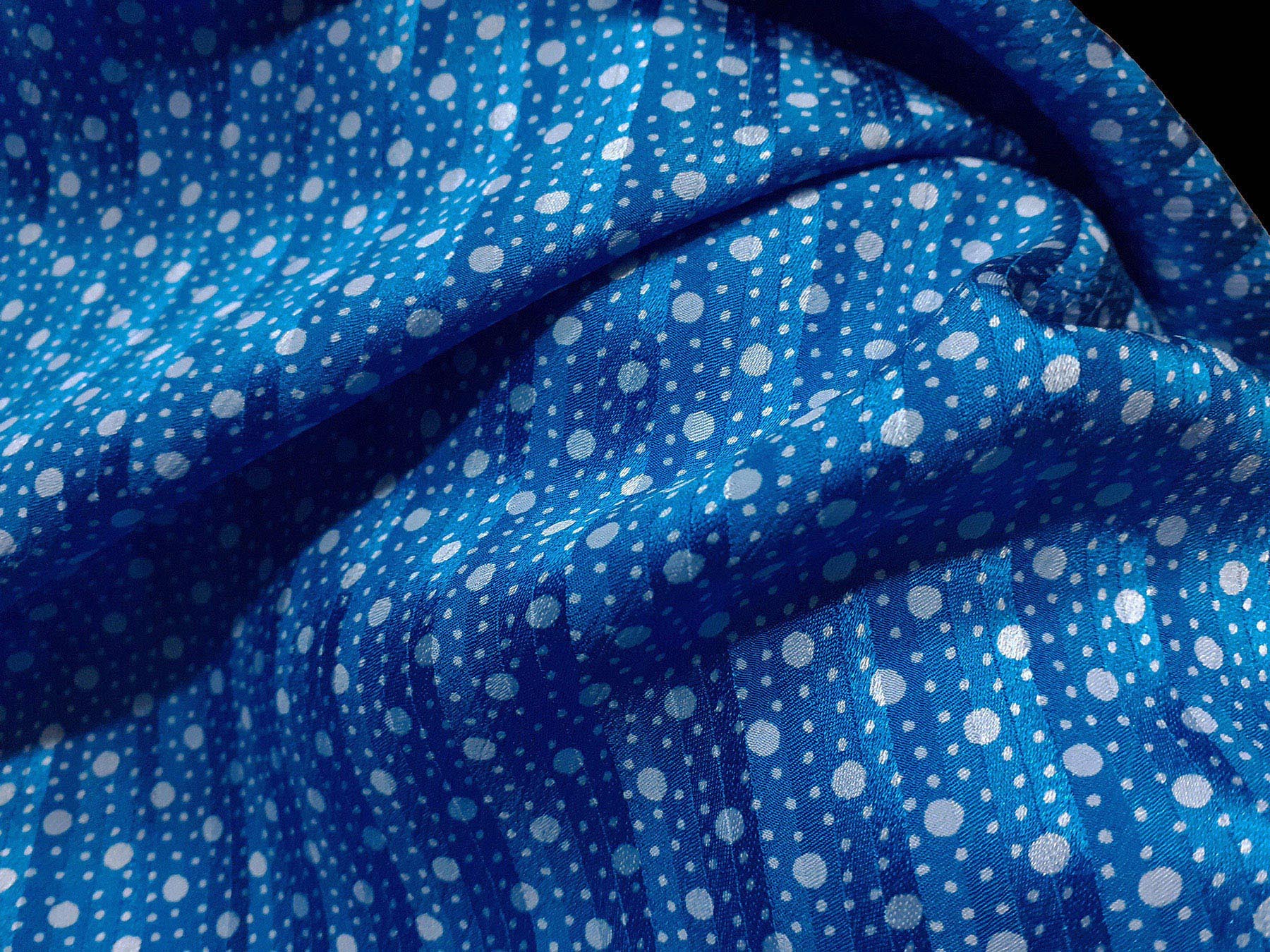 Seta jacquard piccoli pois bianchi su fondo azzurro nuance turchese