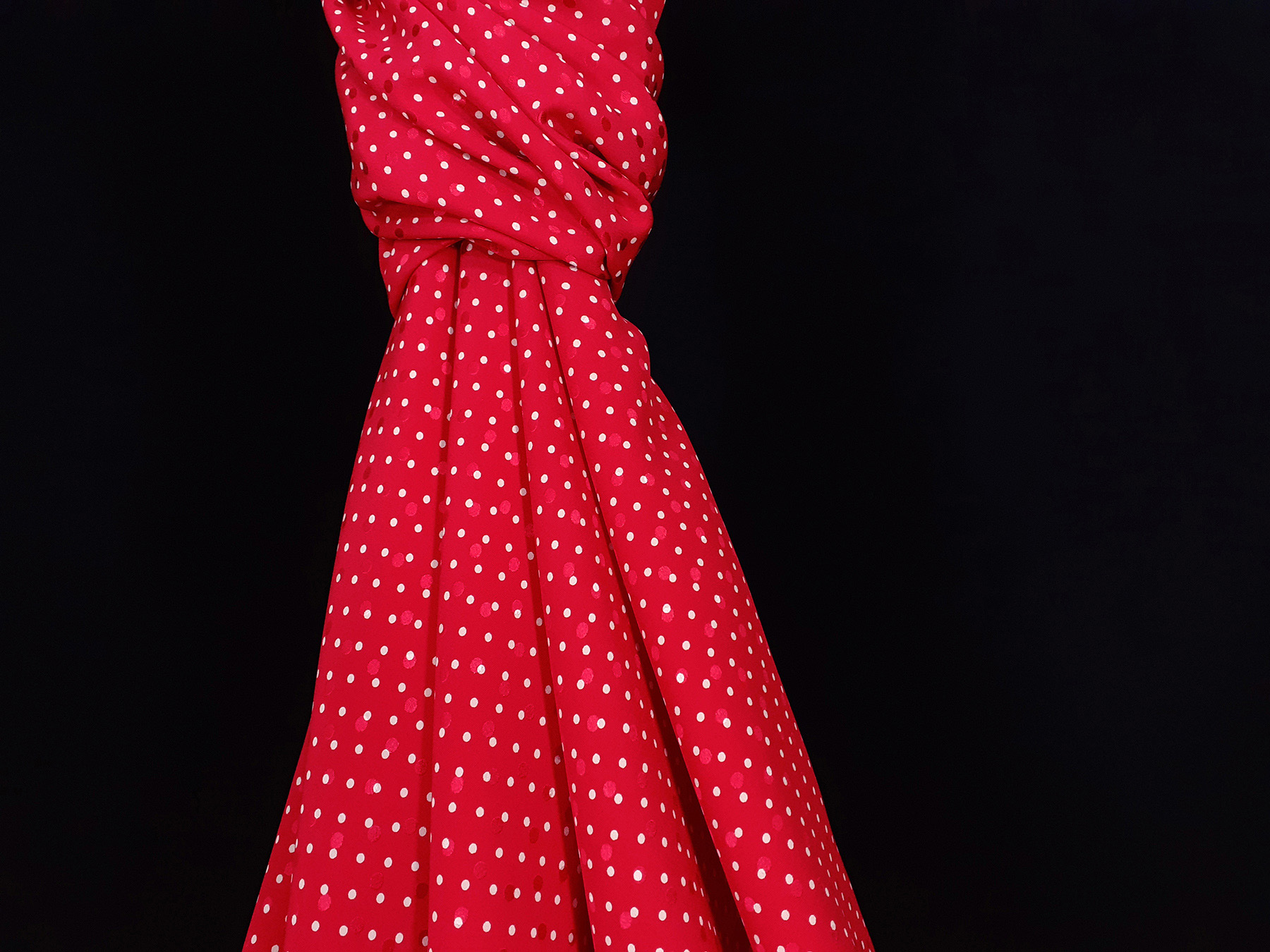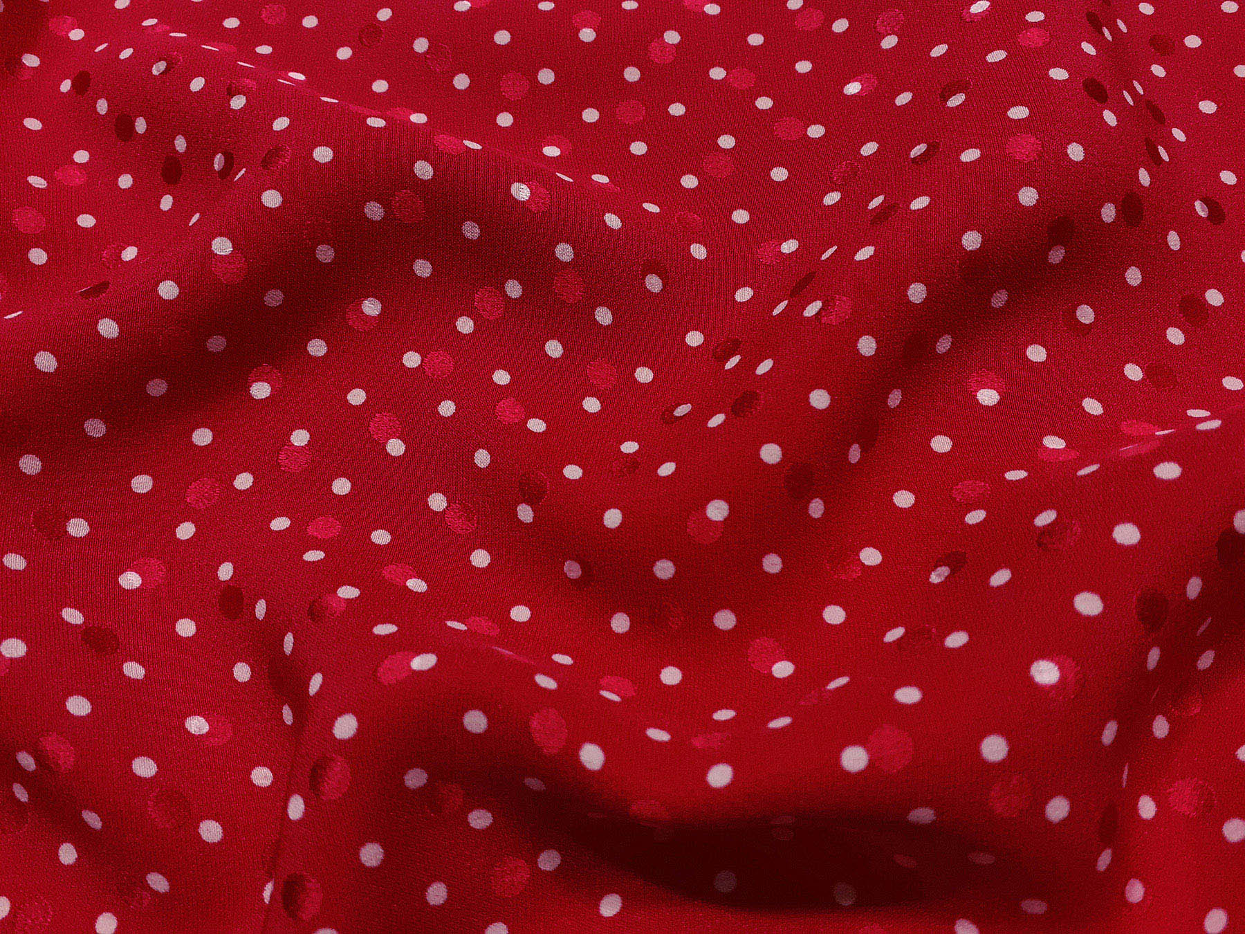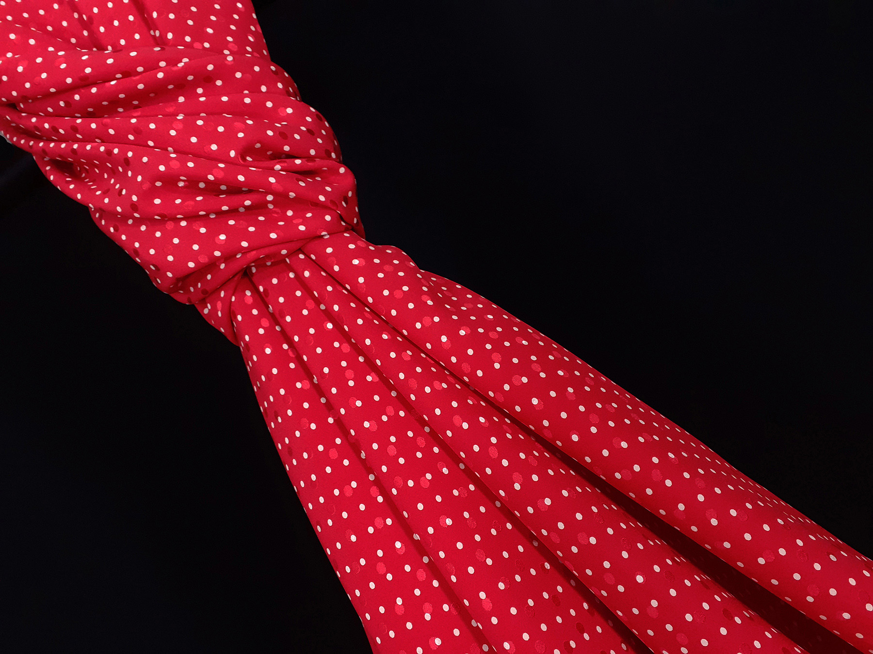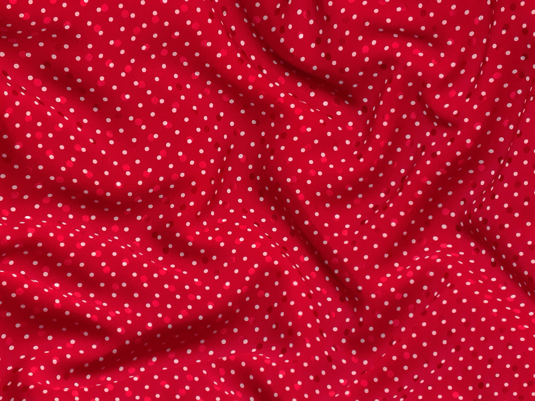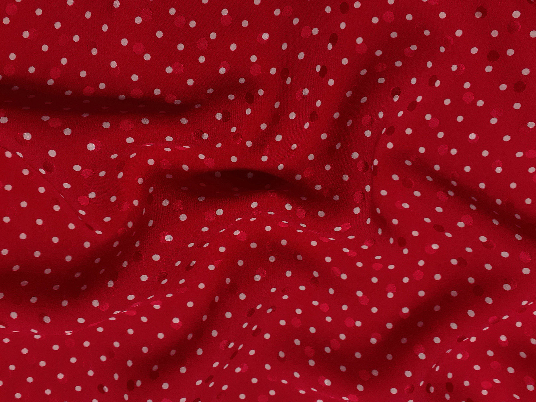 Seta jacquard piccoli pois bianchi su fondo rosso