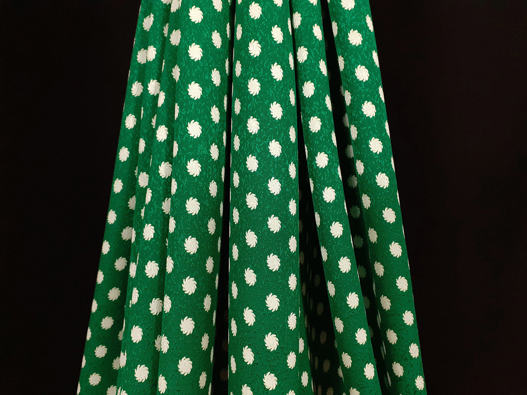 In questo tessuto di seta pura, prodotto a Como, la lavorazione jacquard con il contrasto fra lucido e opaco, crea un piacevole effetto di tridimensionalità. Perfetto per la realizzazione di abiti ampi e sinuosi, grazie alla sua morbidezza e caduta, può essere utilizzato anche per capi più lineari che mettono in evidenza la ricchezza e la particolarità di questo tipo di tessuto.