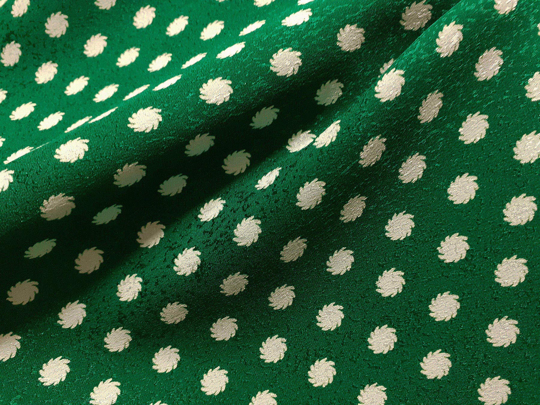 Seta jacquard fantasia astratta avorio su fondo verde