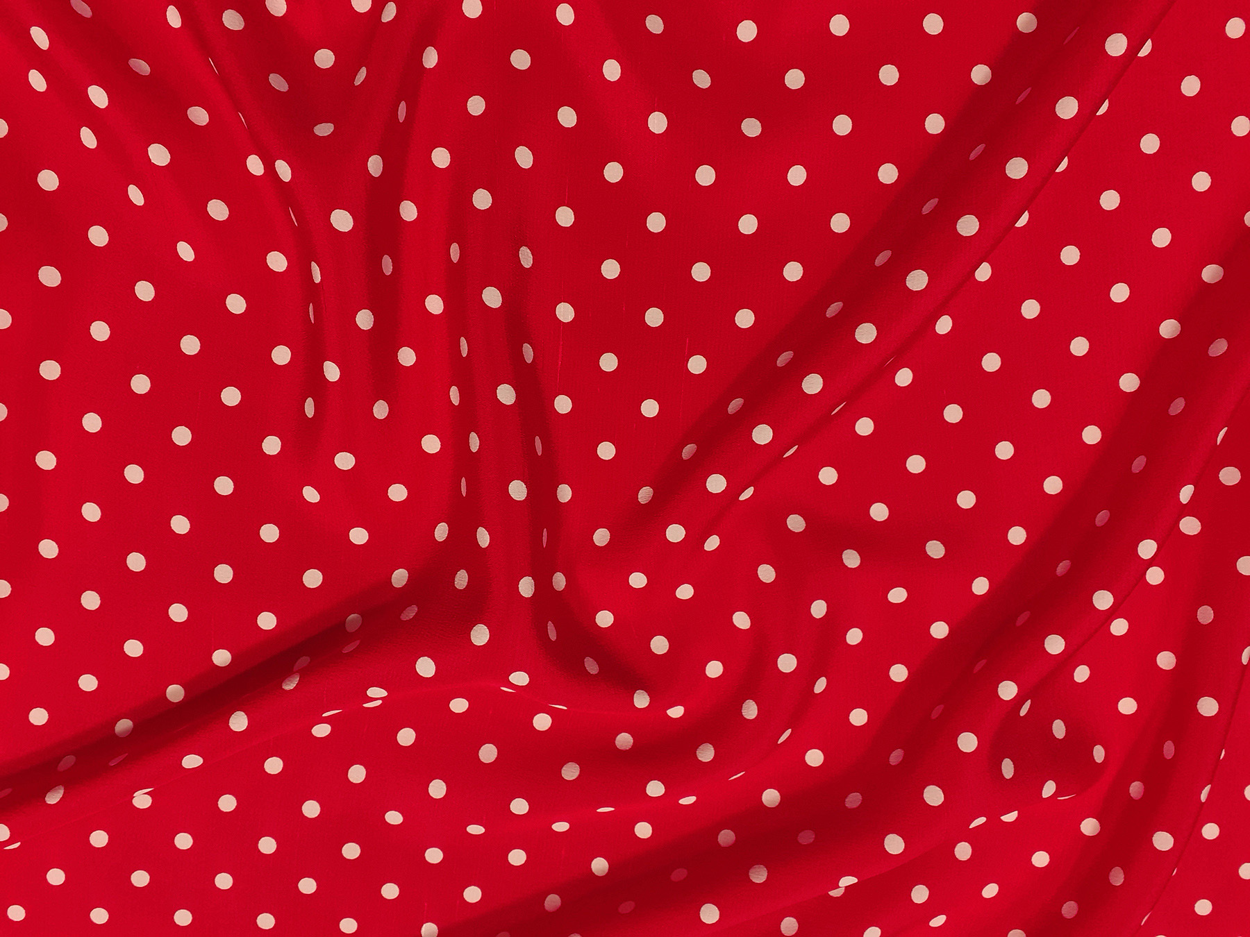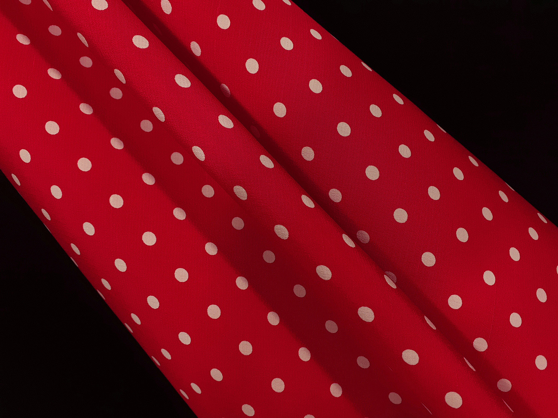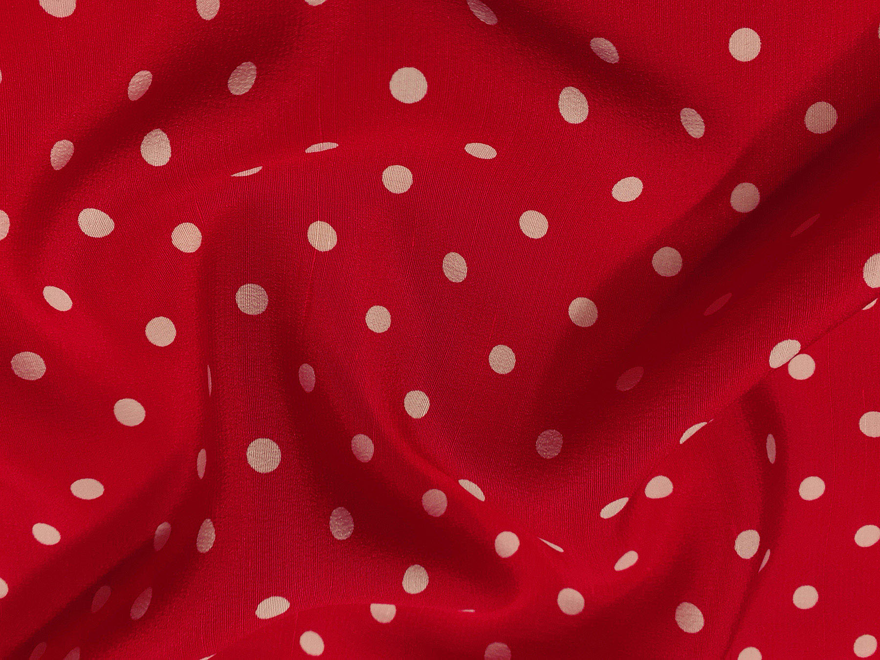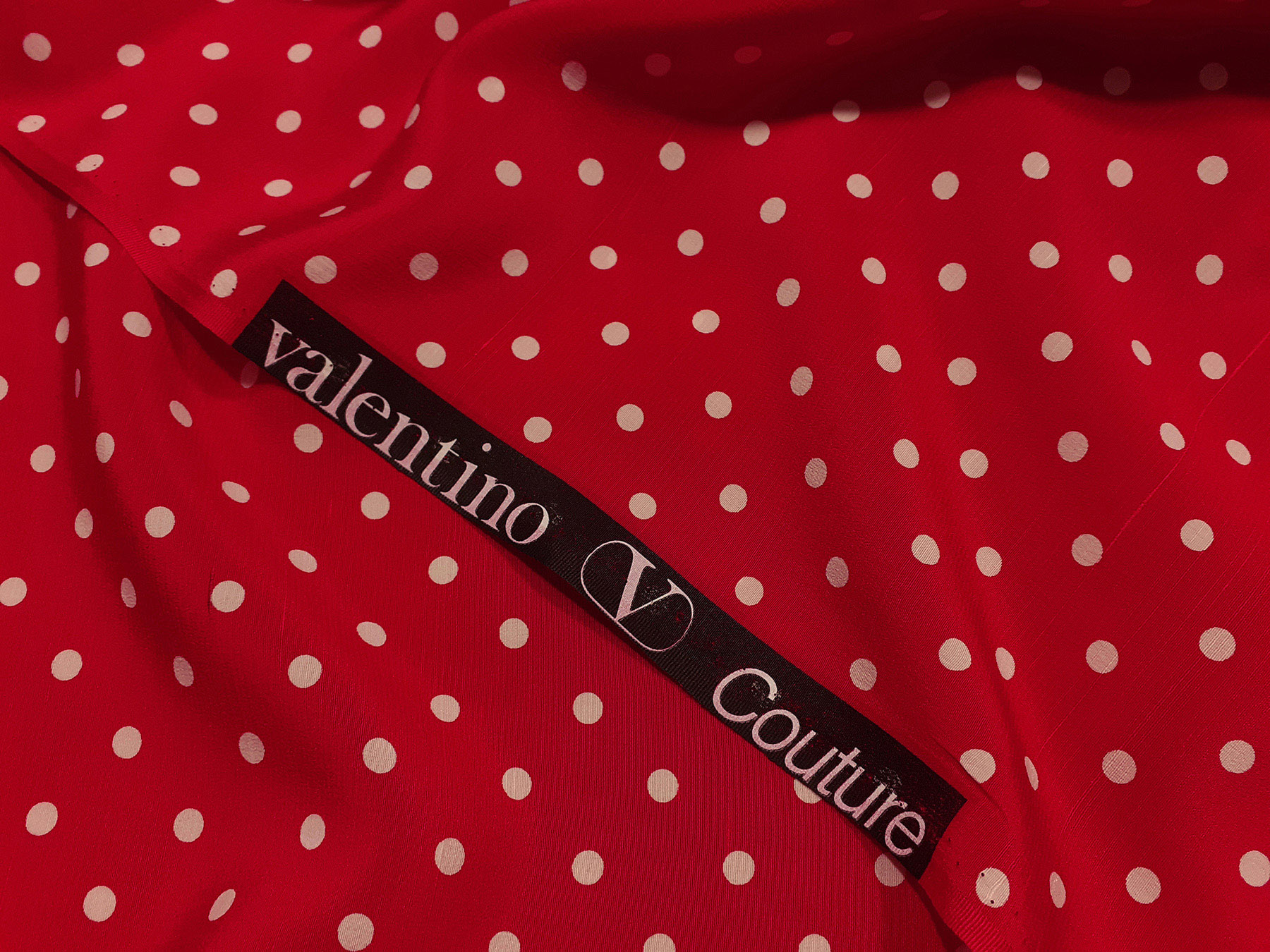 Crepe de Chine in seta fantasia pois avorio su fondo rosso.Valentino Couture