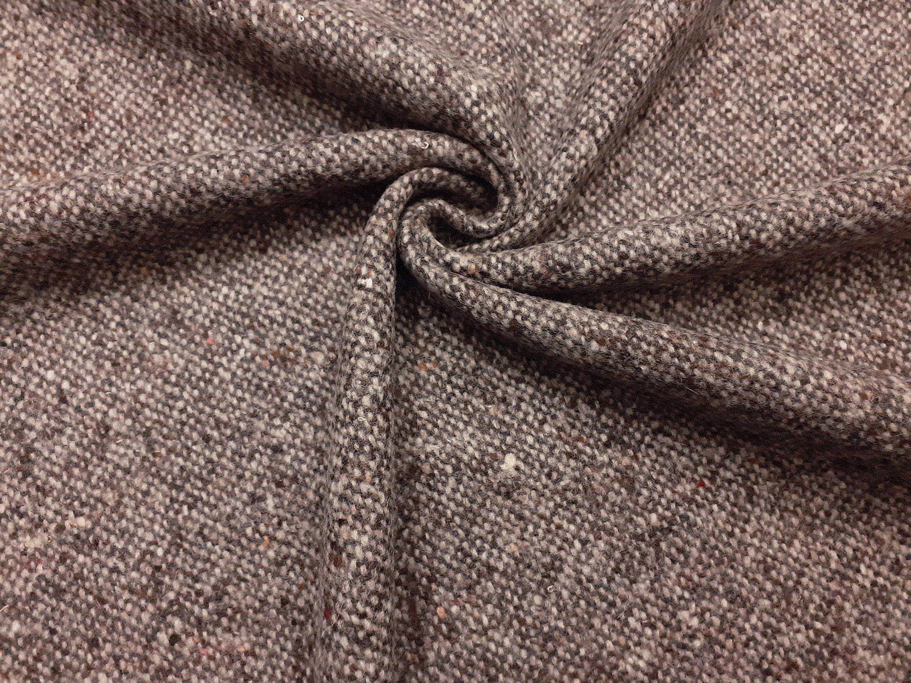 Tessuto tweed in lana morbida fondo marrone con filati multicolori.