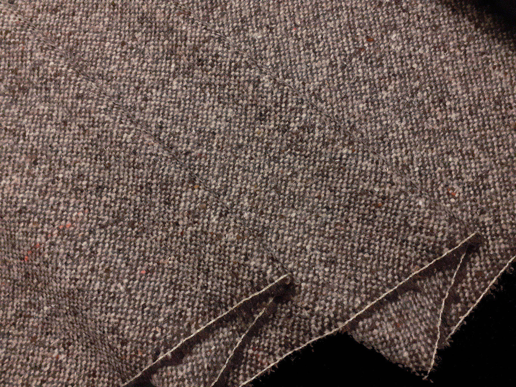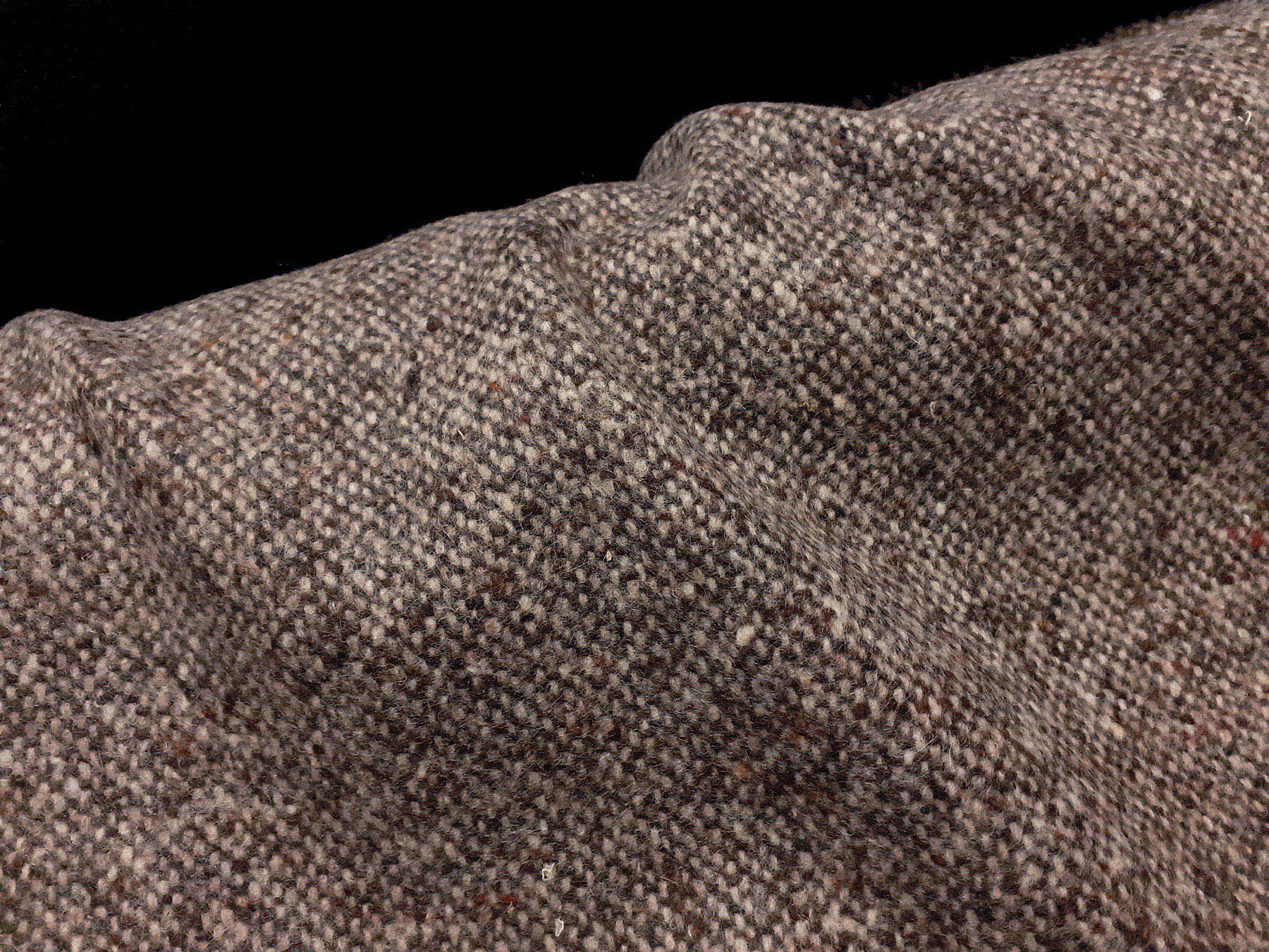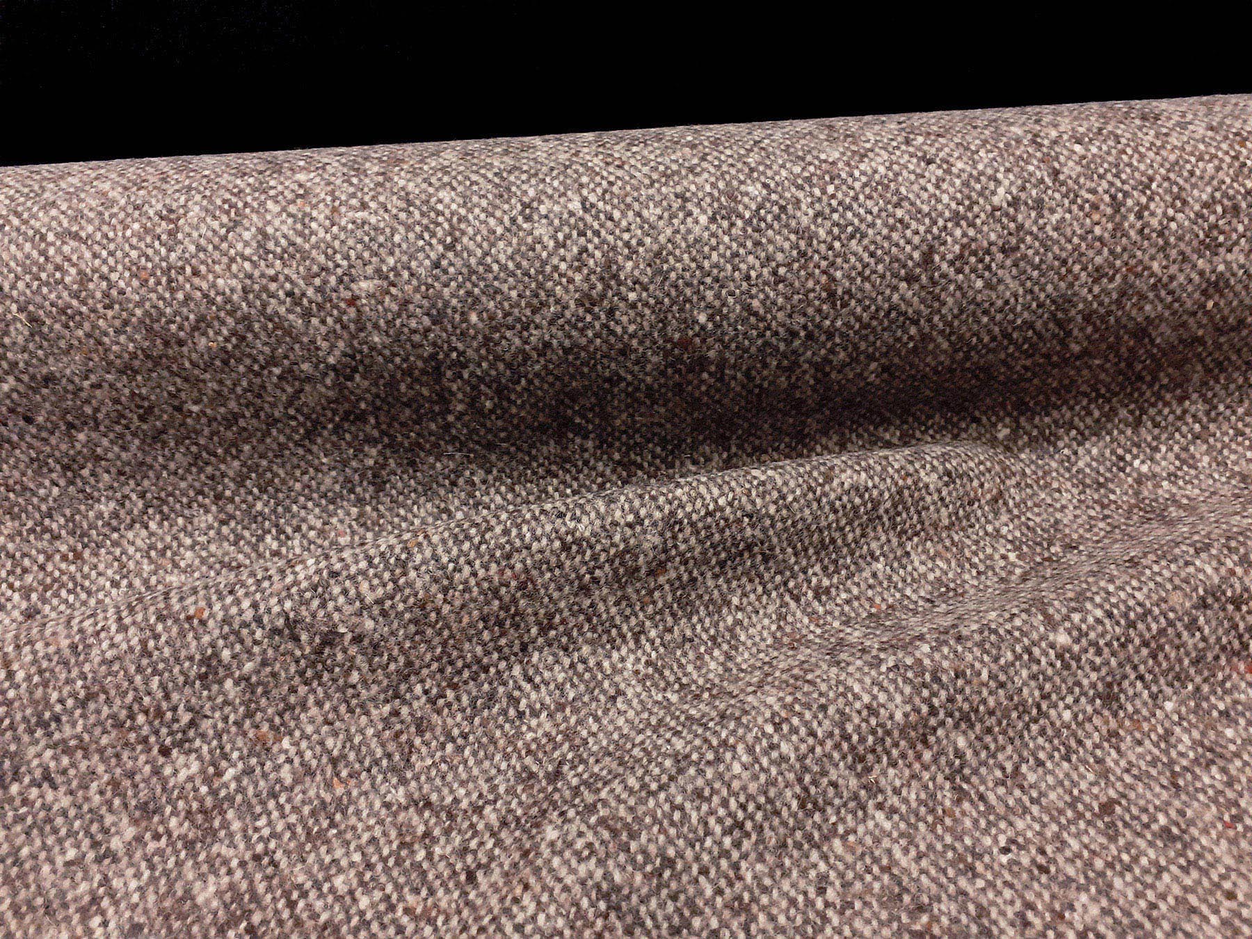 Questo tessuto, di produzione italiana, è caratterizzato da un intreccio di fili irregolari che formano il classico effetto “tweed”. Di peso elevato e mano morbida viene usato come tessuto invernale per capi spalla e gonne.