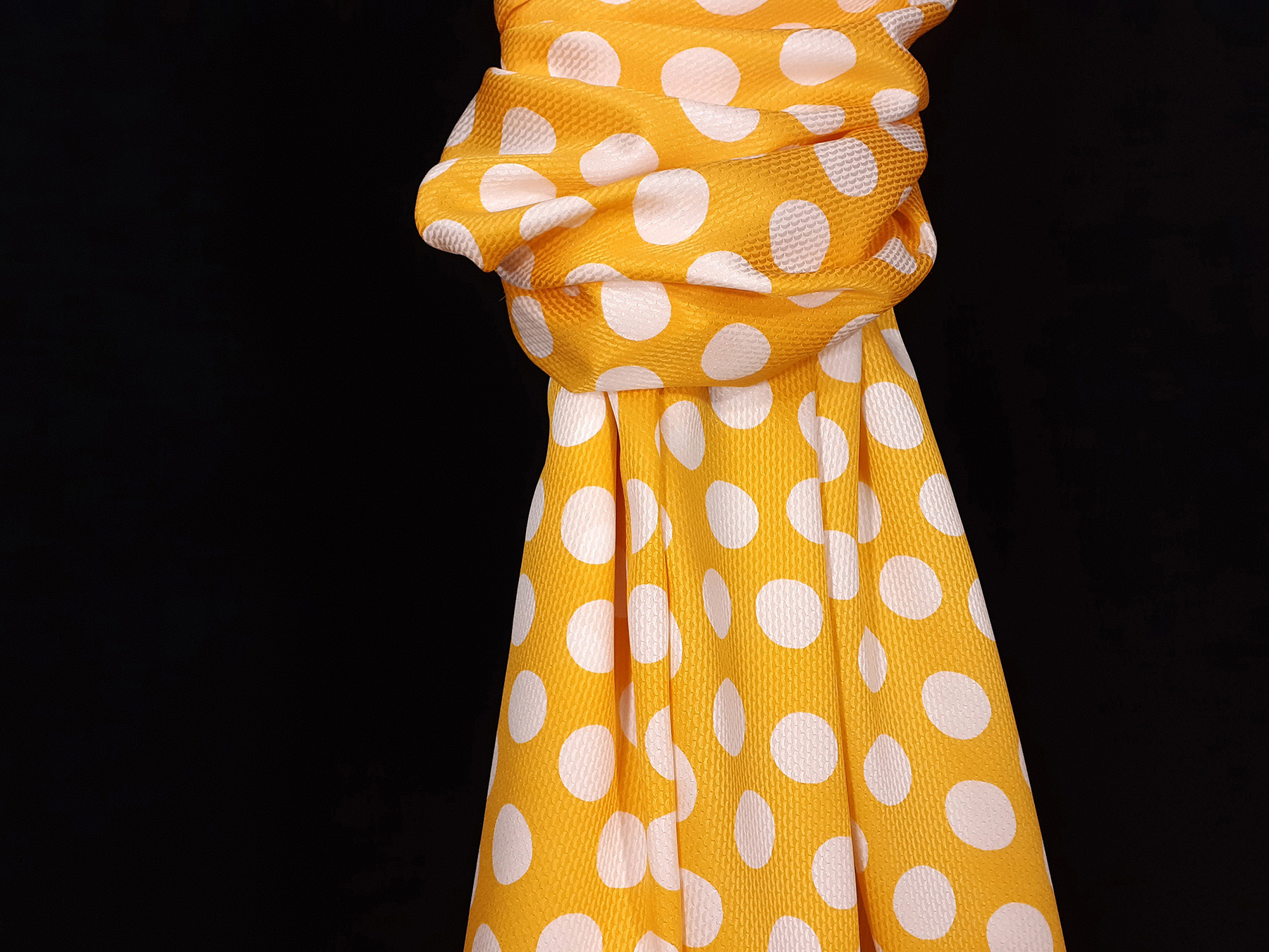 In questo tessuto di seta pura, prodotto a Como, la lavorazione jacquard con il contrasto fra lucido e opaco, crea un piacevole effetto di tridimensionalità. Perfetto per la realizzazione di abiti ampi e sinuosi, grazie alla sua morbidezza e caduta, può essere utilizzato anche per capi più lineari che mettono in evidenza la ricchezza e la particolarità di questo tipo di tessuto.