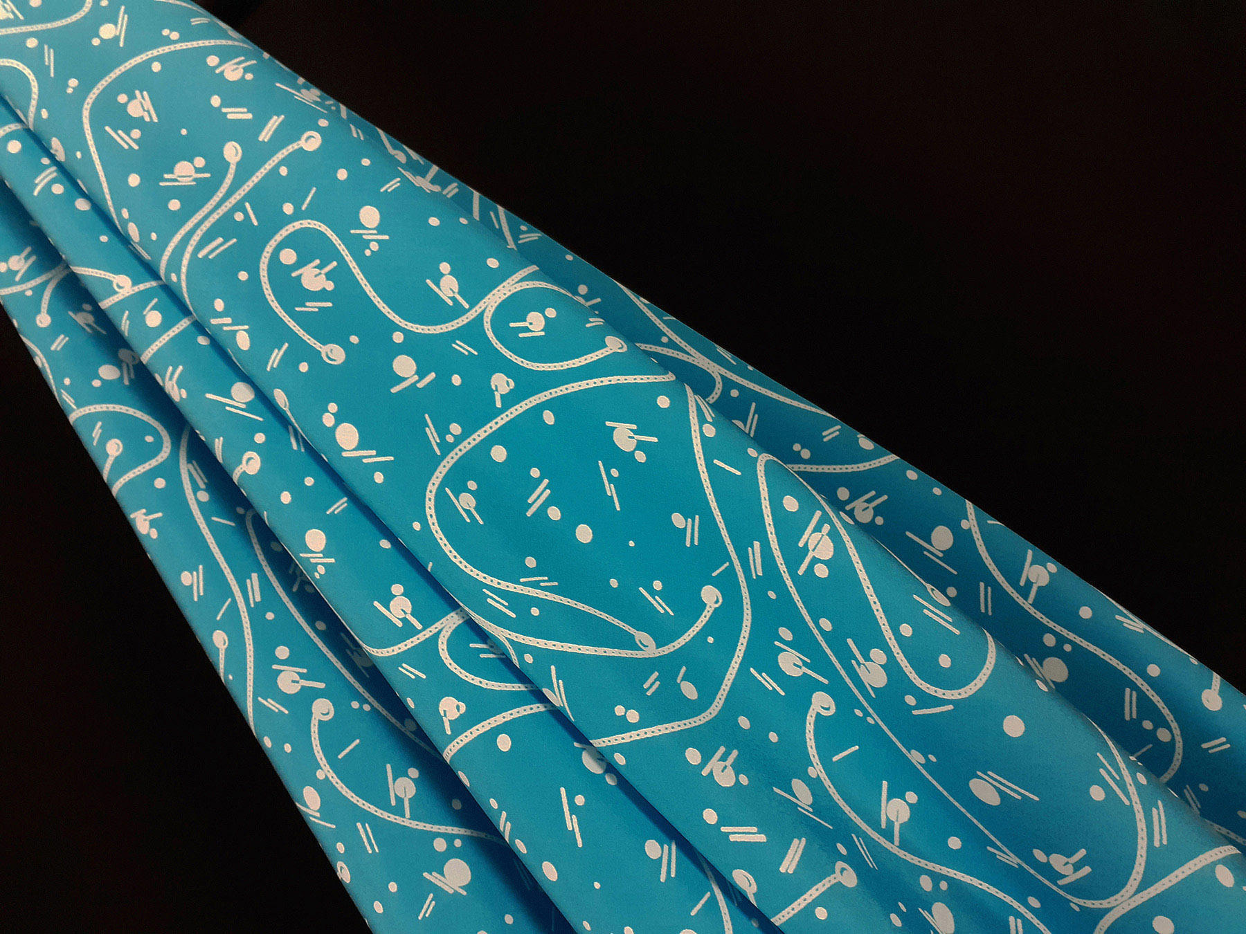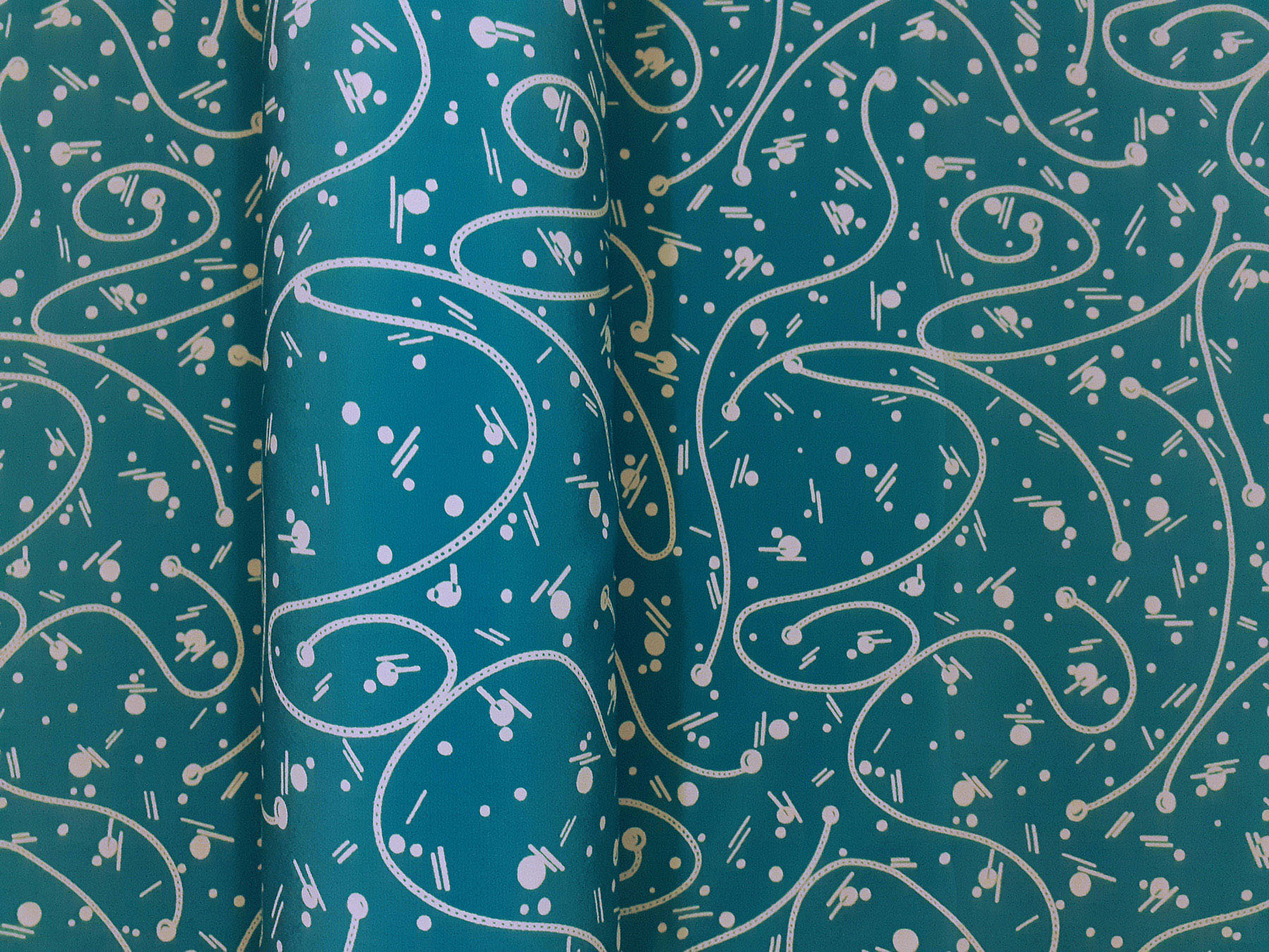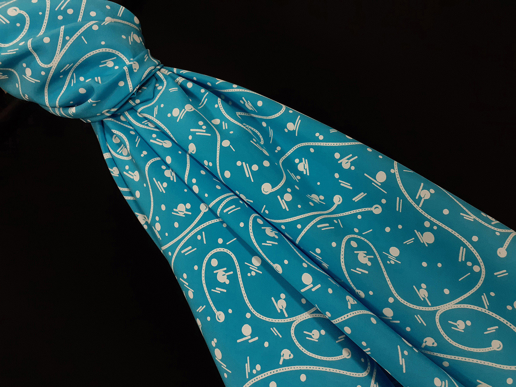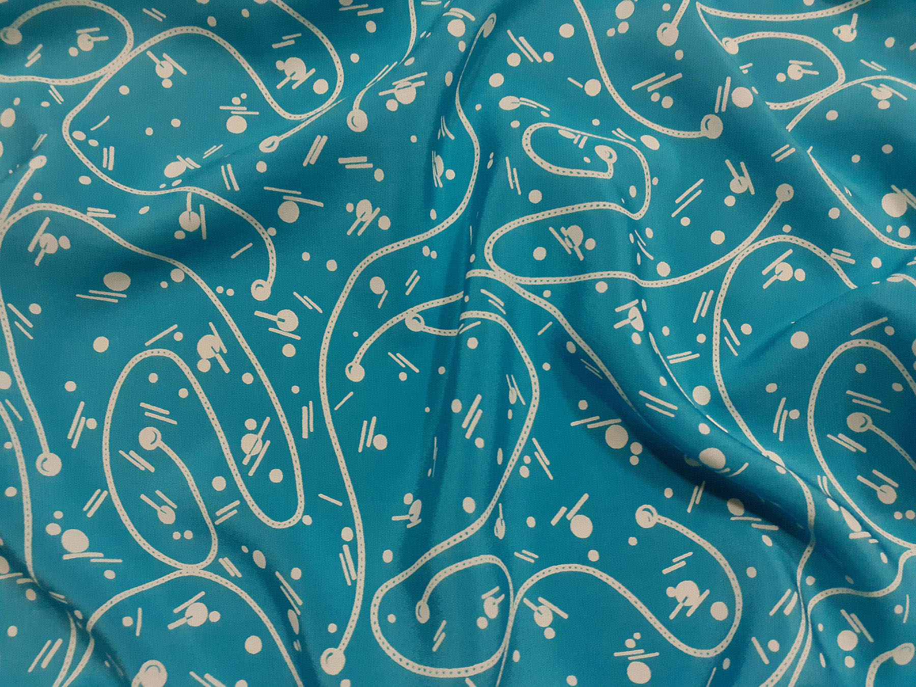 Crepe de Chine in seta fantasia avorio e su fondo azzurro