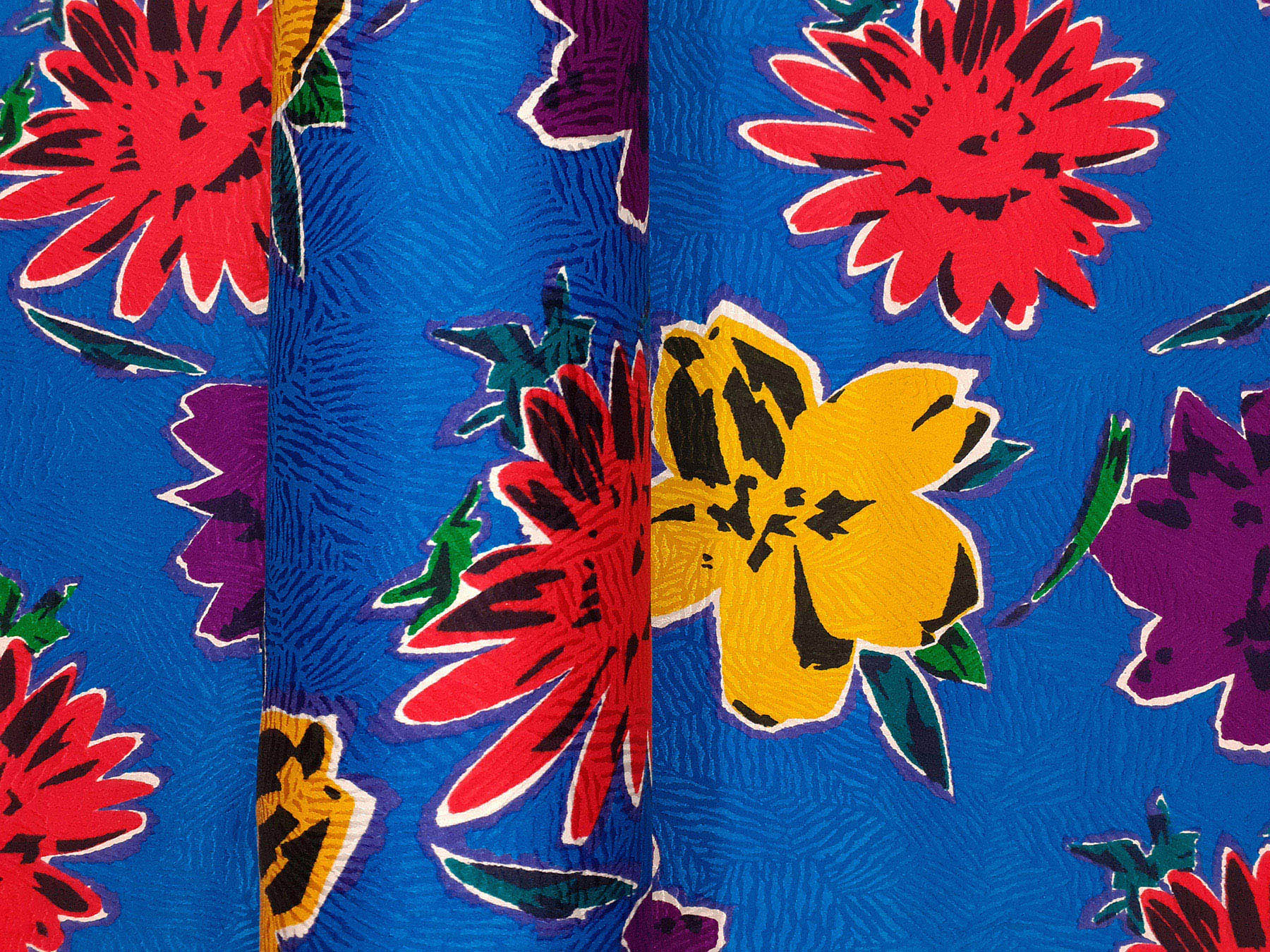 In questo tessuto di seta pura, prodotto a Como, la lavorazione jacquard con il contrasto fra lucido e opaco, crea un piacevole effetto di tridimensionalità. Perfetto per la realizzazione di abiti ampi e sinuosi, grazie alla sua morbidezza e caduta, può essere utilizzato anche per capi più lineari che mettono in evidenza la ricchezza e la particolarità di questo tipo di tessuto.