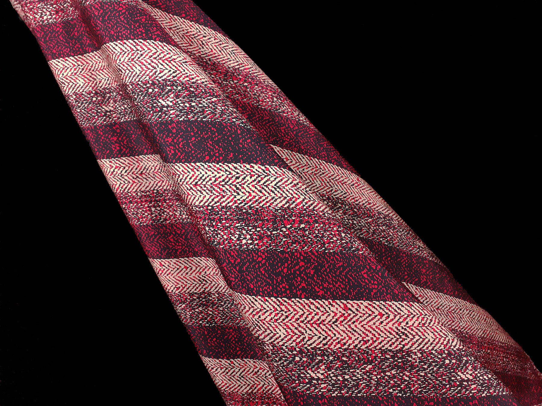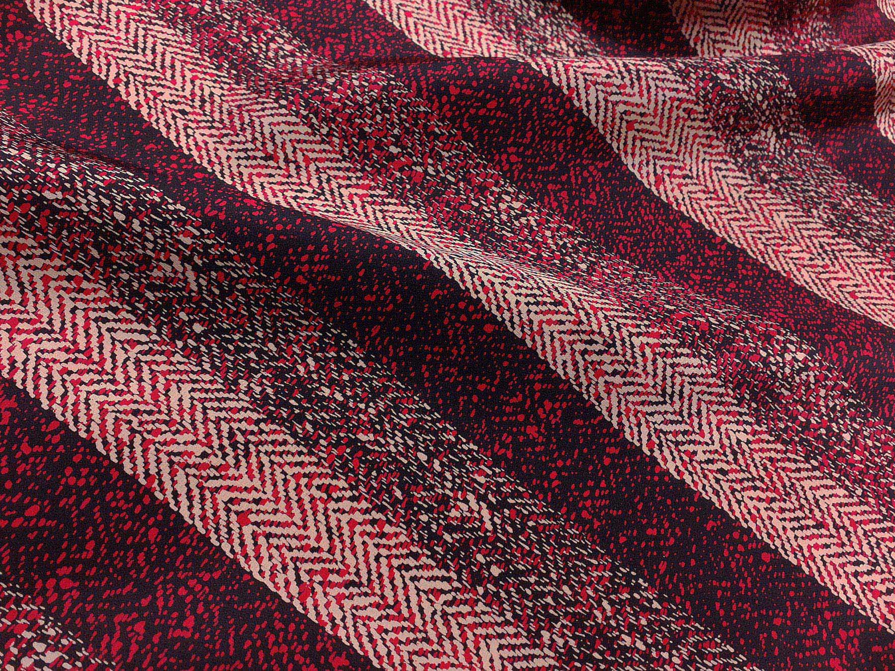 Crepe de Chine in seta fantasia a righe e spigato su fondo blu
