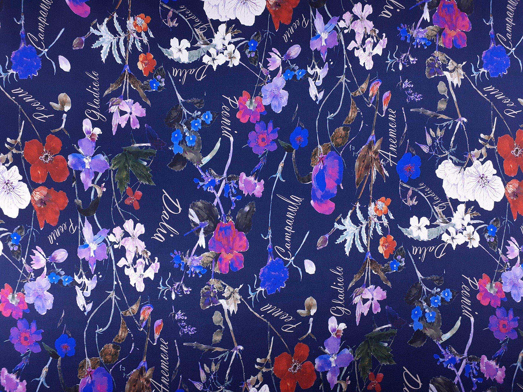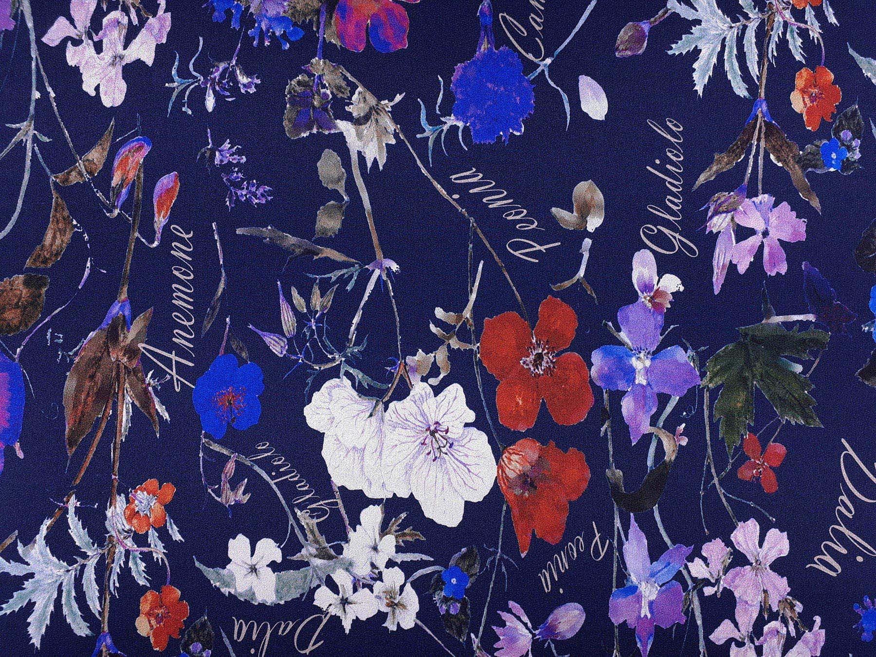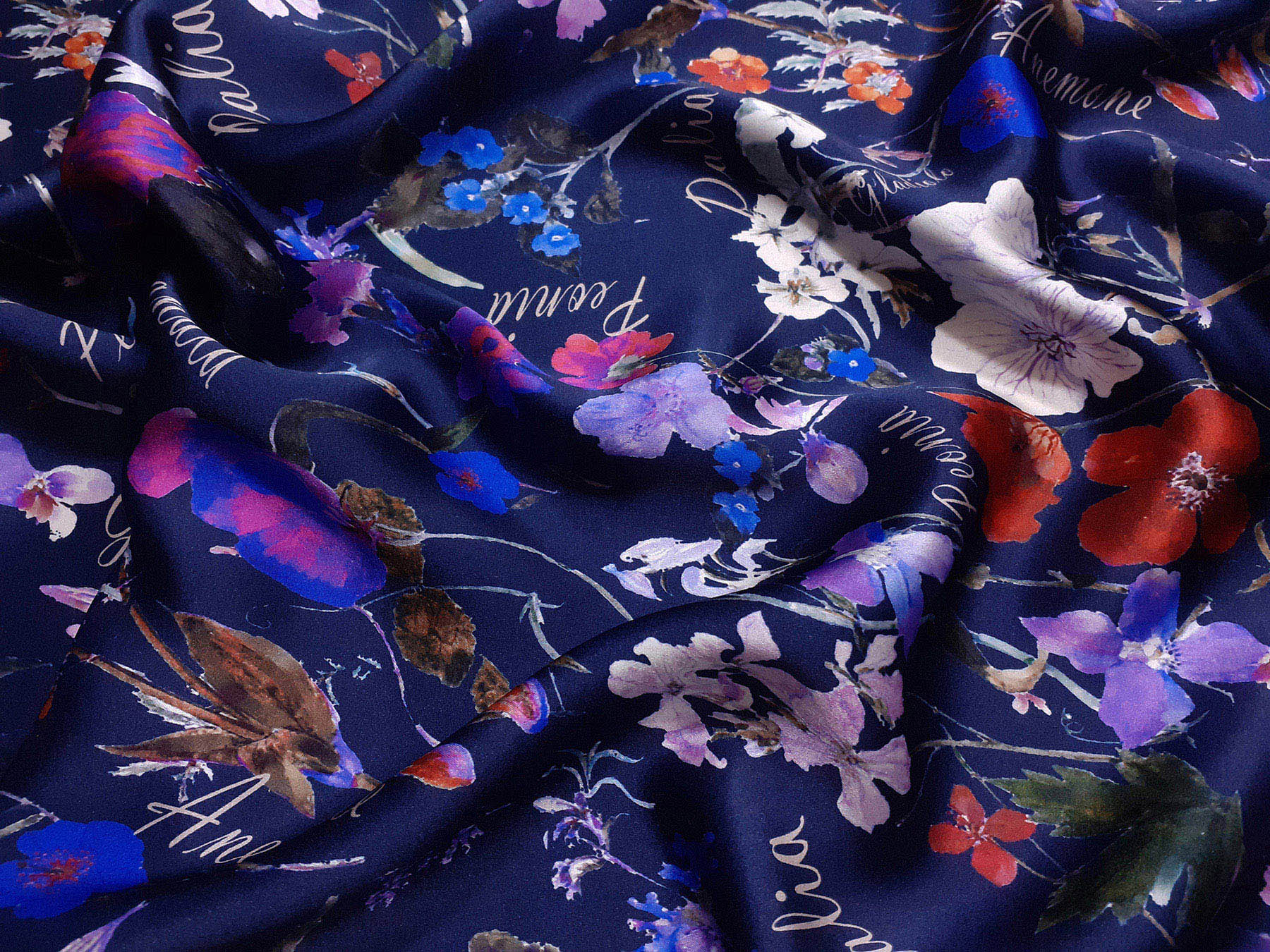 raso di seta fantasia floreale fondo blu scuro