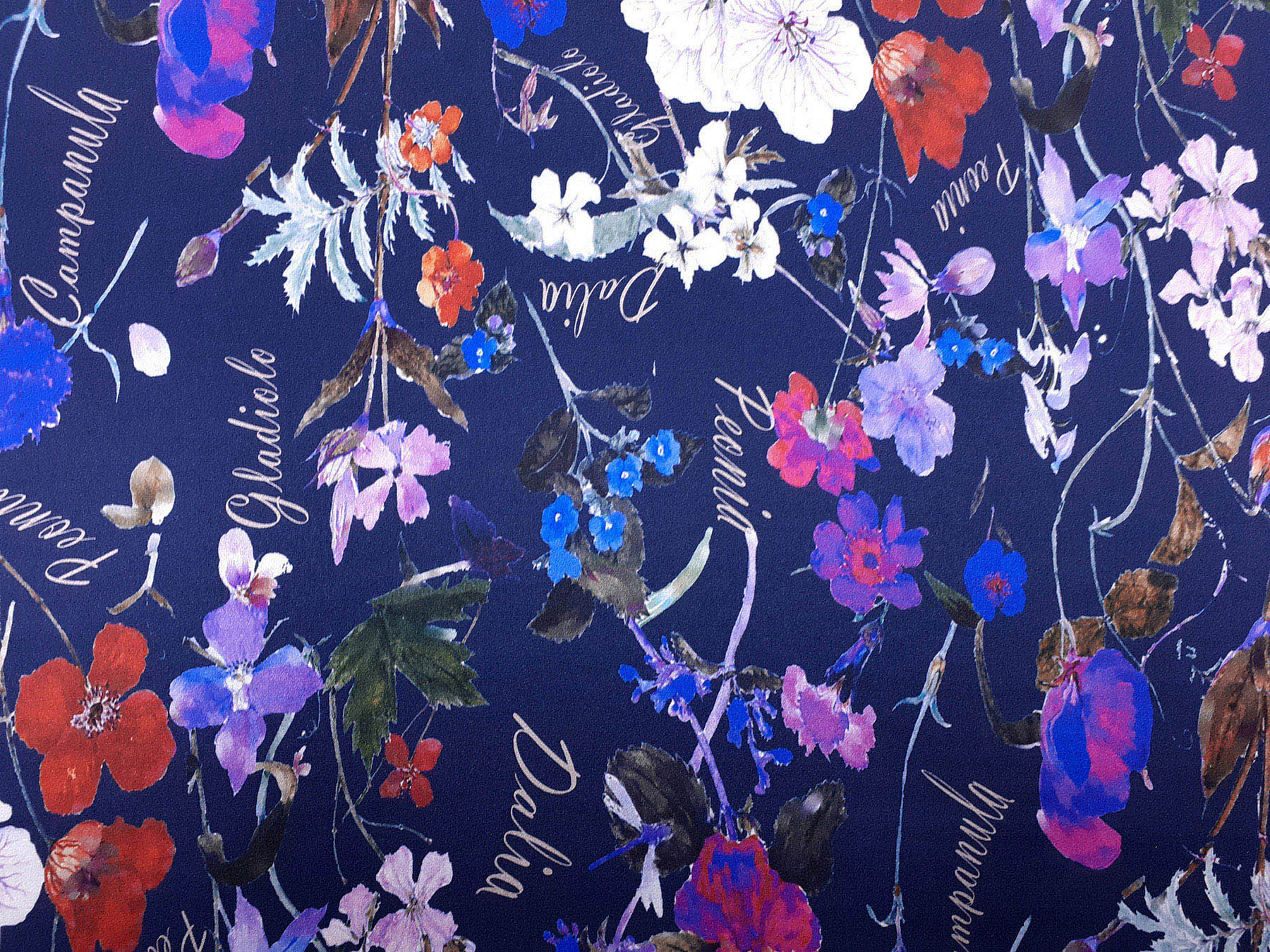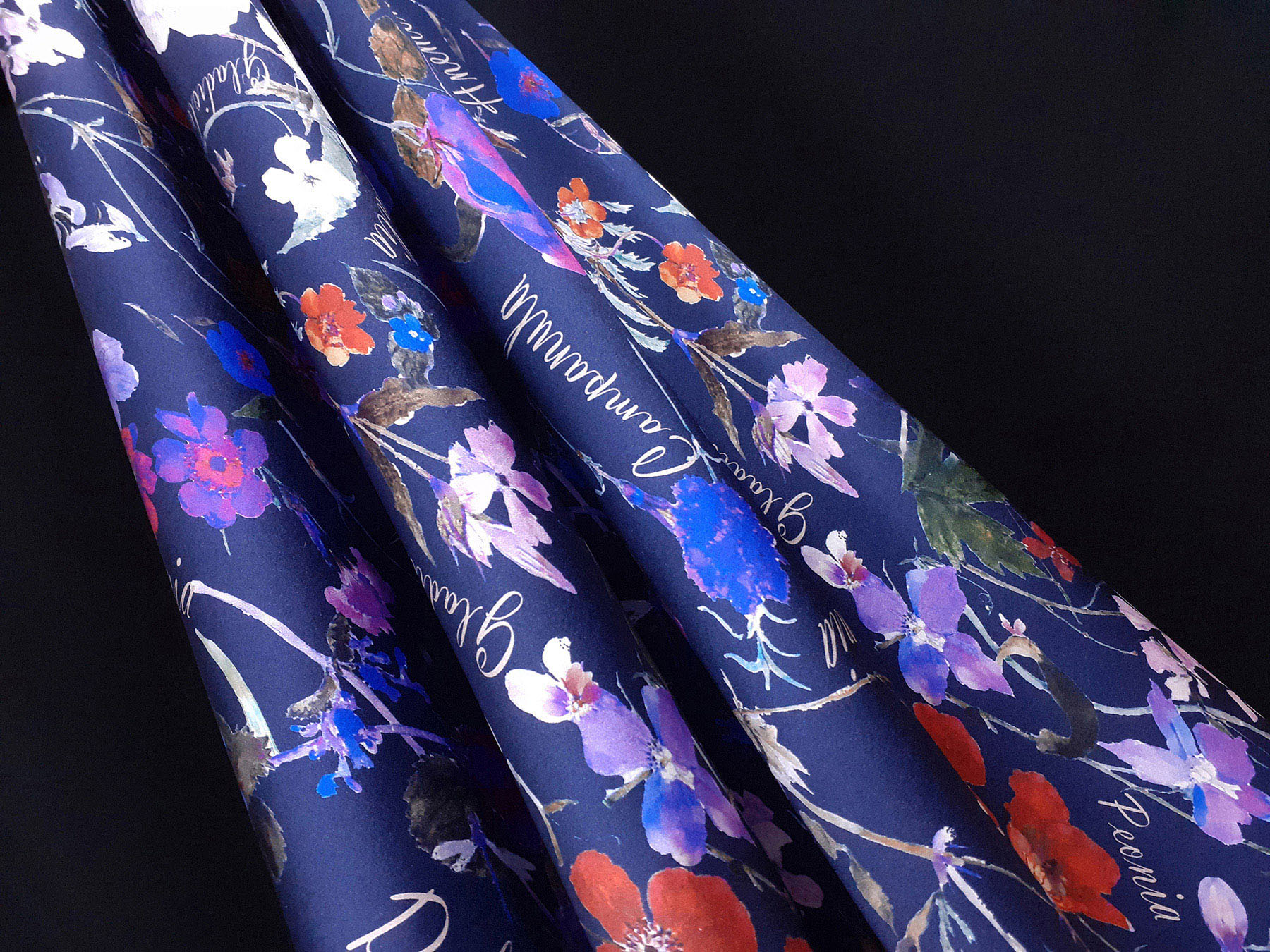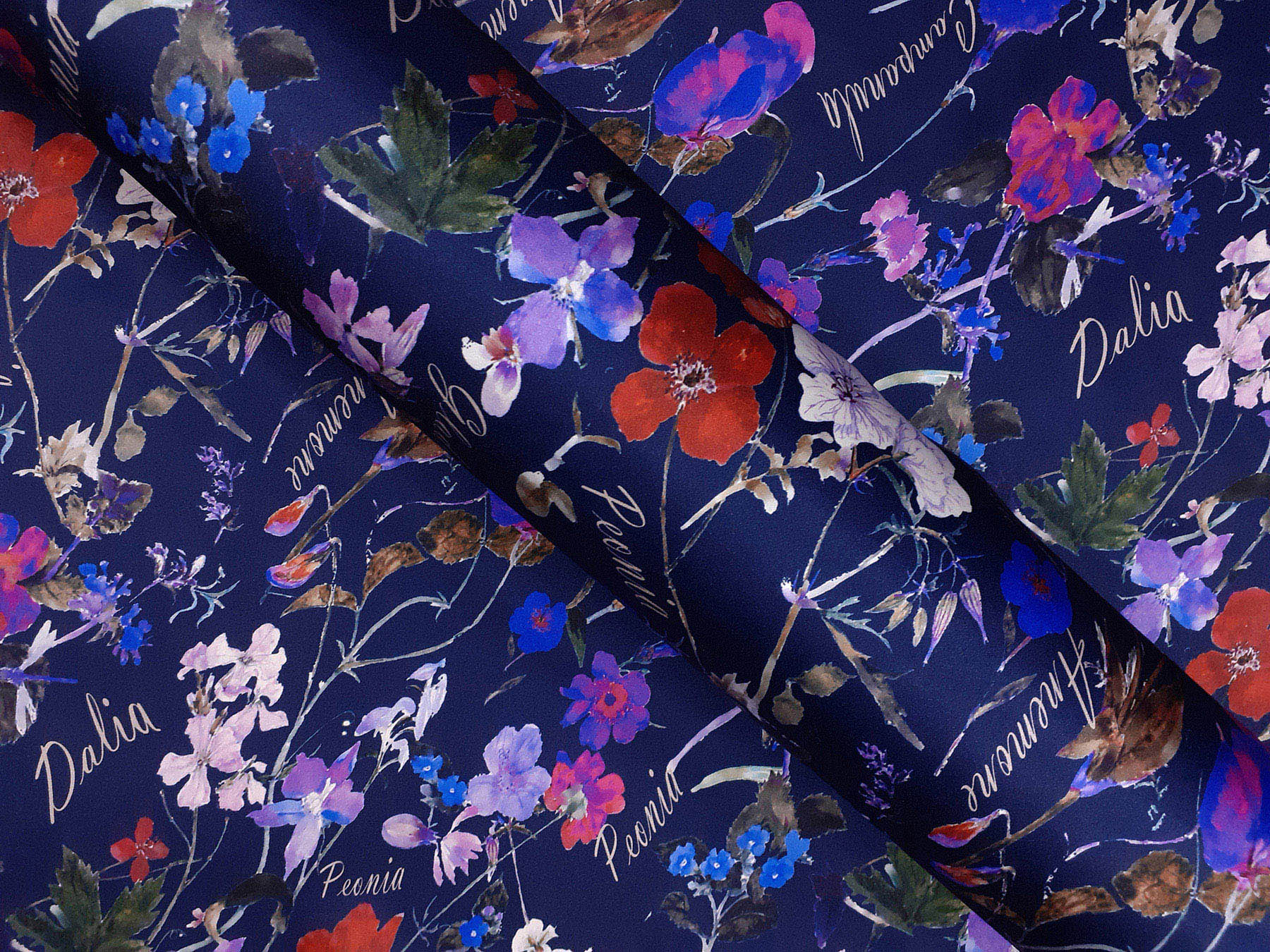 raso di seta fantasia floreale fondo blu scuro