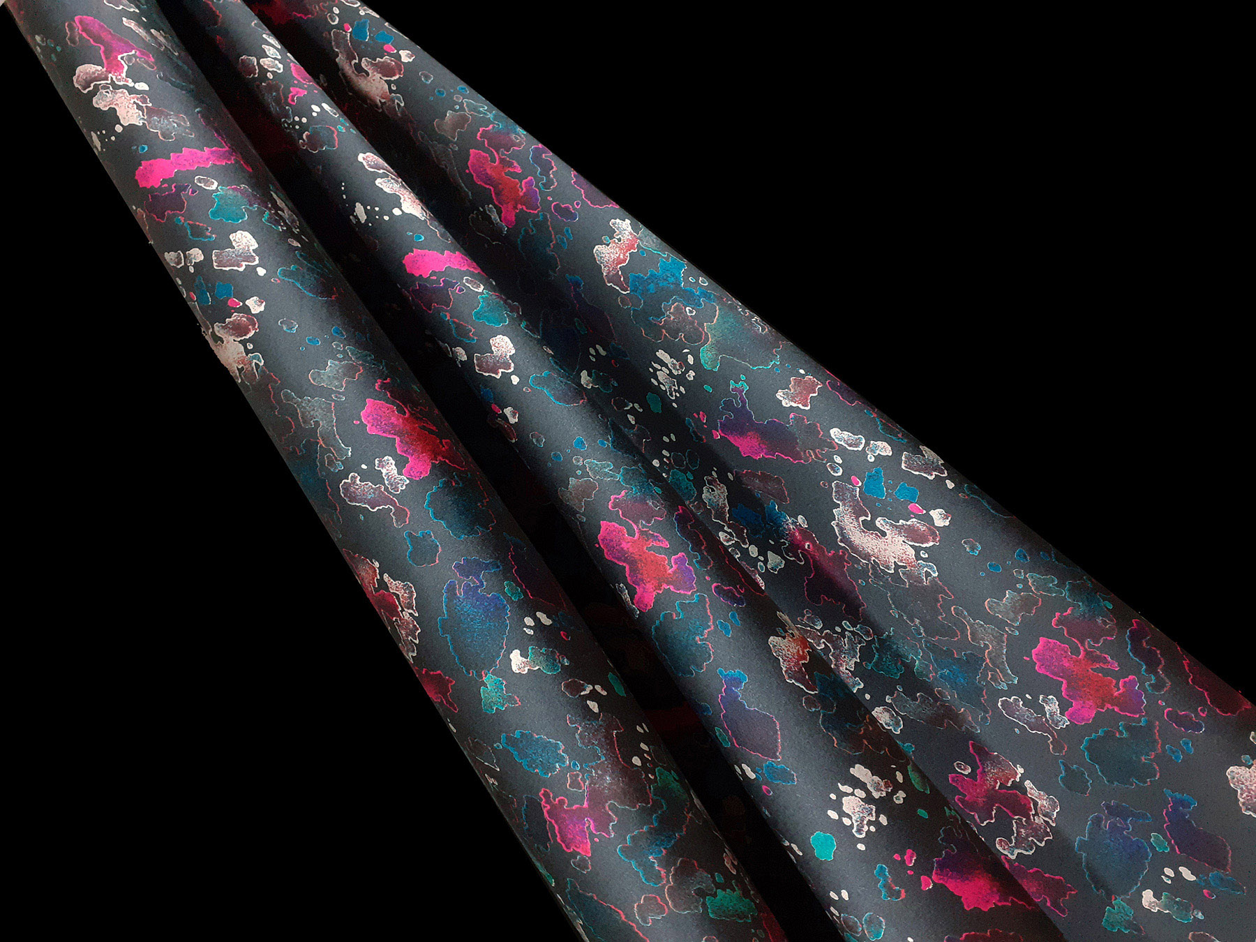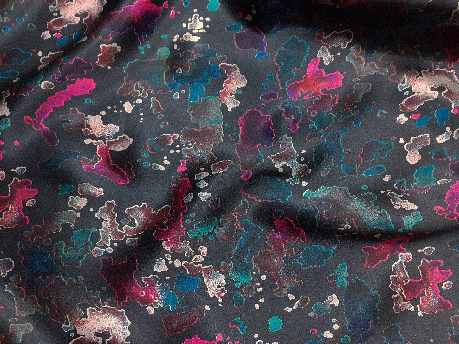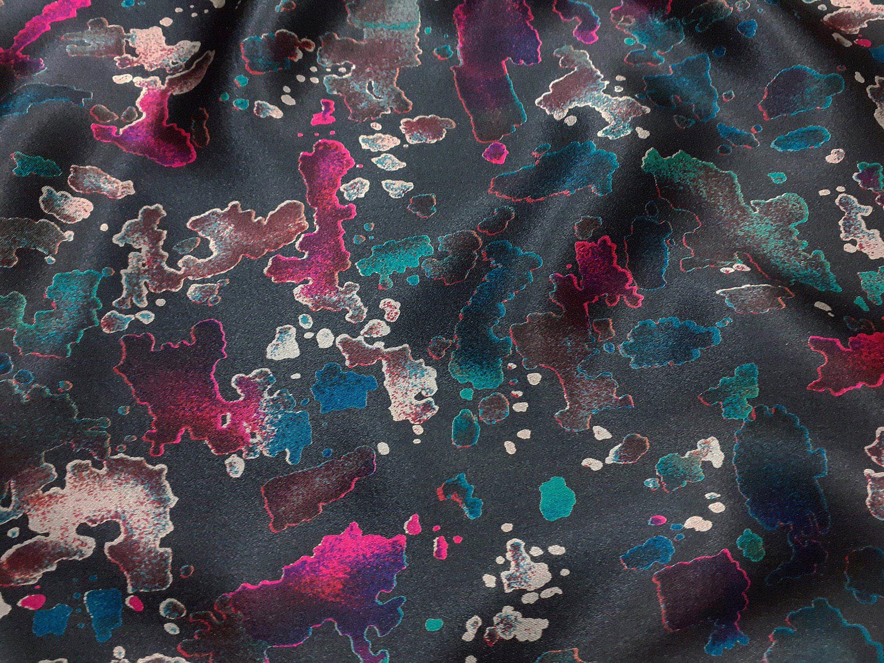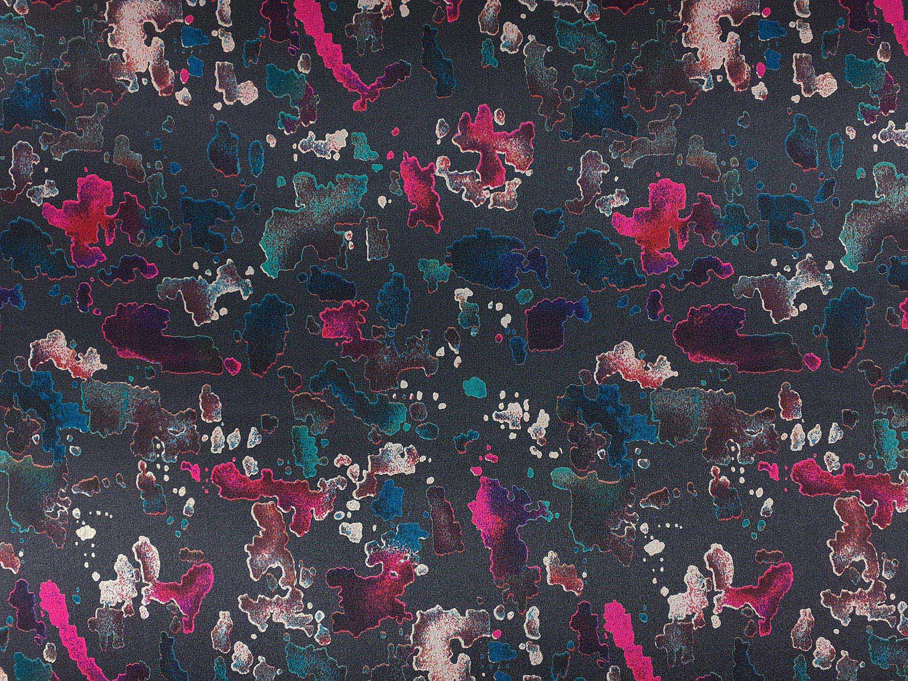 Raso di seta fantasia astratta multicolore su fondo grigio scuro