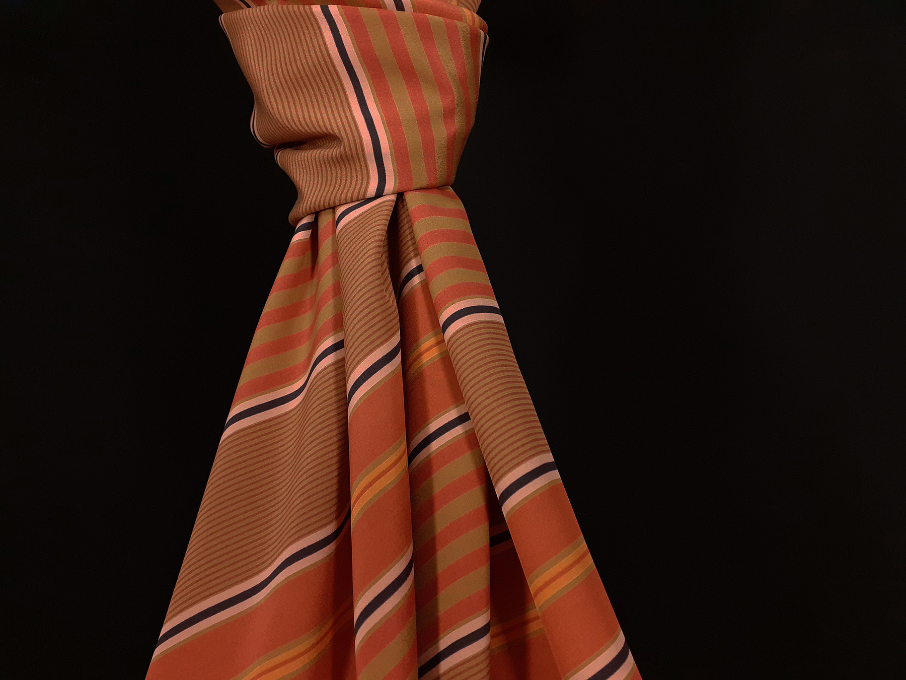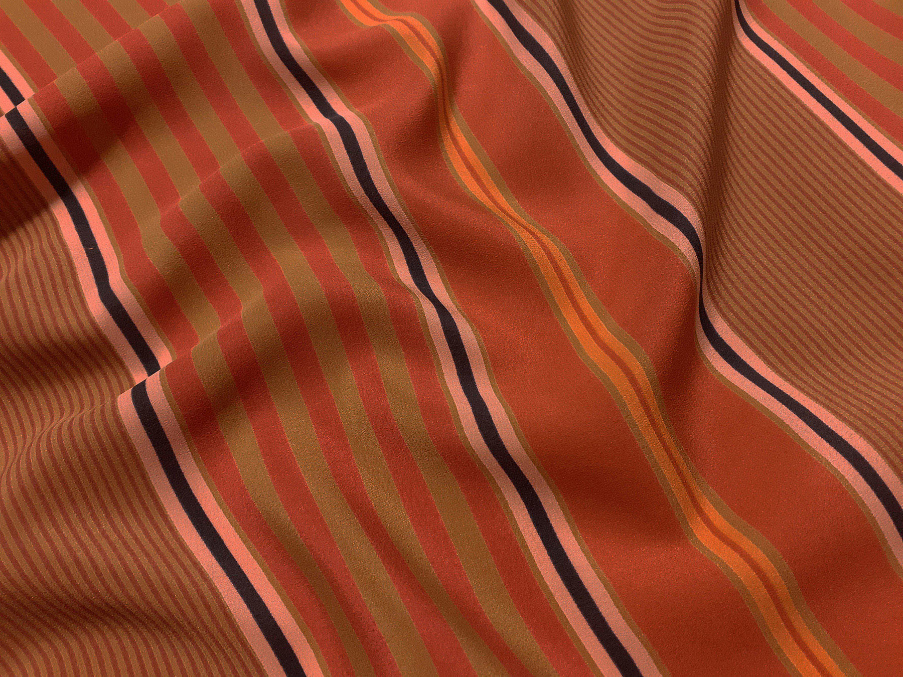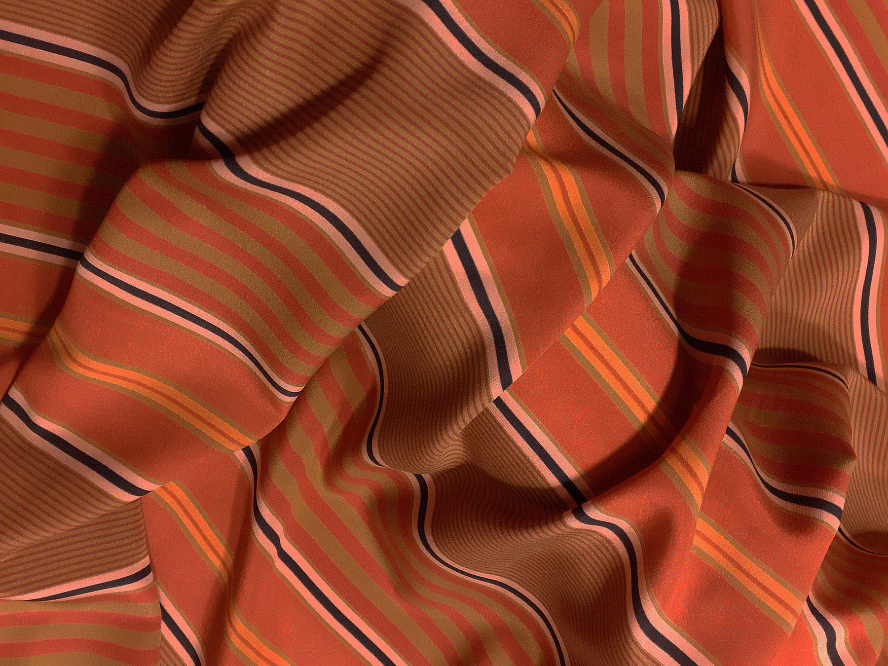 Crepe de Chine in seta a righe su fondo ocra