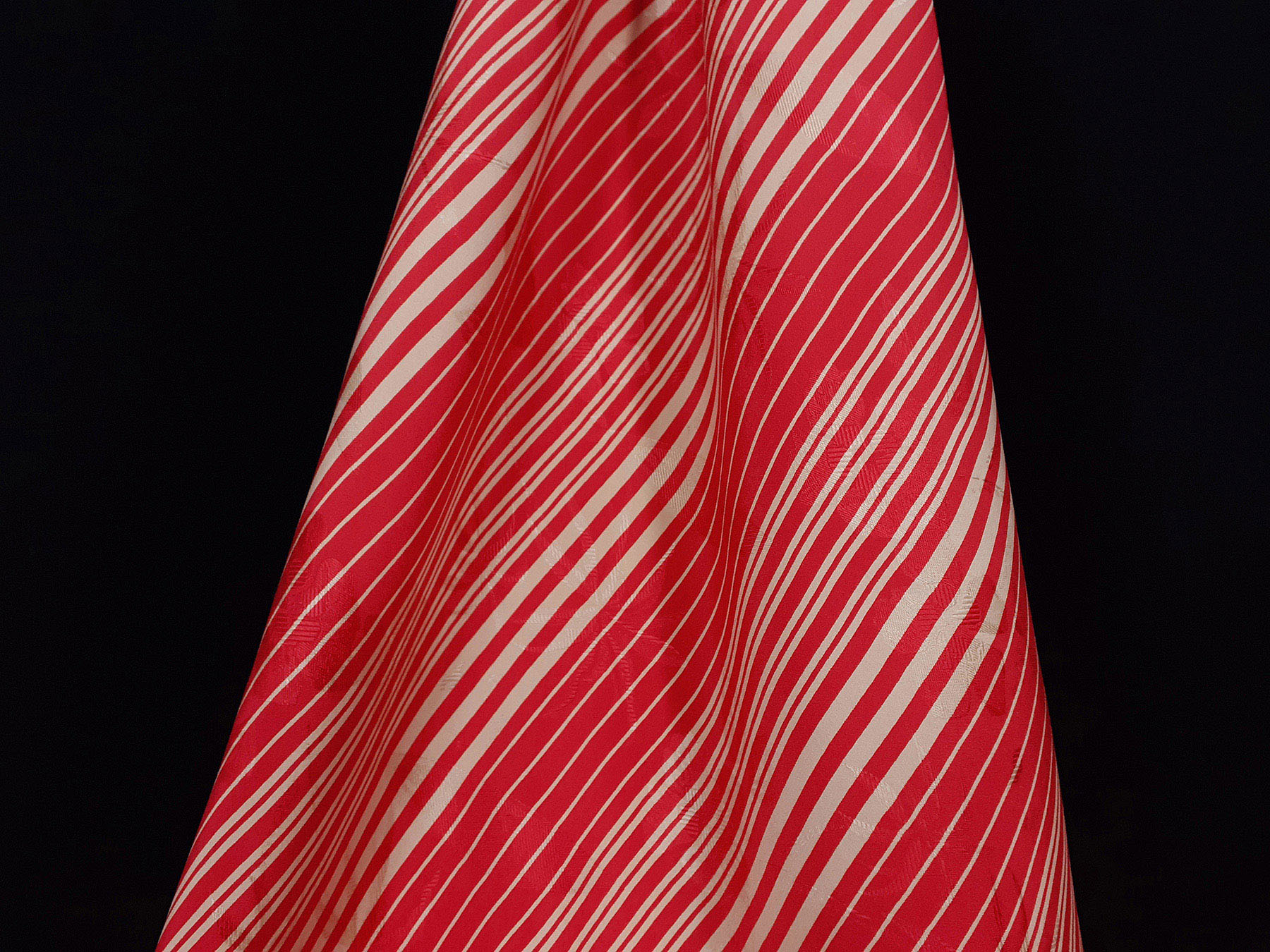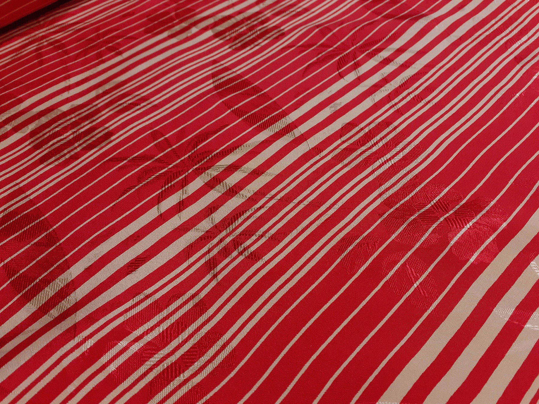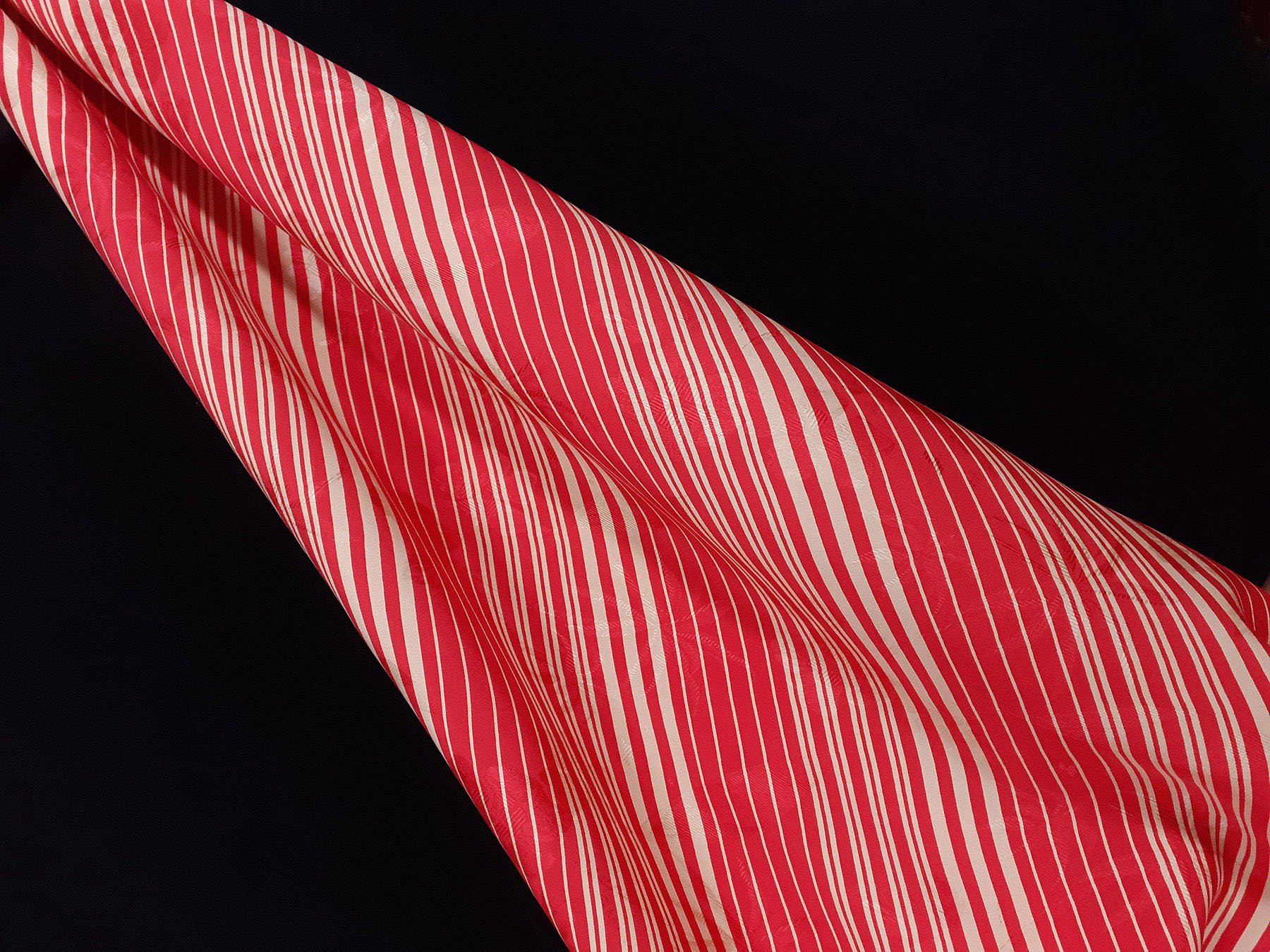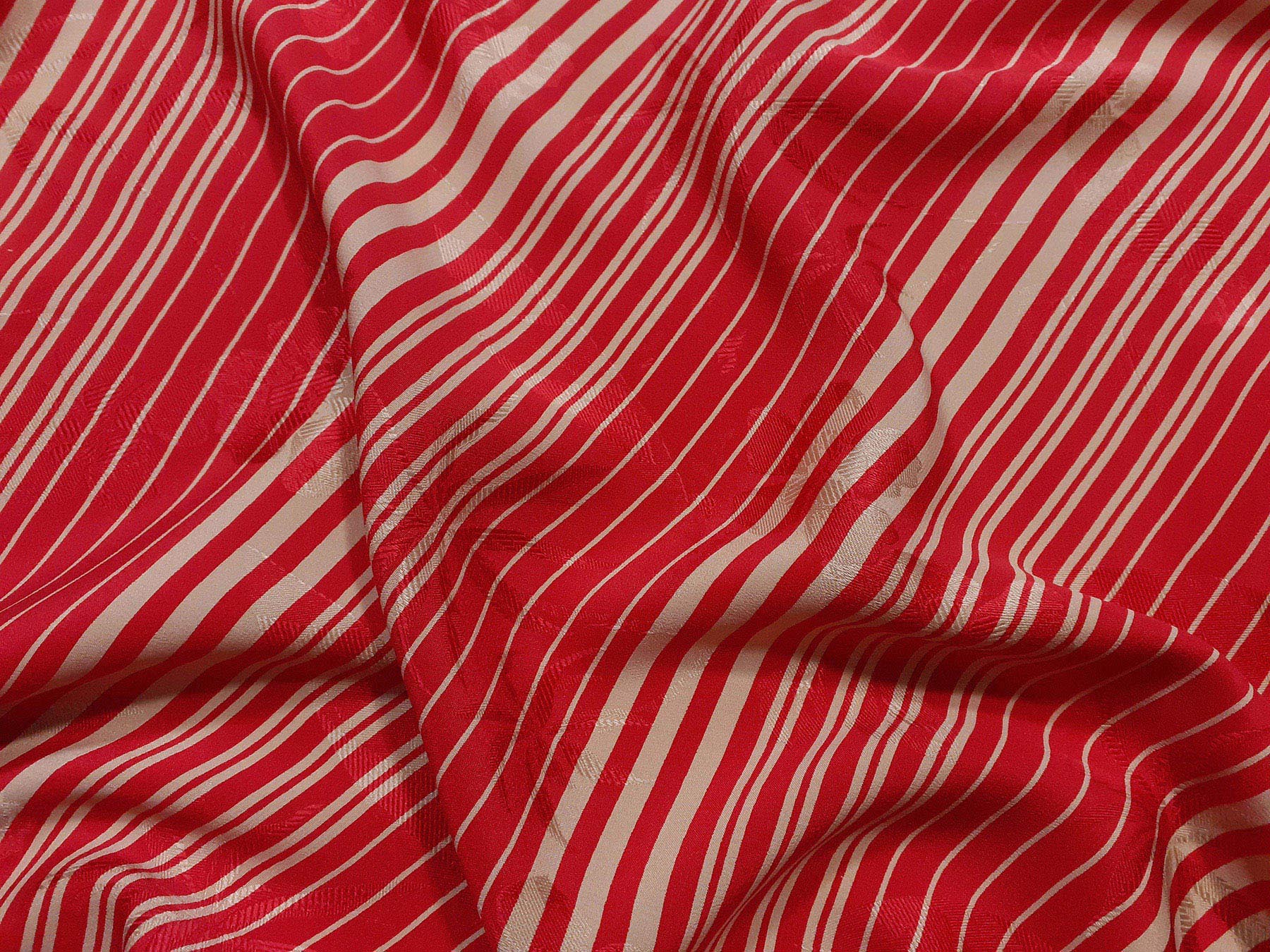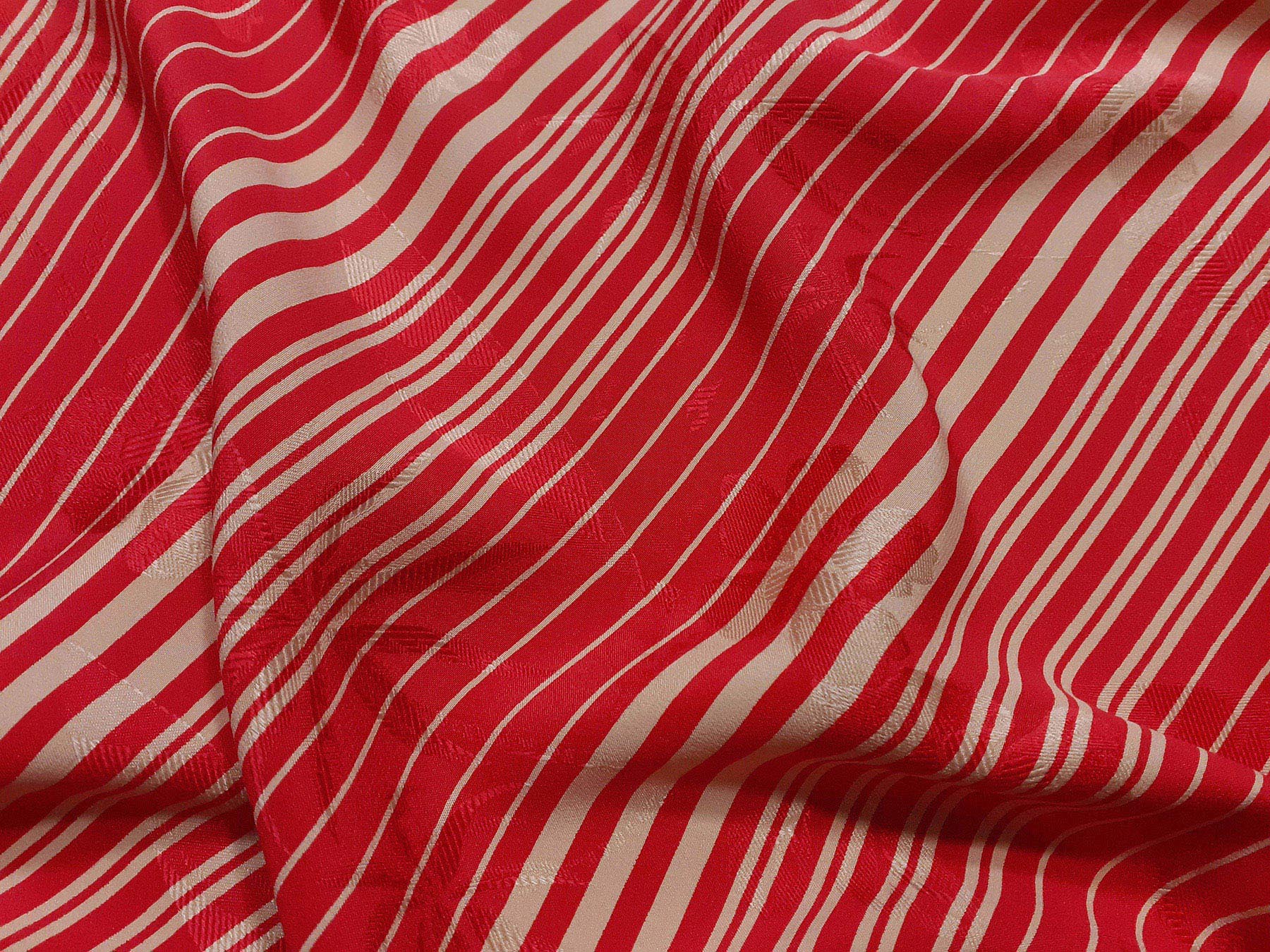 Seta jacquard a righe irregolari avorio su fondo rosso