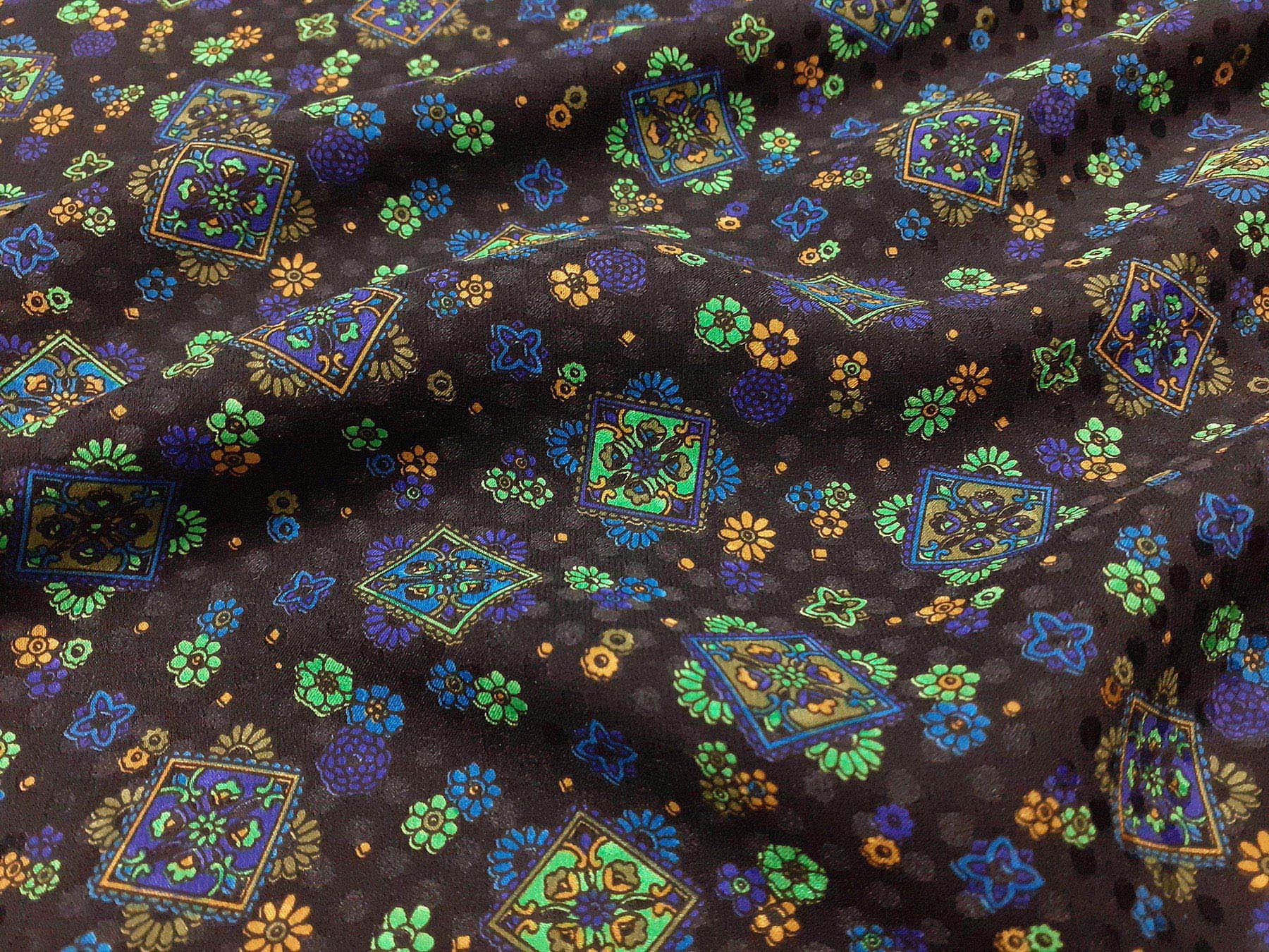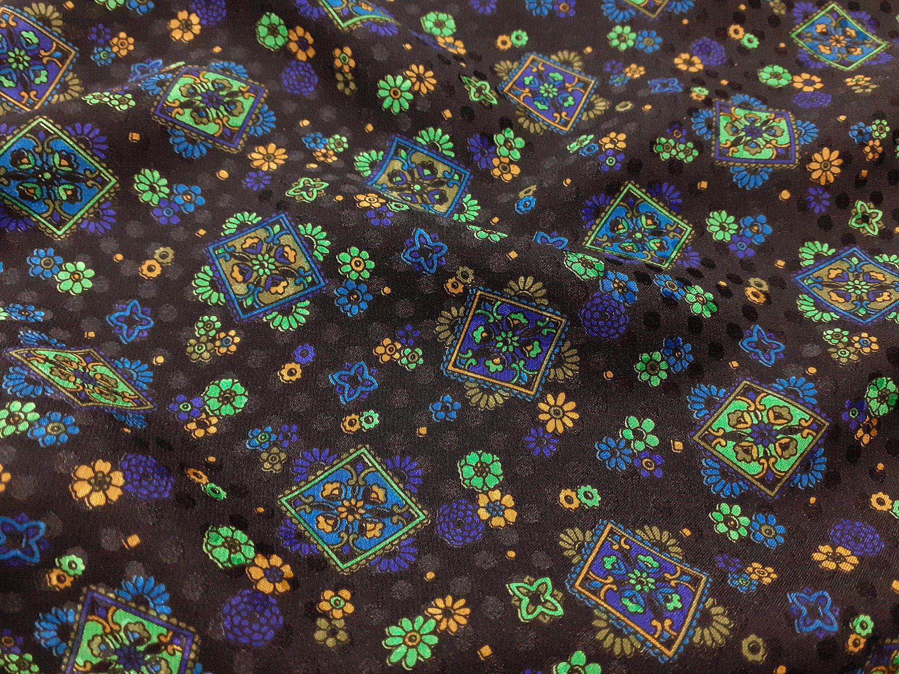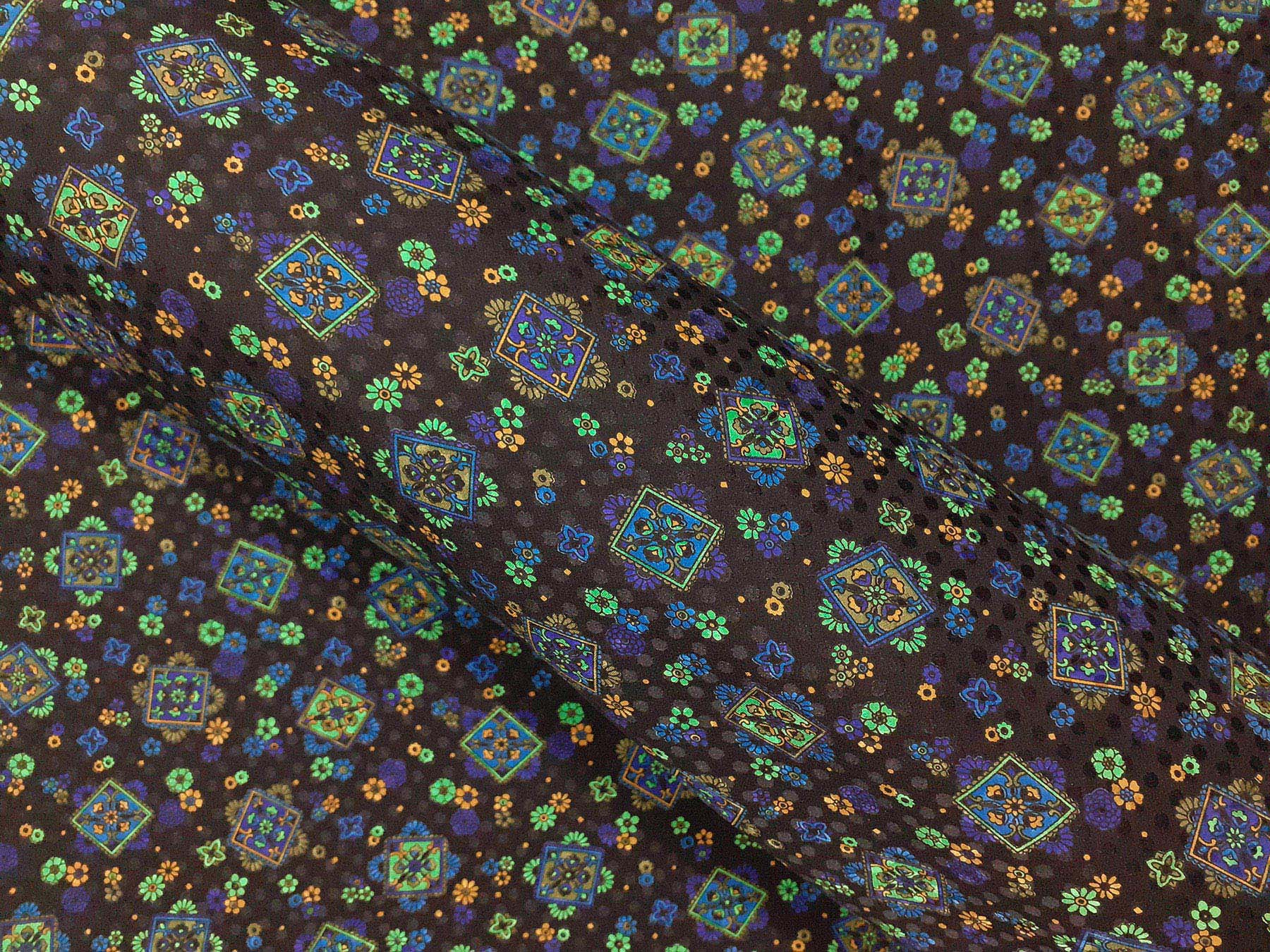 Seta jacquard fantasia floreale su fondo nero