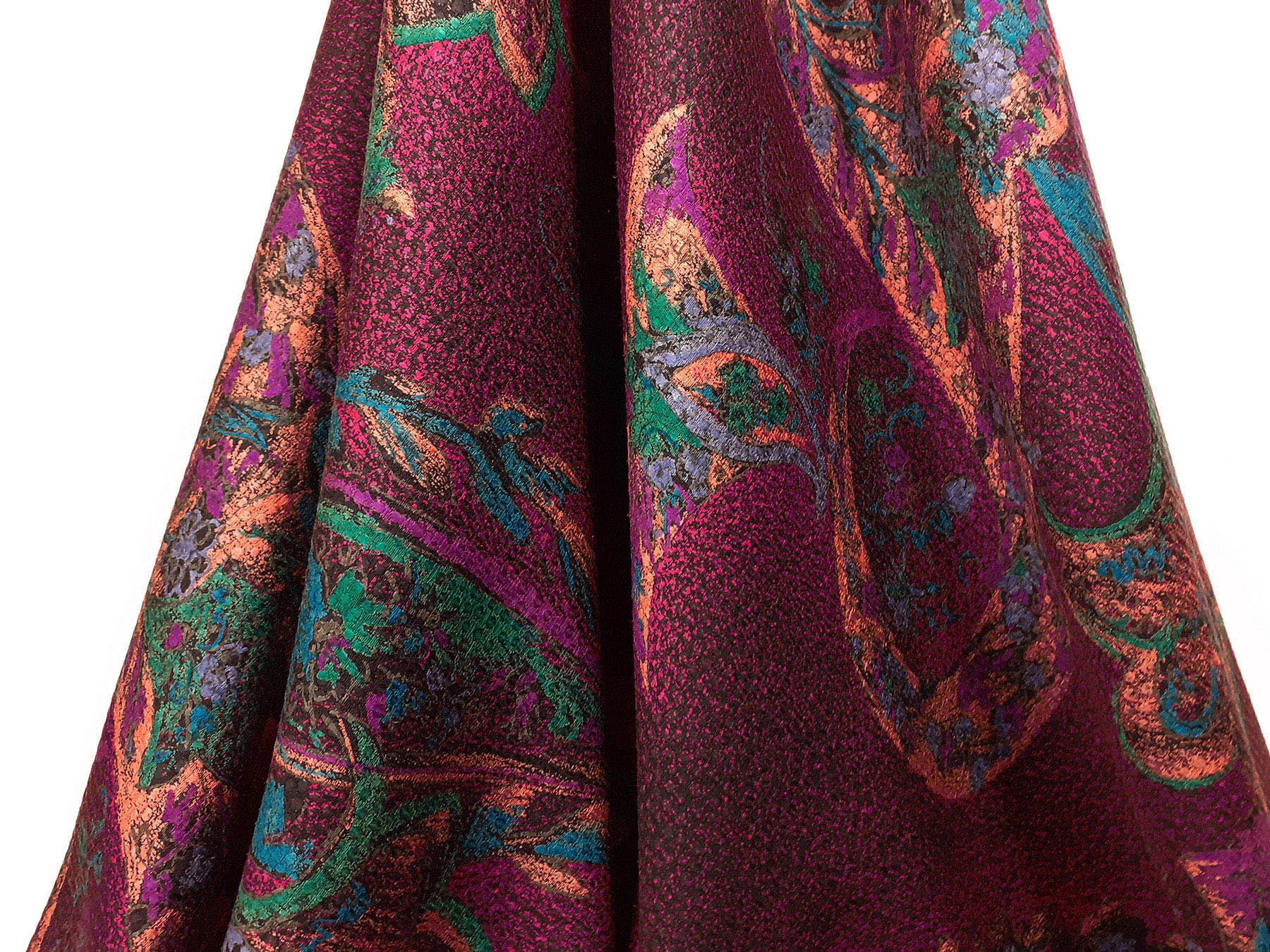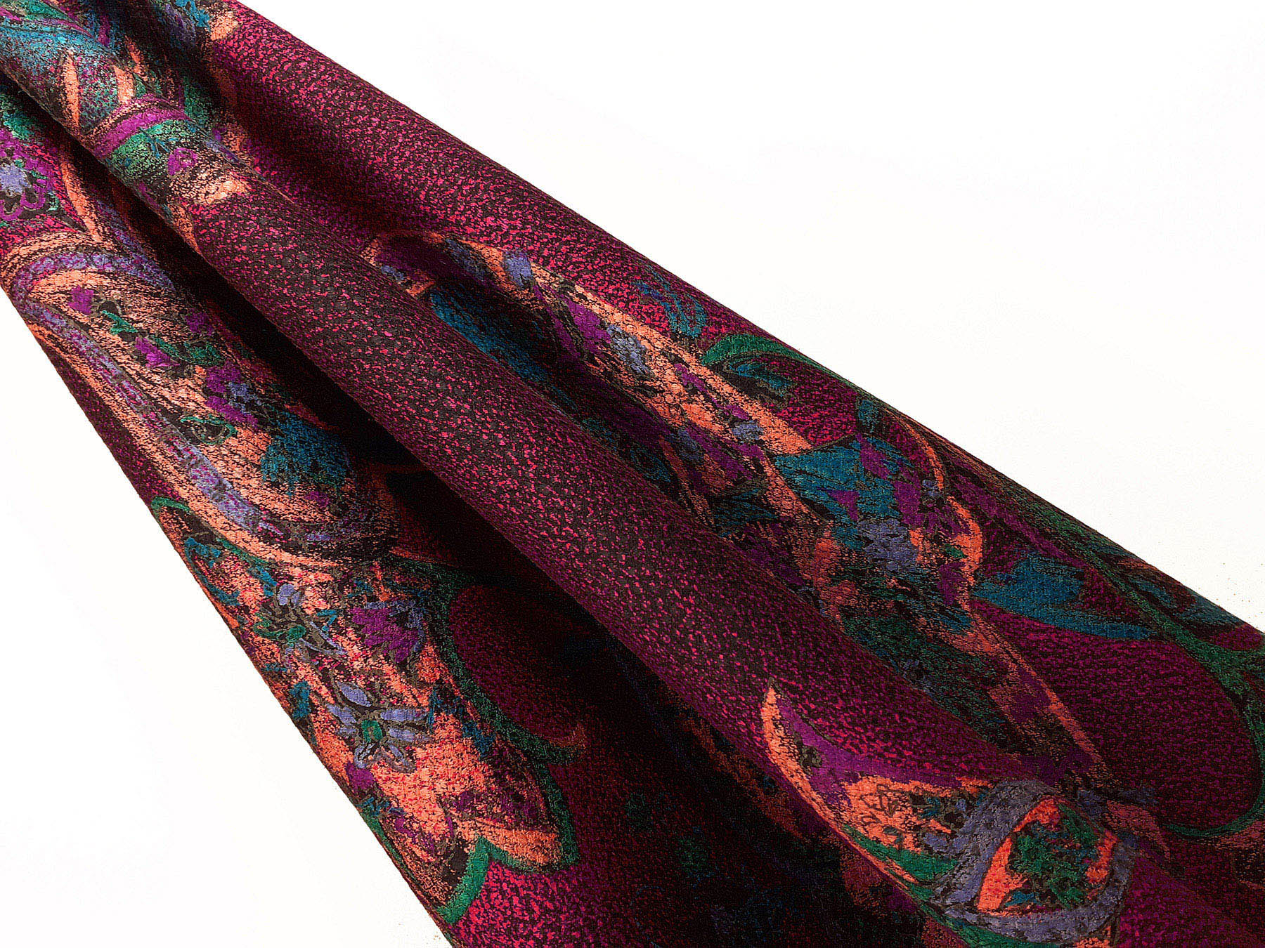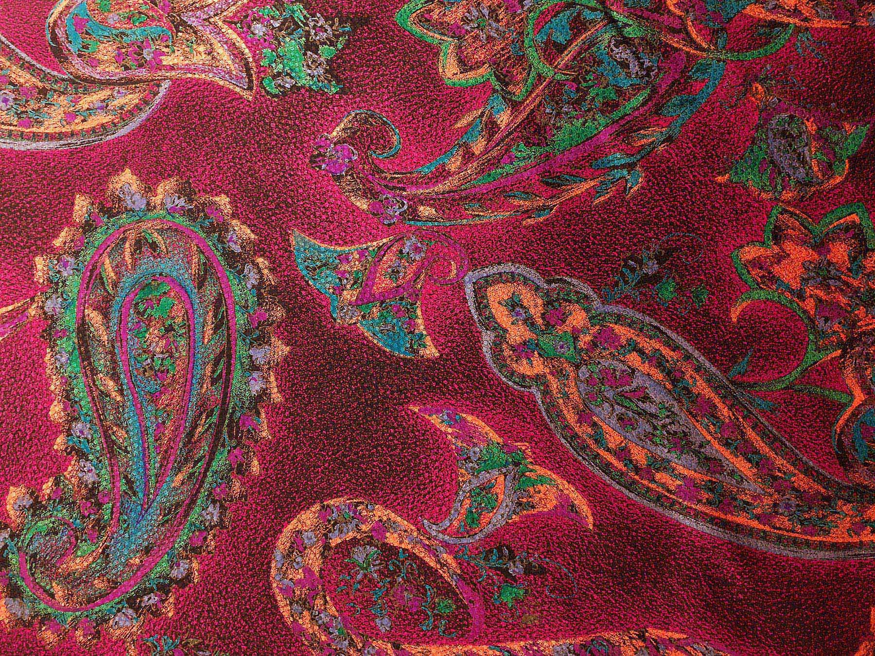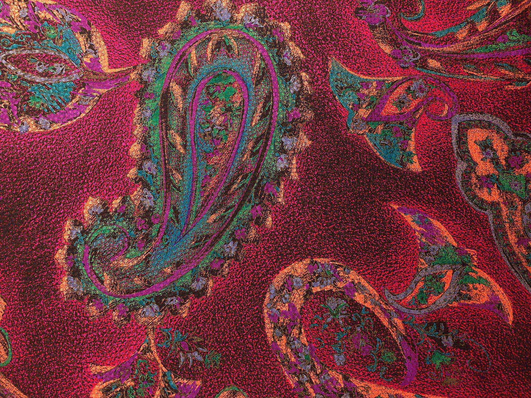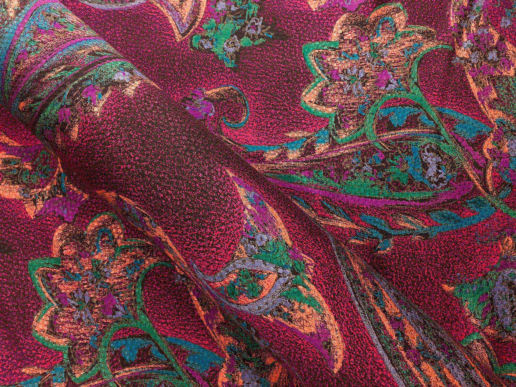 Seta jacquard fantasia cashmere su fondo rosso cremisi