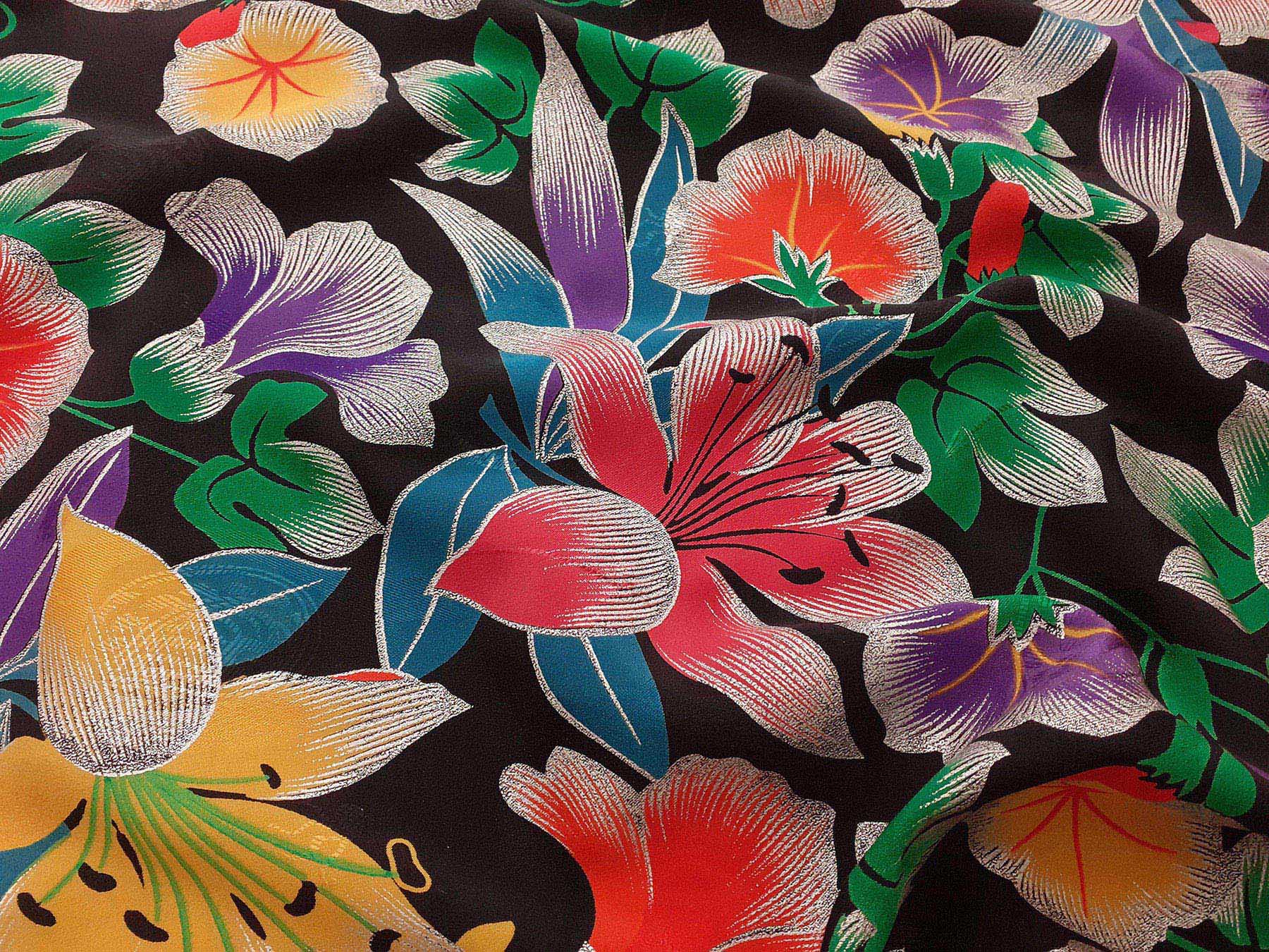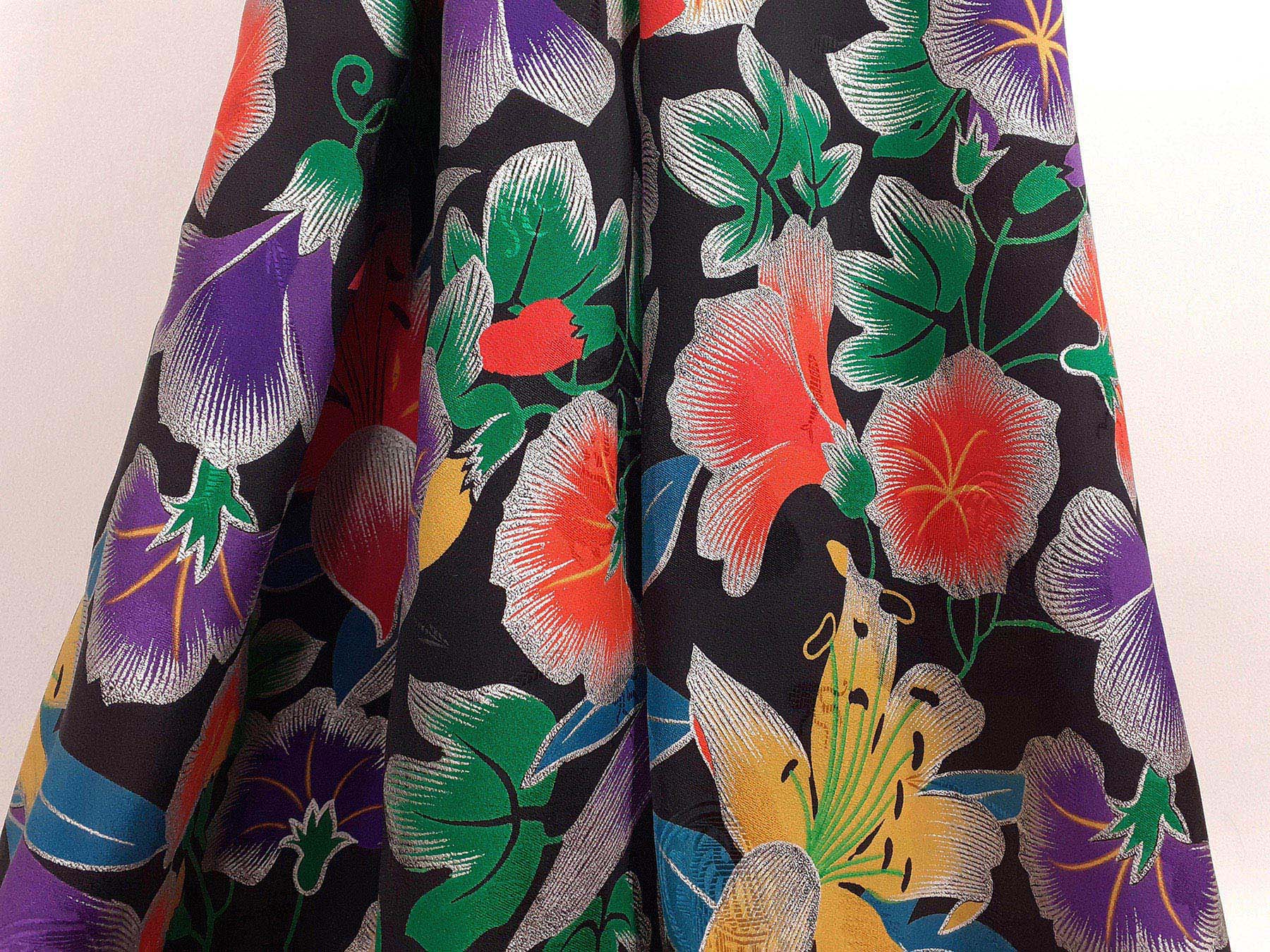 In questo tessuto di seta pura, prodotto a Como, la lavorazione jacquard con il contrasto fra lucido e opaco, crea un piacevole effetto di tridimensionalità. Perfetto per la realizzazione di abiti ampi e sinuosi, grazie alla sua morbidezza e caduta, può essere utilizzato anche per capi più lineari che mettono in evidenza la ricchezza e la particolarità di questo tipo di tessuto.
