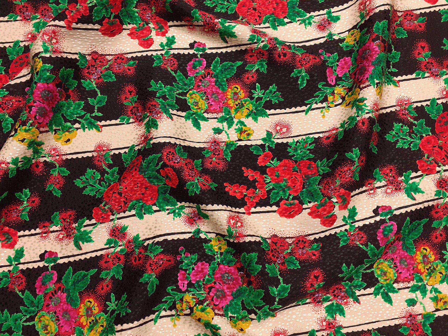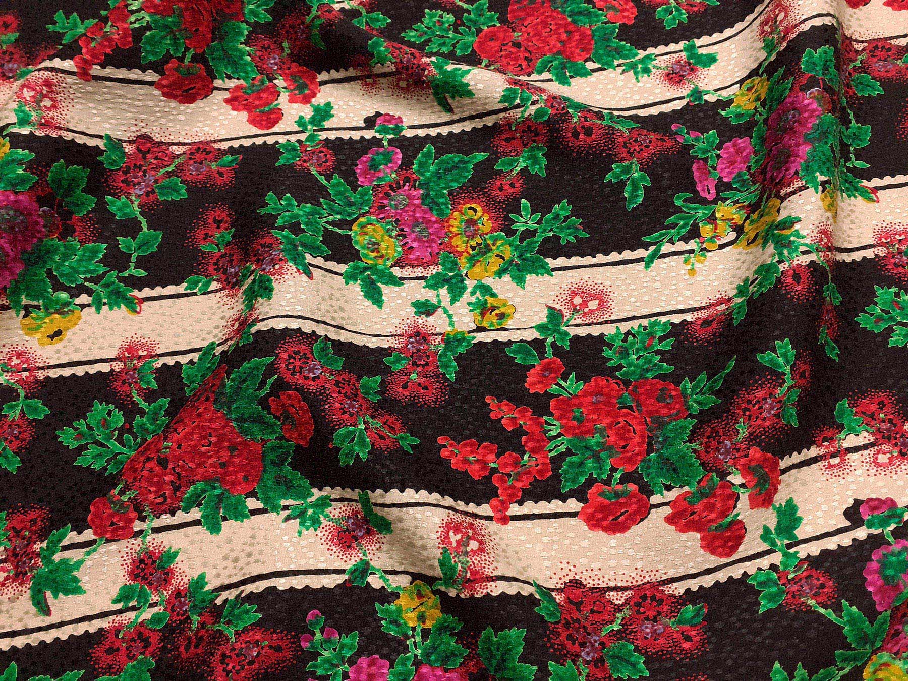 In questo tessuto di seta pura, prodotto a Como, la lavorazione jacquard con il contrasto fra lucido e opaco, crea un piacevole effetto di tridimensionalità. Perfetto per la realizzazione di abiti ampi e sinuosi, grazie alla sua morbidezza e caduta, può essere utilizzato anche per capi più lineari che mettono in evidenza la ricchezza e la particolarità di questo tipo di tessuto.