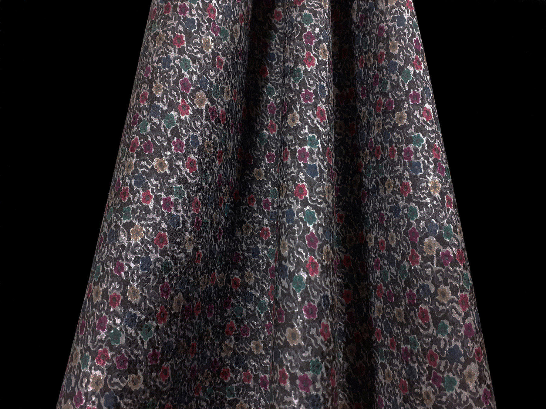 In questo tessuto di seta pura, prodotto a Como, la lavorazione jacquard con il contrasto fra lucido e opaco, crea un piacevole effetto di tridimensionalità. Perfetto per la realizzazione di abiti ampi e sinuosi, grazie alla sua morbidezza e caduta, può essere utilizzato anche per capi più lineari che mettono in evidenza la ricchezza e la particolarità di questo tipo di tessuto.