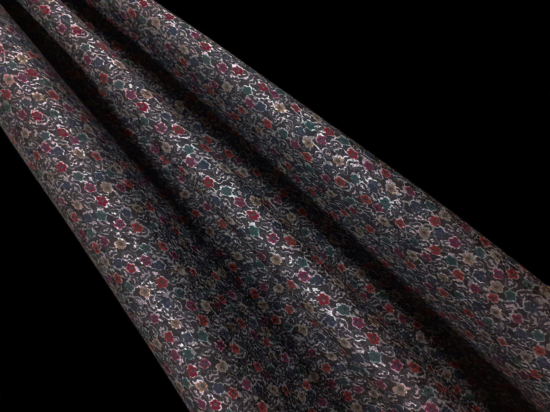 Seta jacquard fantasia floreale su fondo grigio acciaio