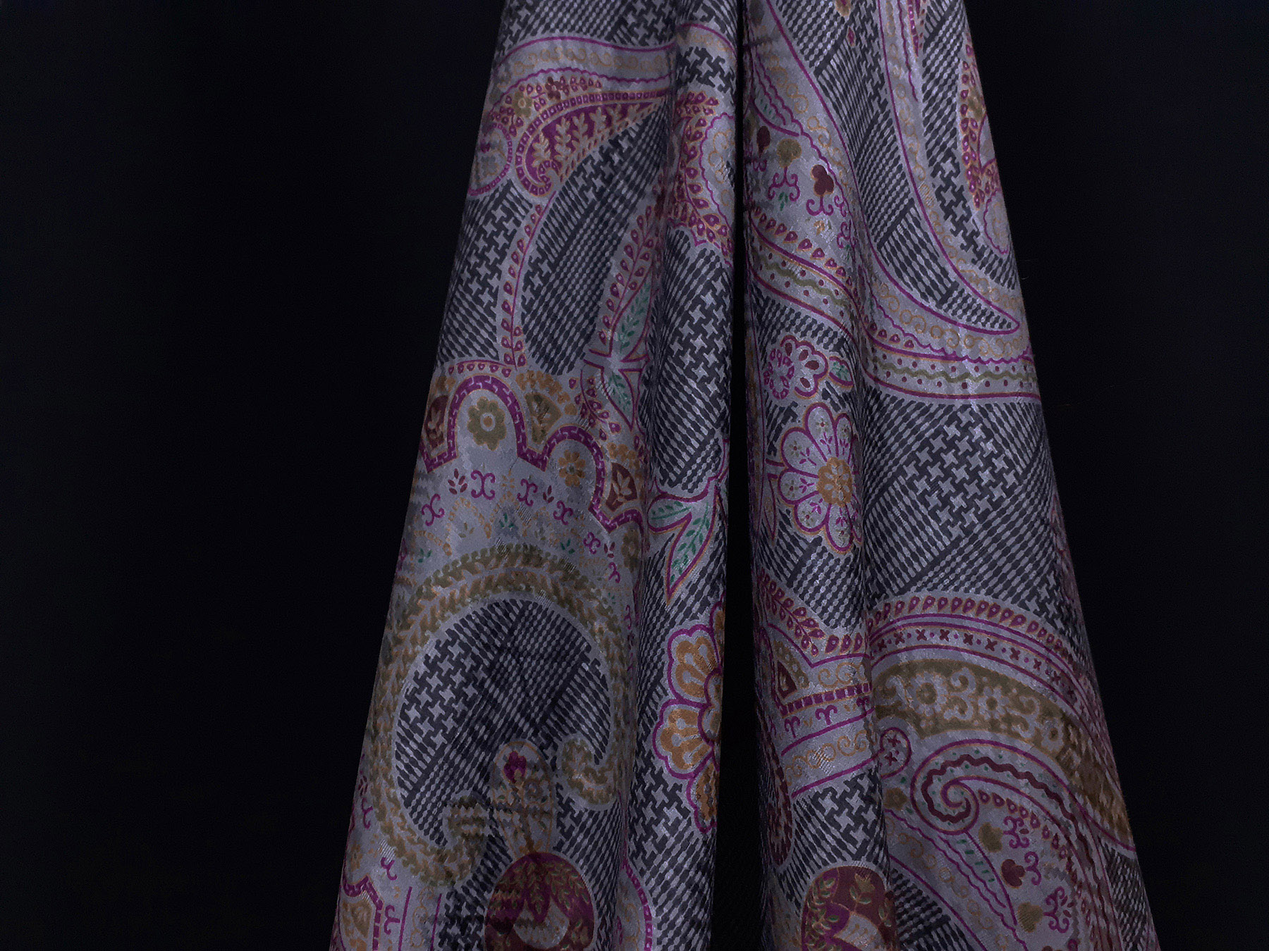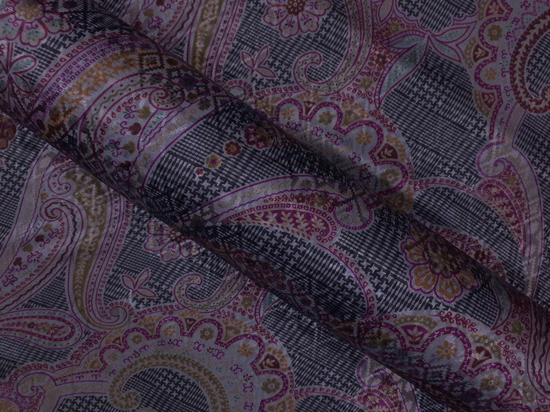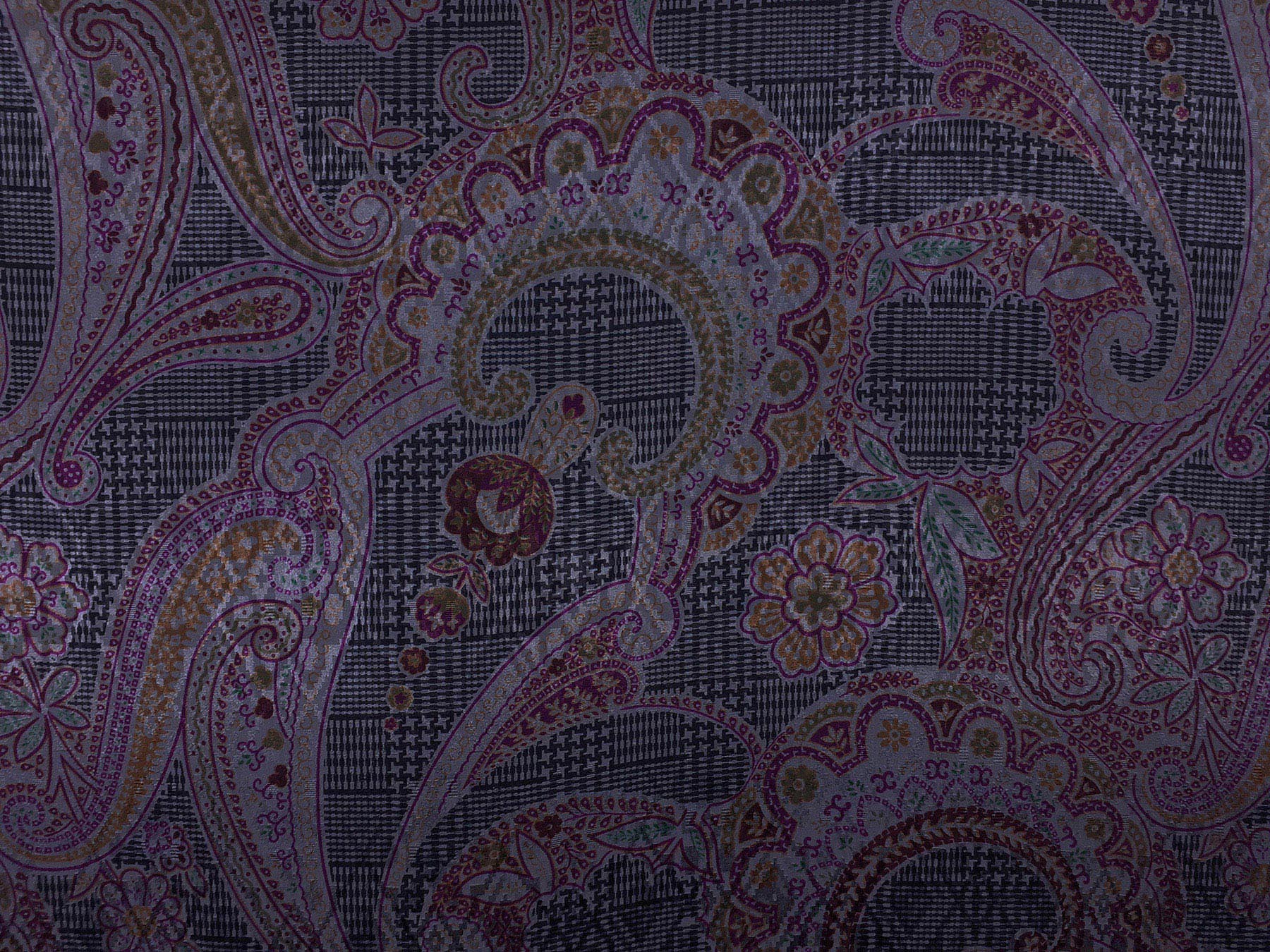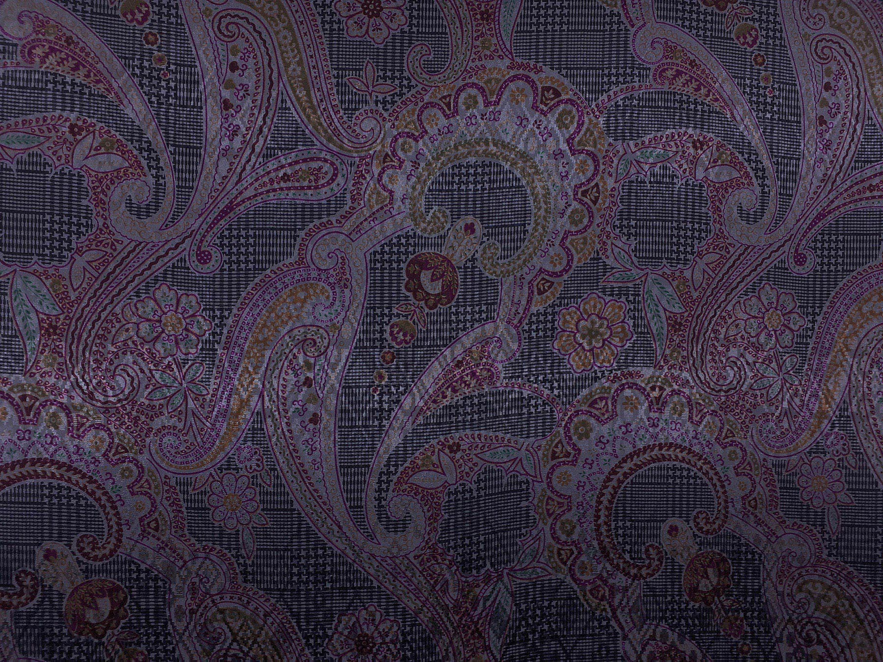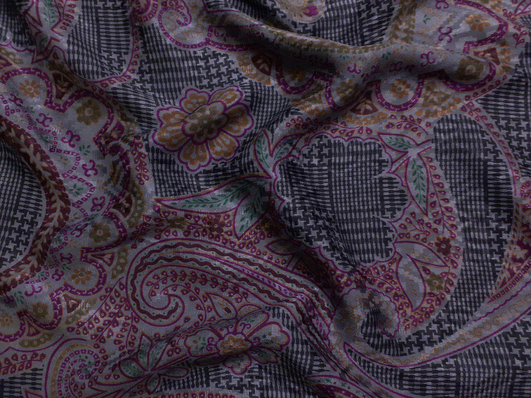 Seta jacquard fantasia cashmere bordeaux su fondo grigio