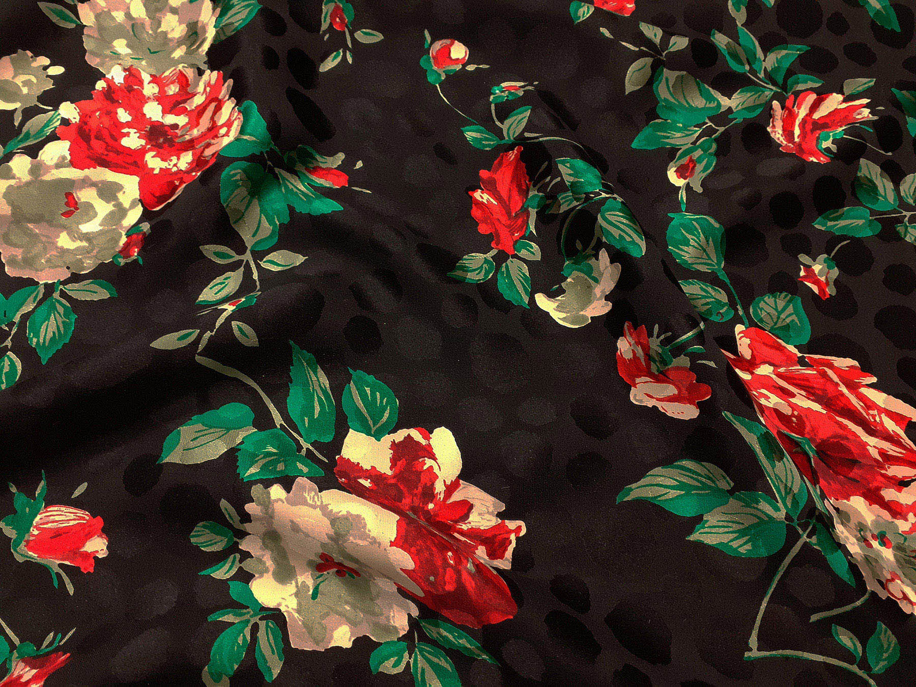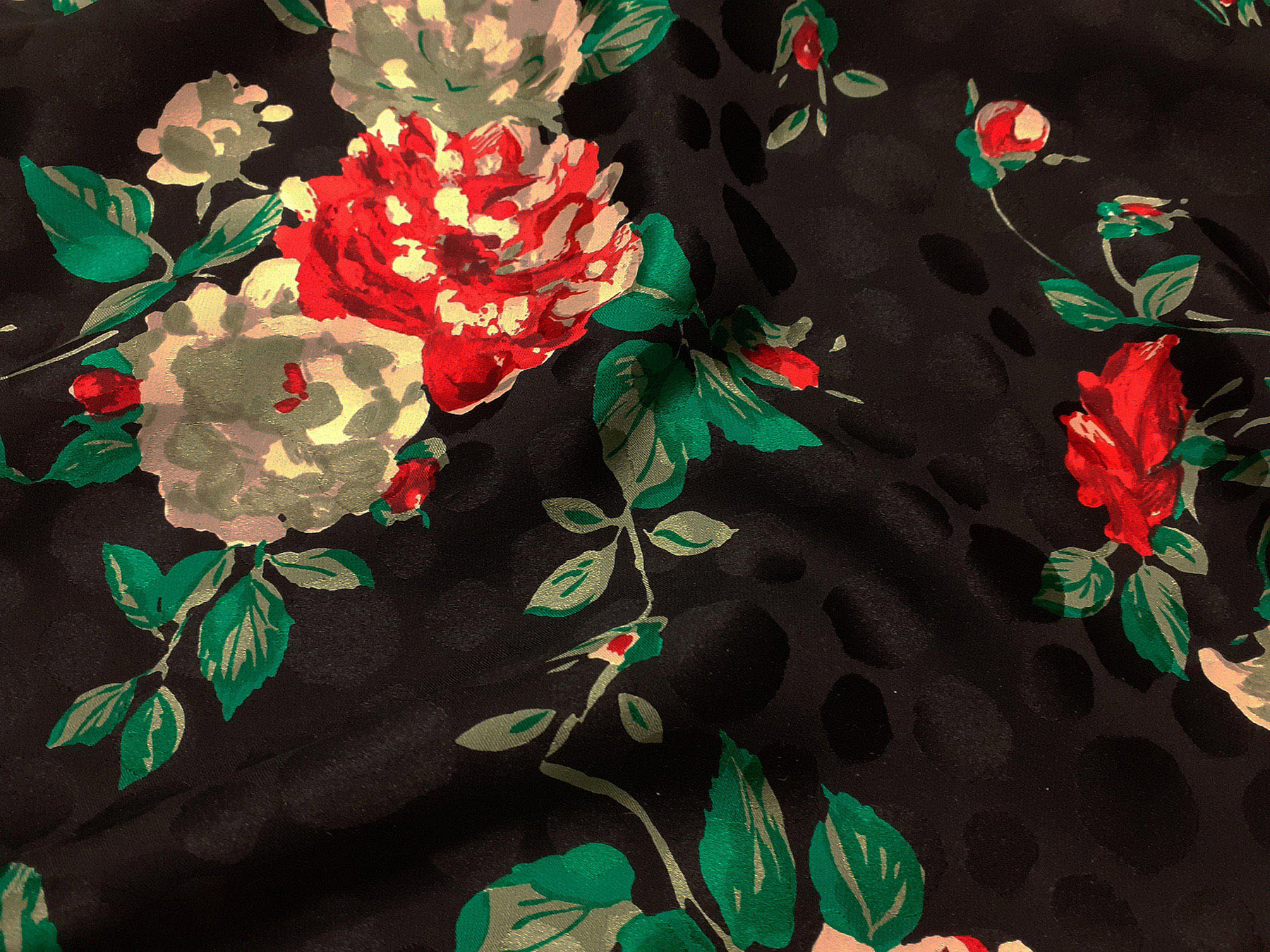 Seta jacquard fantasia floreale su fondo nero