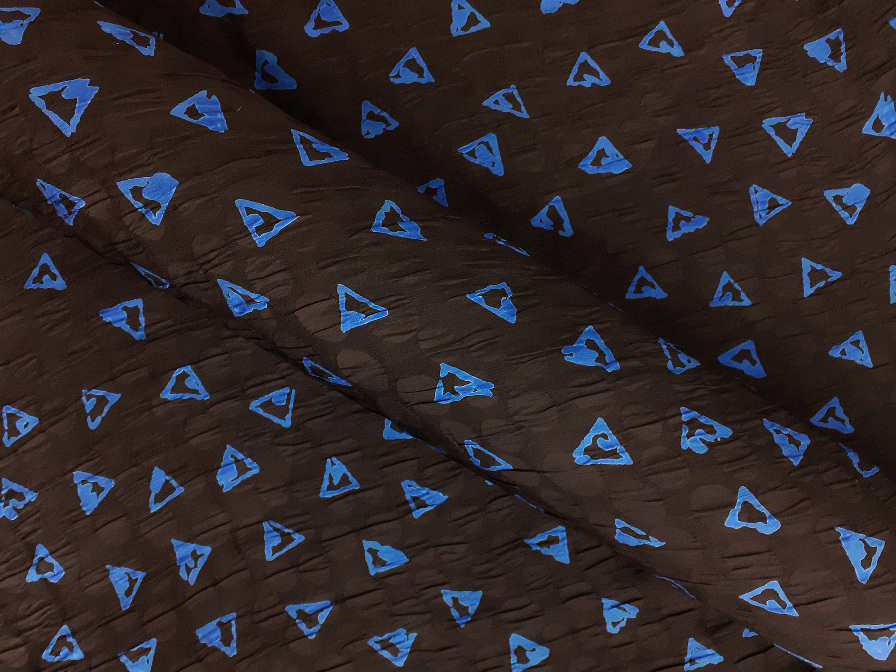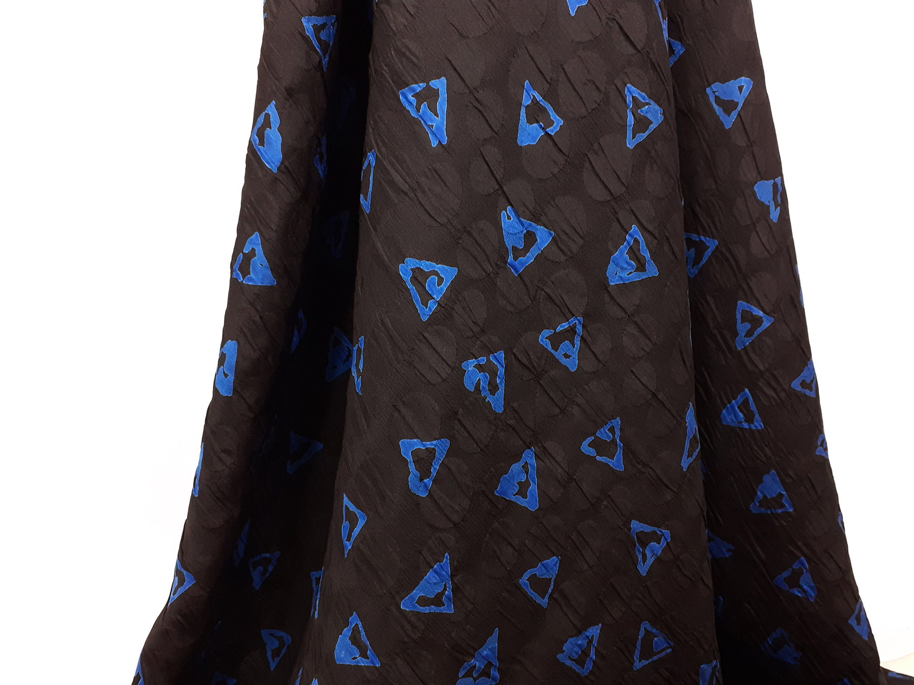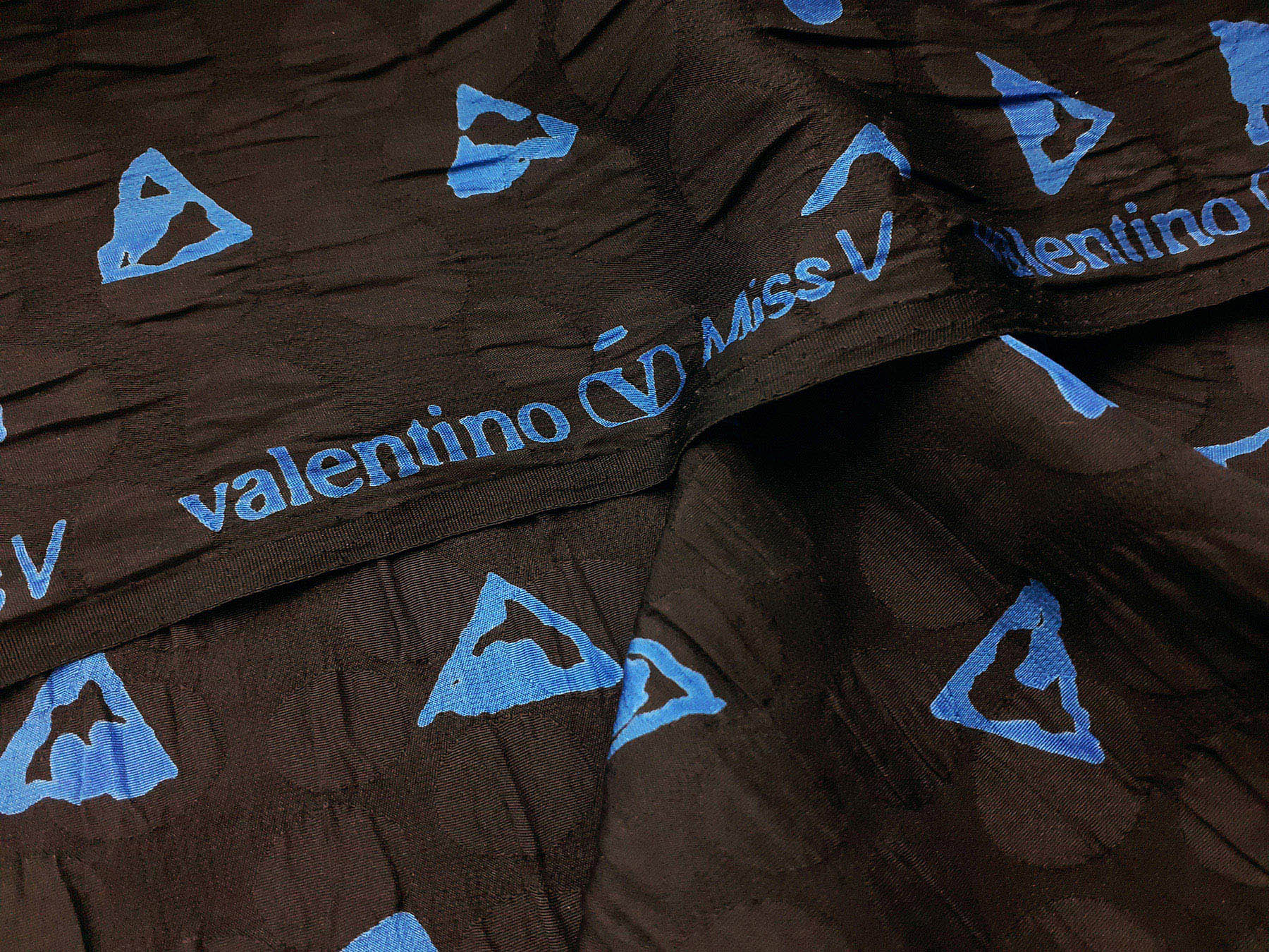 Seta jacquard fantasia astratta blu cobalto su fondo nero. Valentino Miss V