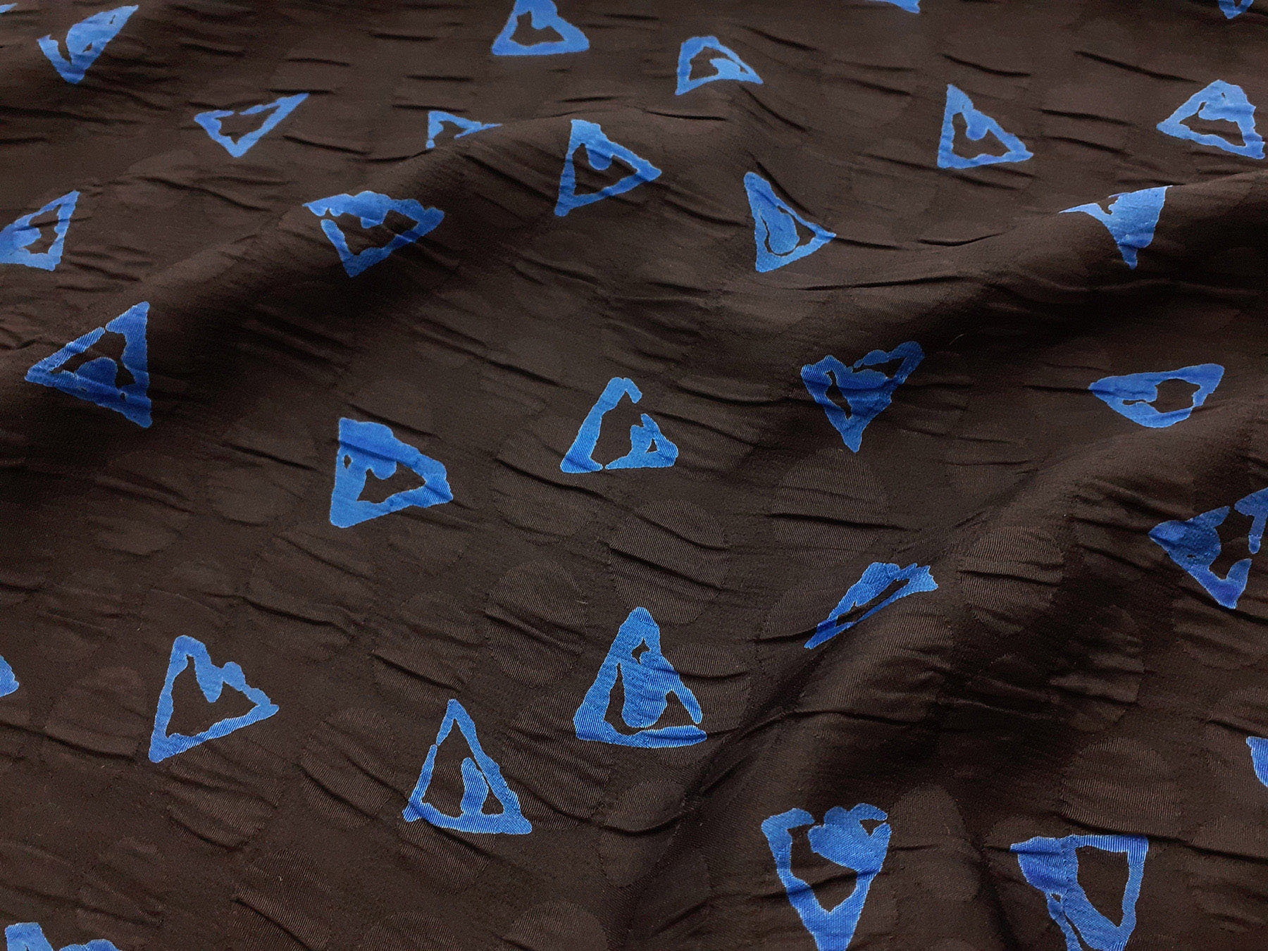 In questo tessuto di seta pura, prodotto a Como, la lavorazione jacquard con il contrasto fra lucido e opaco, crea un piacevole effetto di tridimensionalità. Perfetto per la realizzazione di abiti ampi e sinuosi, grazie alla sua morbidezza e caduta, può essere utilizzato anche per capi più lineari che mettono in evidenza la ricchezza e la particolarità di questo tipo di tessuto.