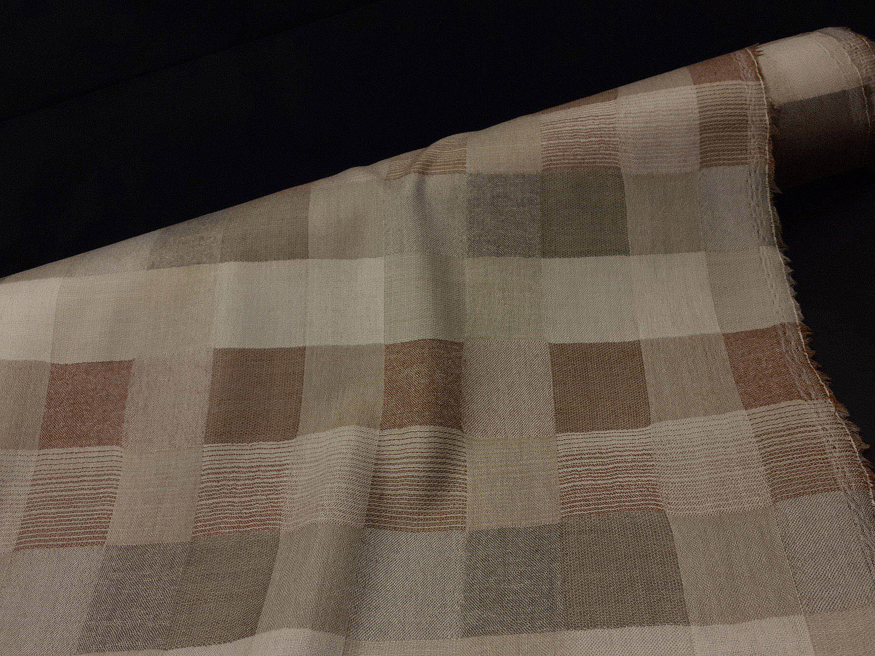 Flanella leggera in lana merino a riquadri sui toni del beige