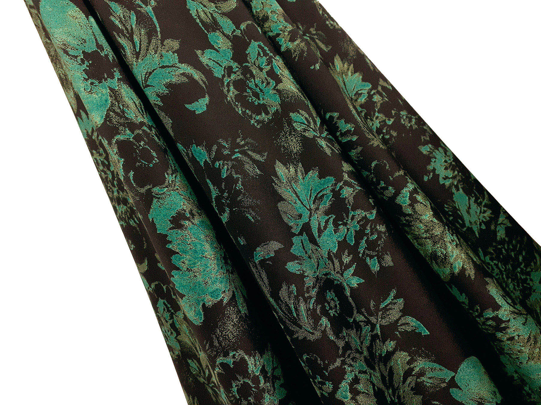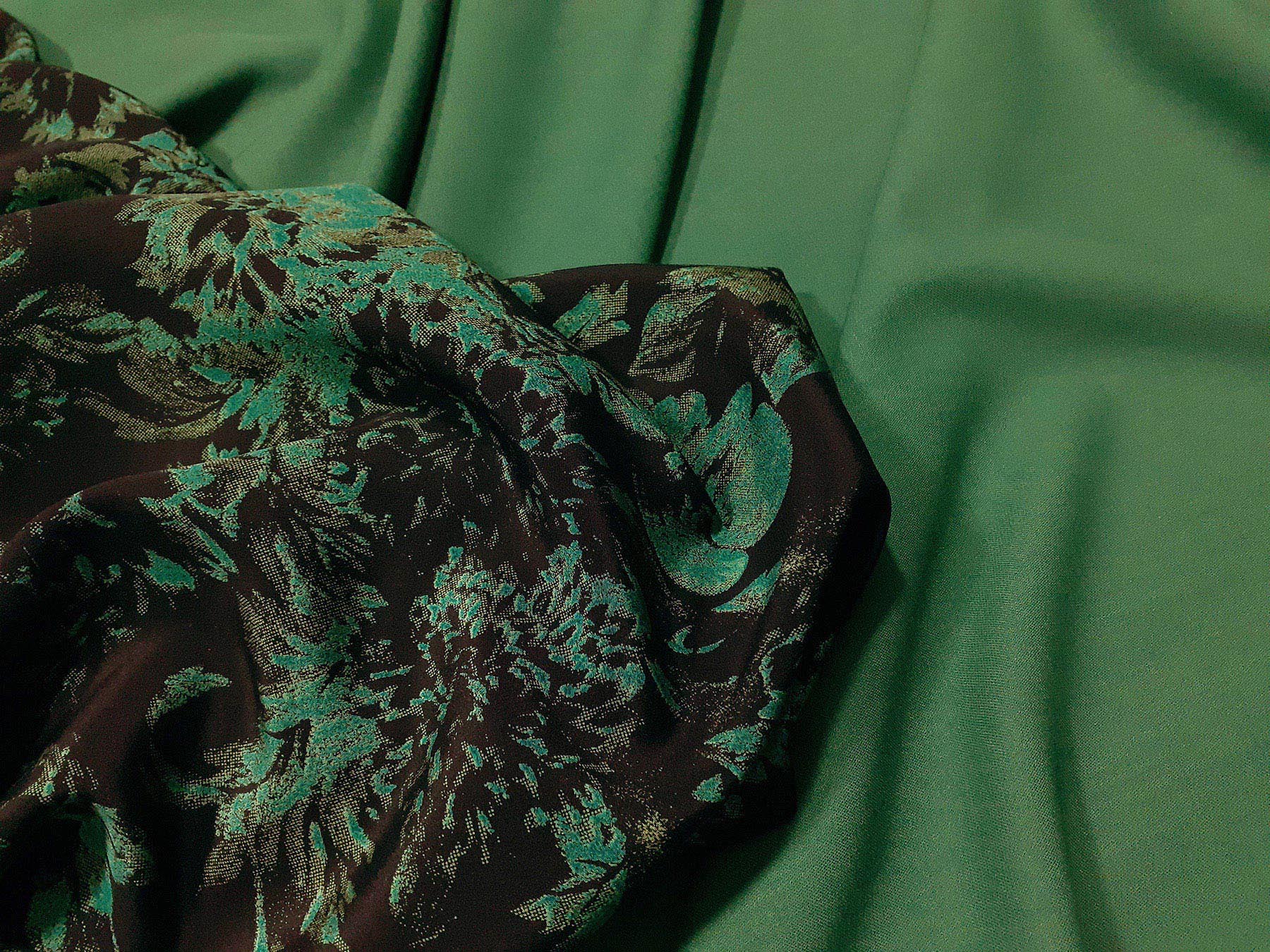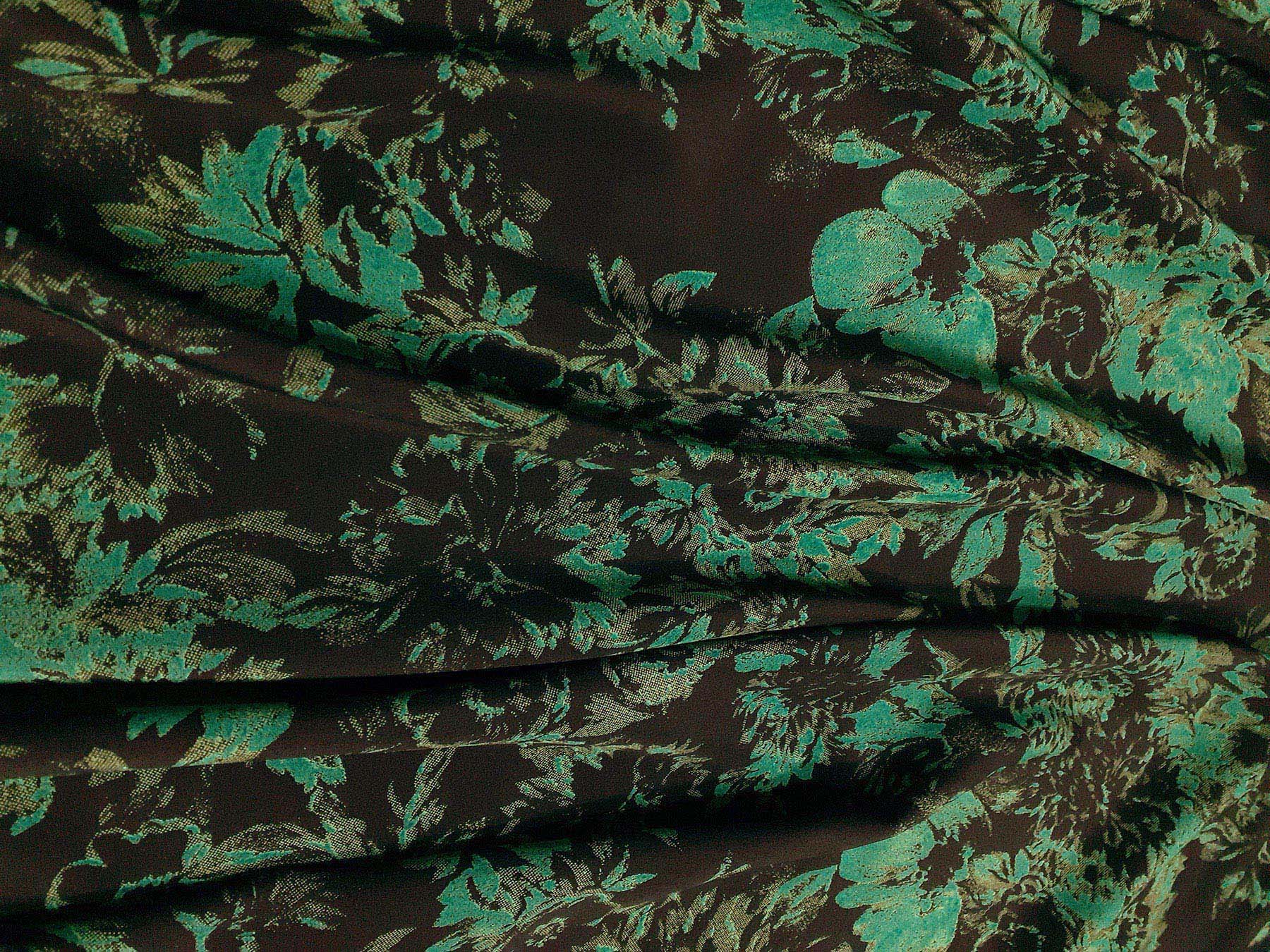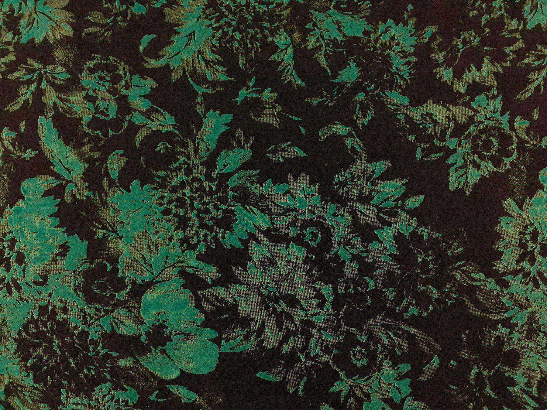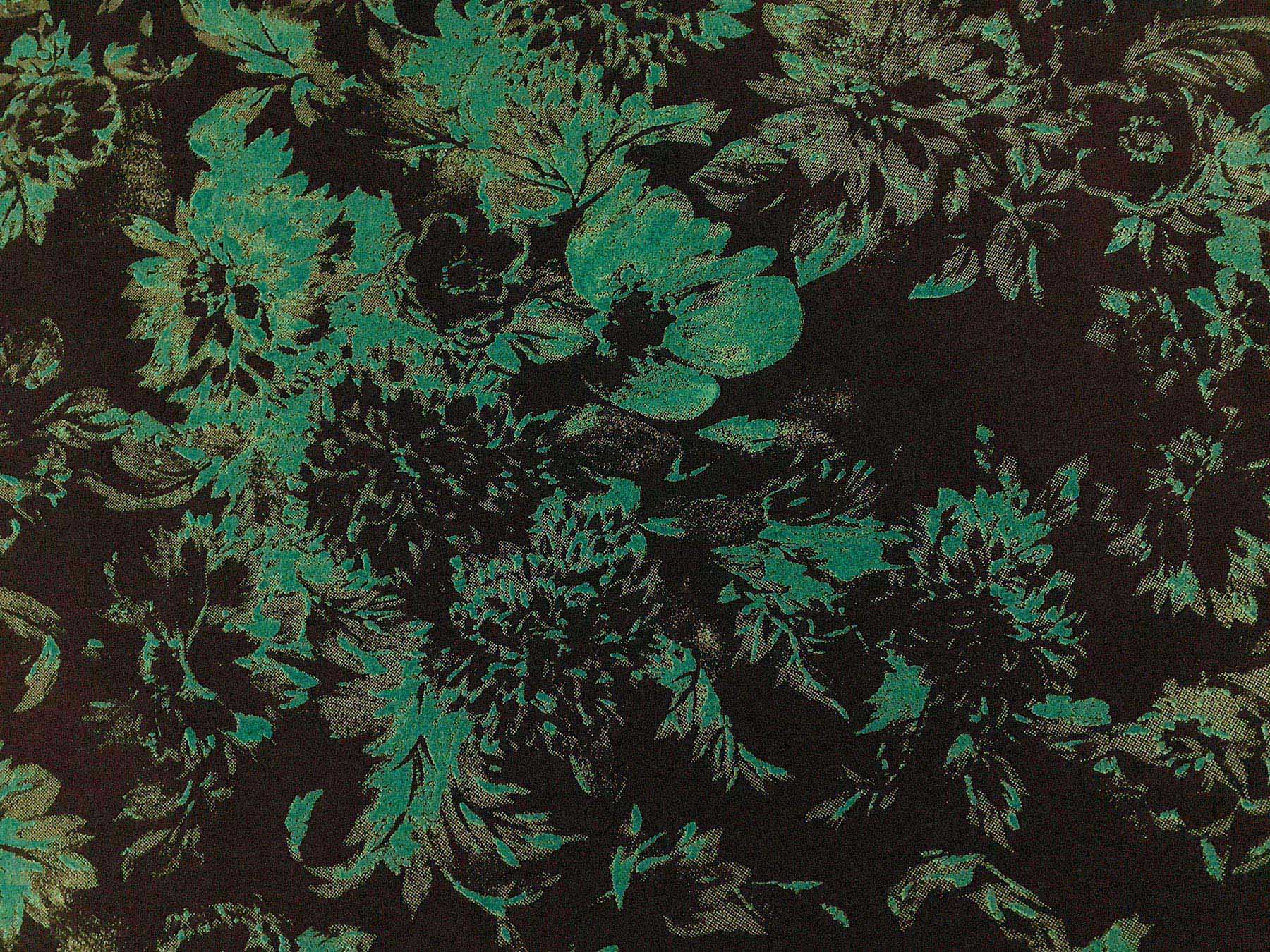 Crepe de Chine in seta fantasia floreale verde su fondo nero