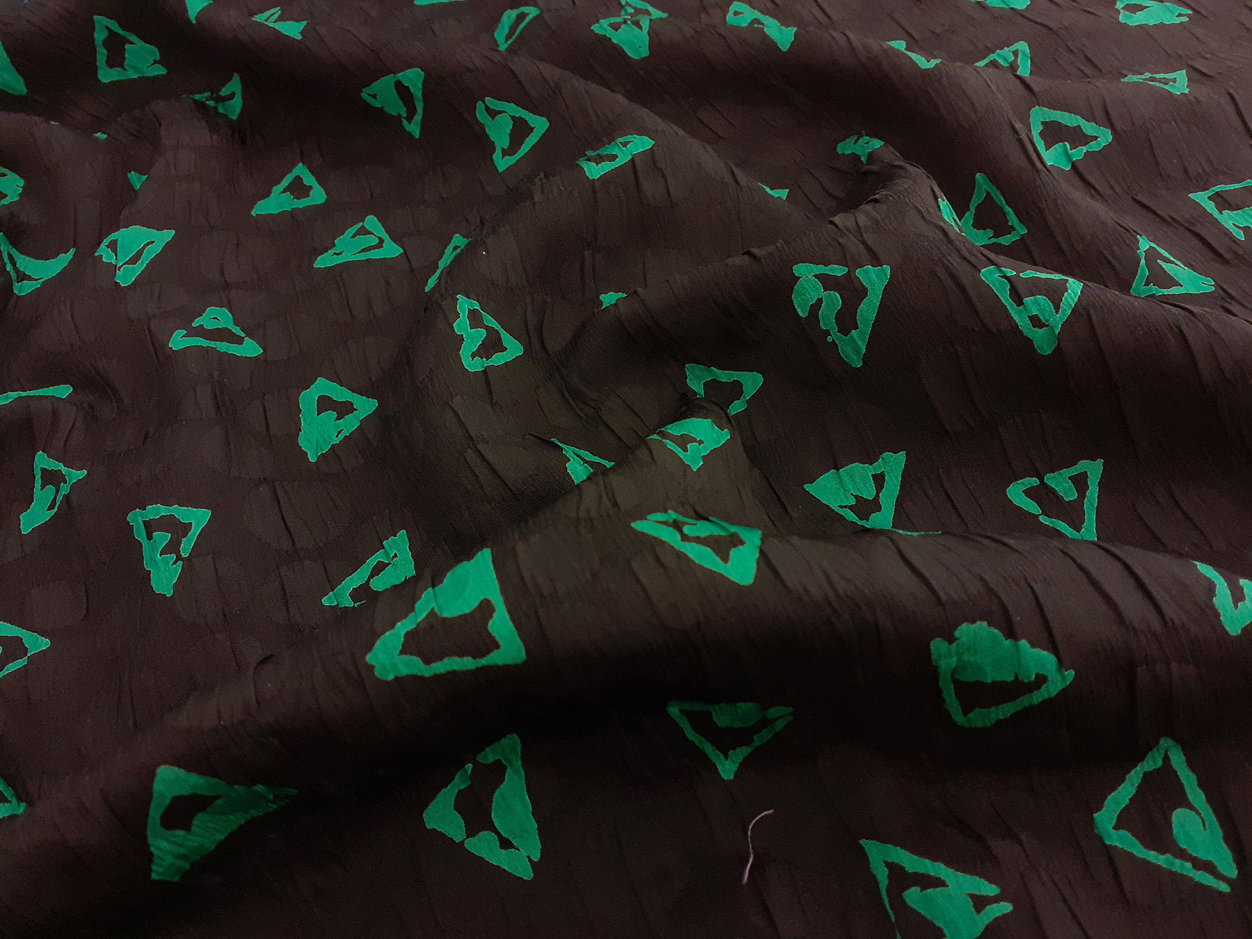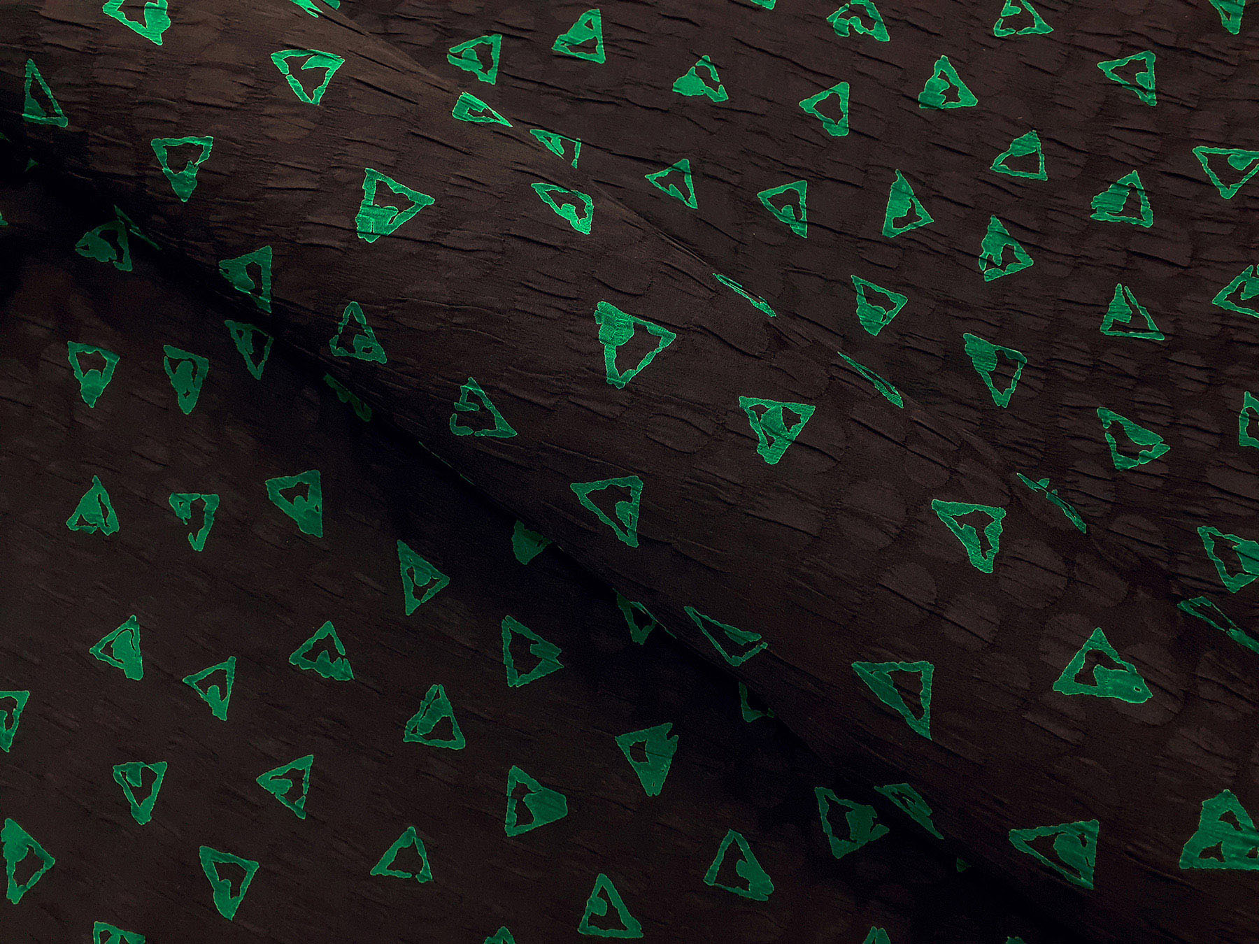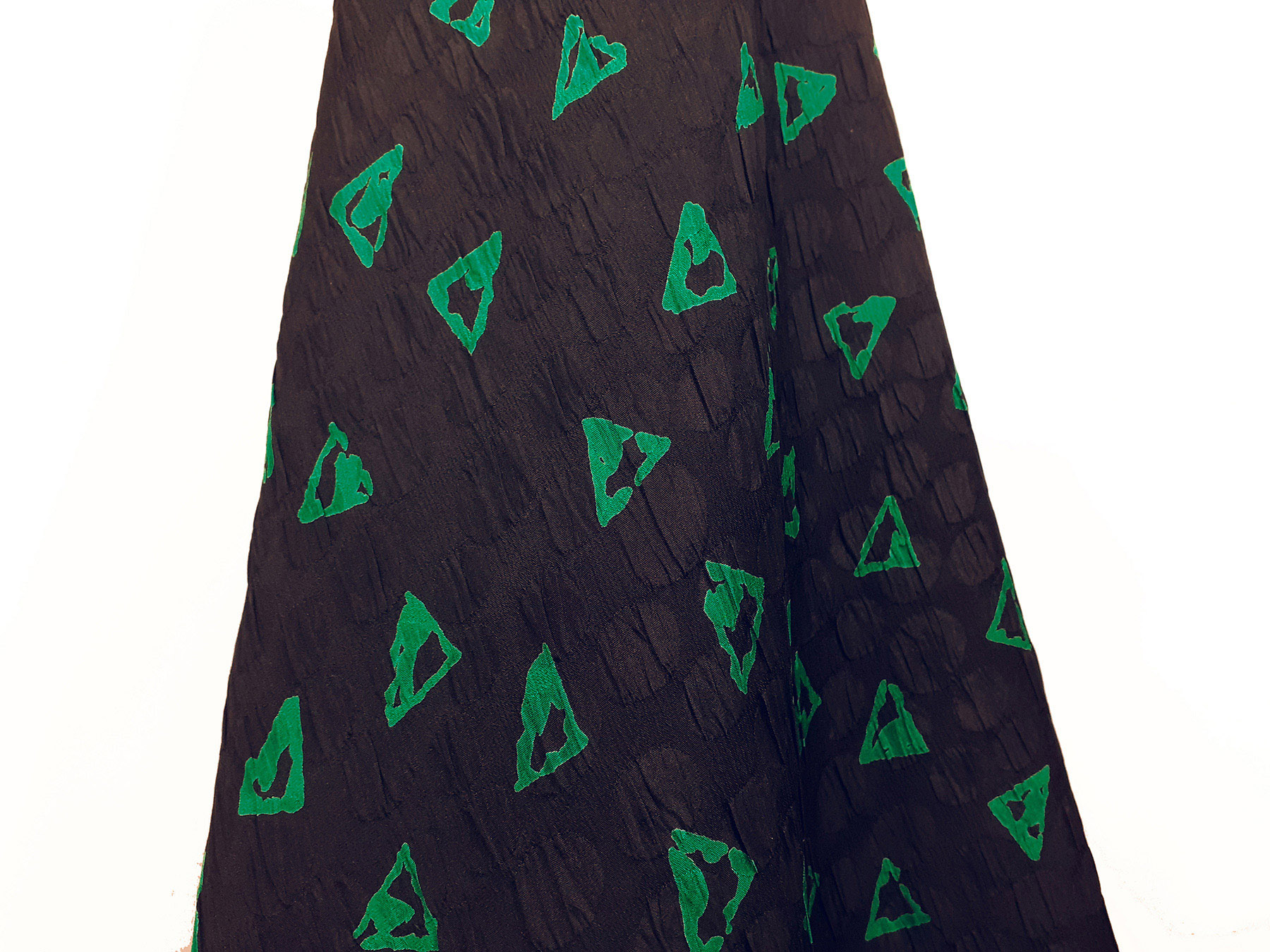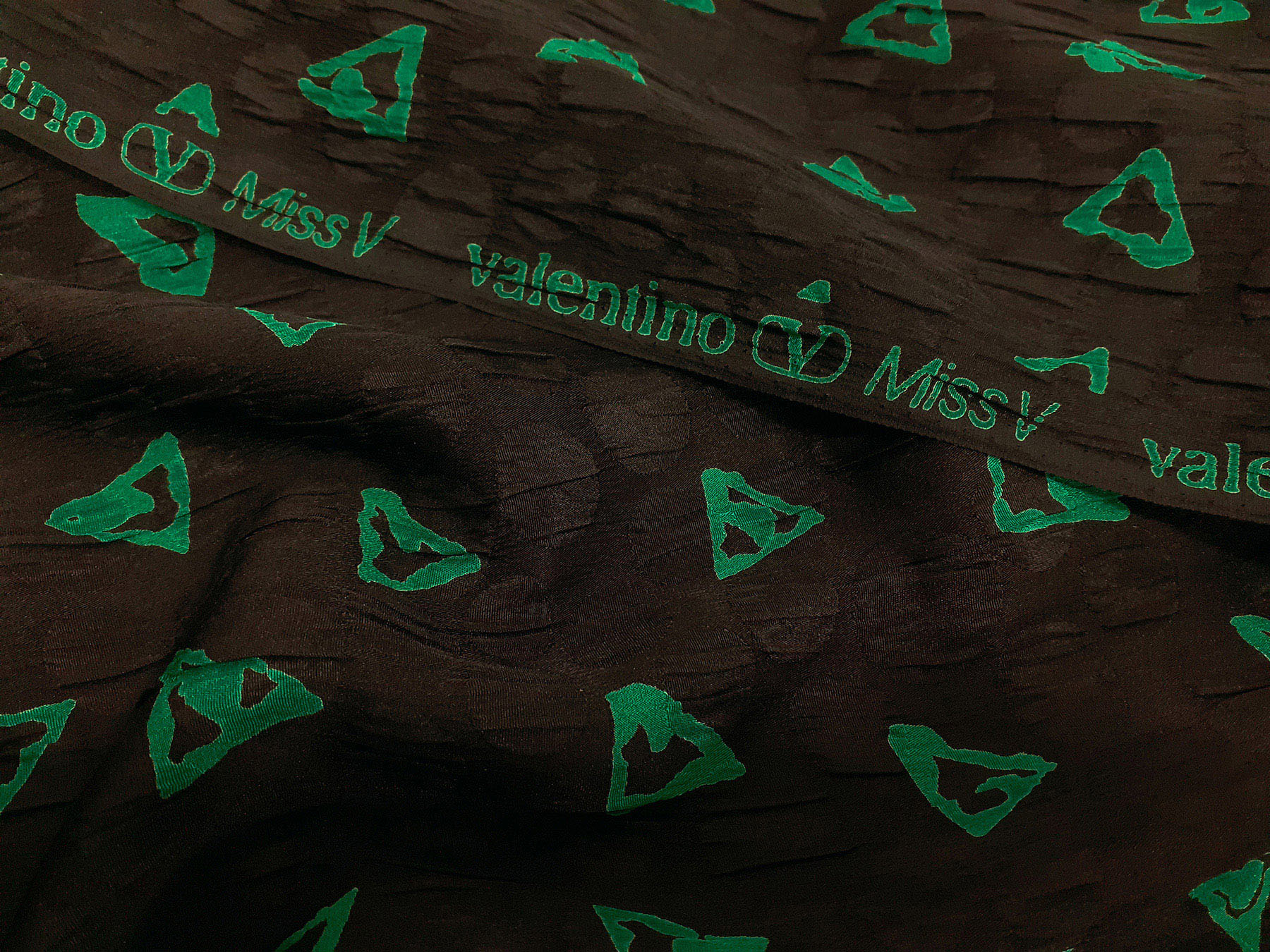 Seta jacquard fantasia astratta verde su fondo nero. Valentino Miss V