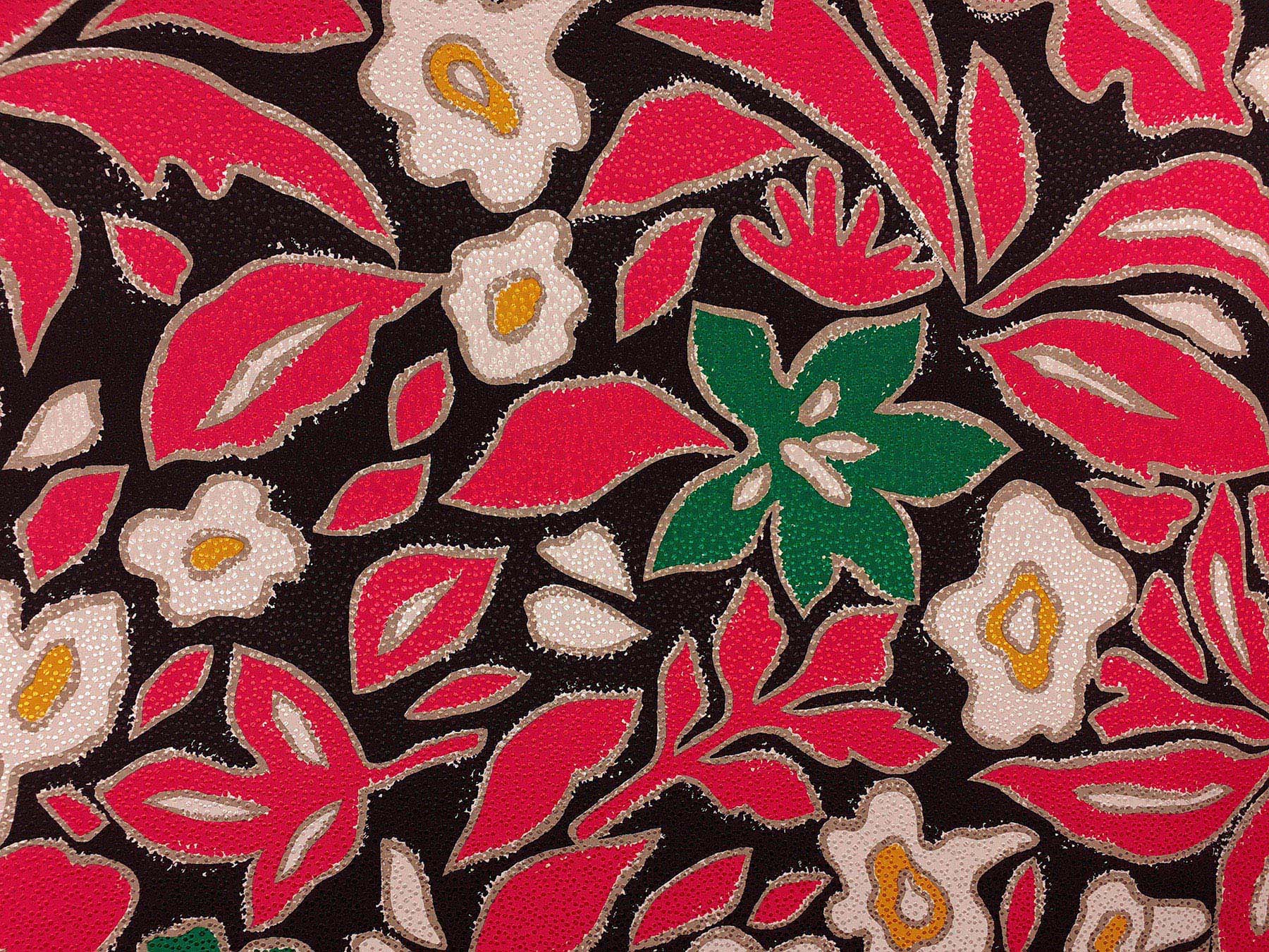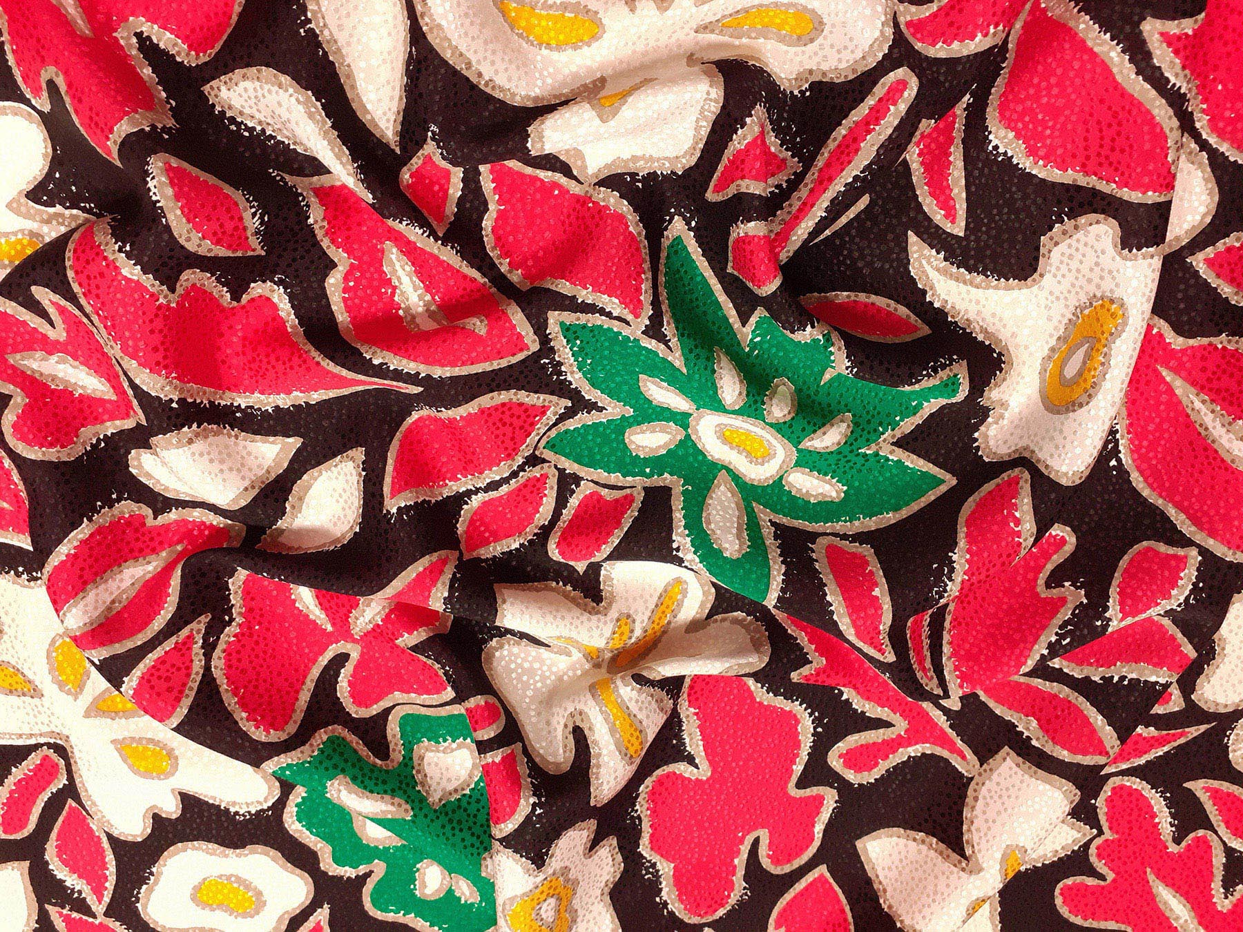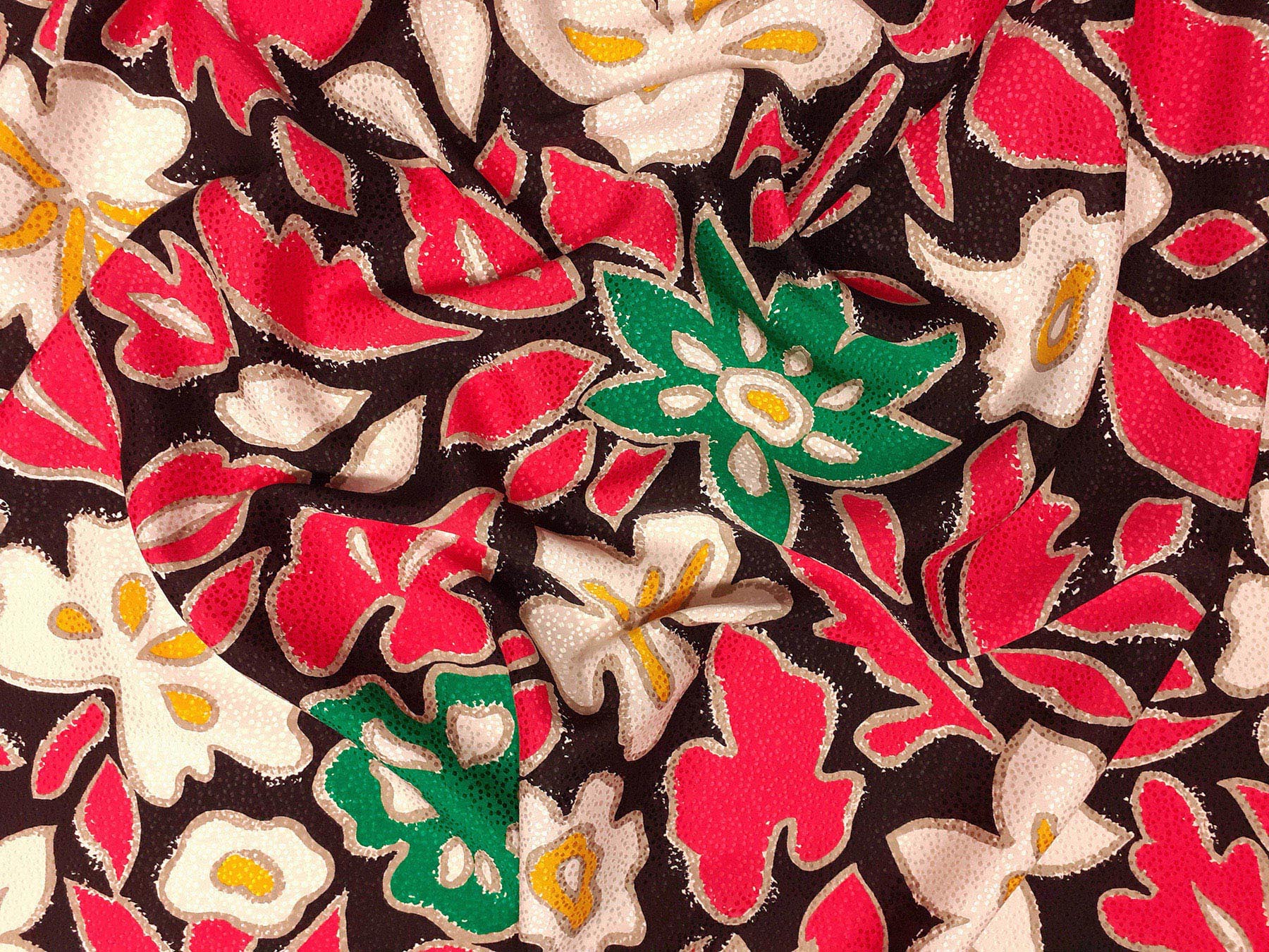 In questo tessuto di seta pura, prodotto a Como, la lavorazione jacquard con il contrasto fra lucido e opaco, crea un piacevole effetto di tridimensionalità. Perfetto per la realizzazione di abiti ampi e sinuosi, grazie alla sua morbidezza e caduta, può essere utilizzato anche per capi più lineari che mettono in evidenza la ricchezza e la particolarità di questo tipo di tessuto.