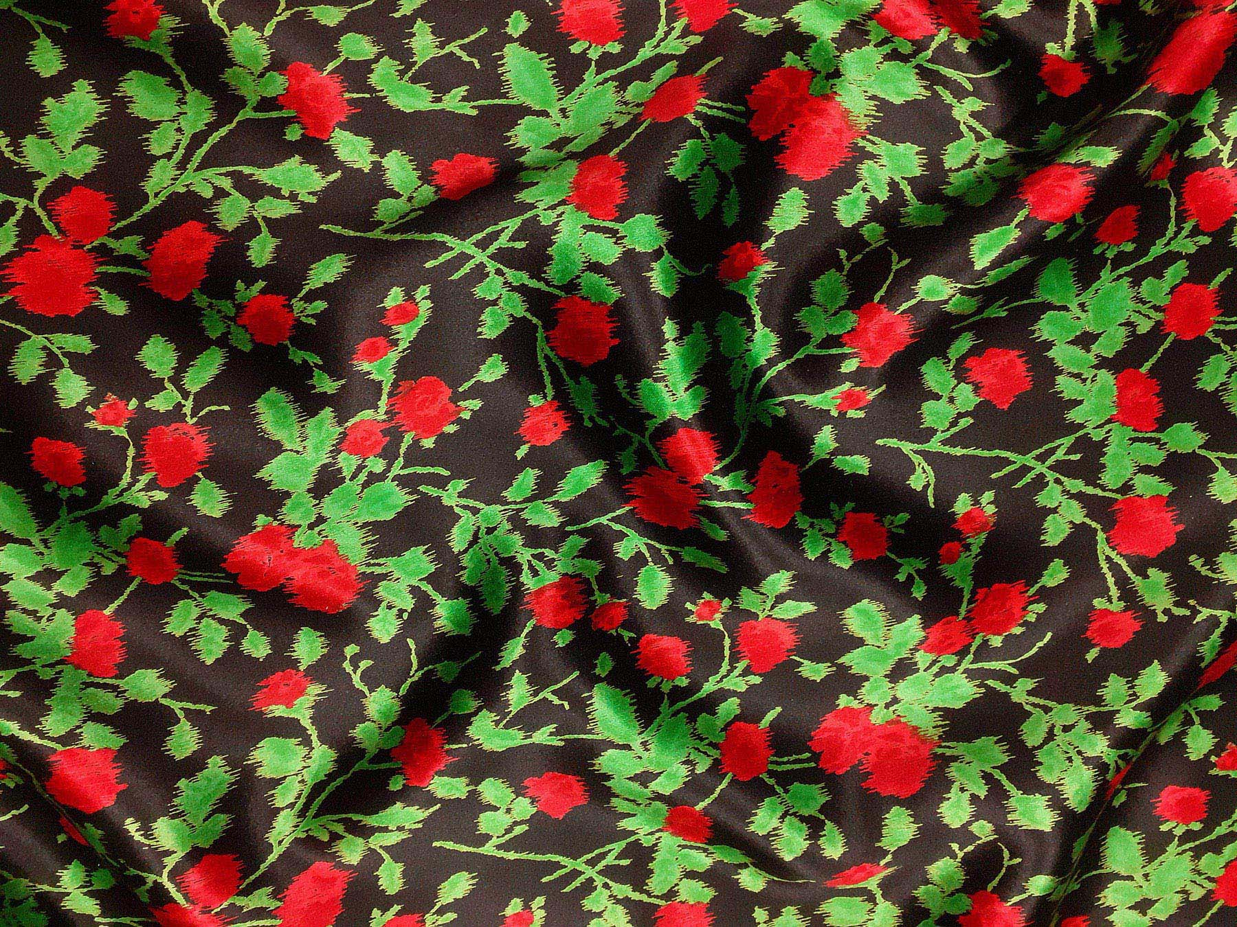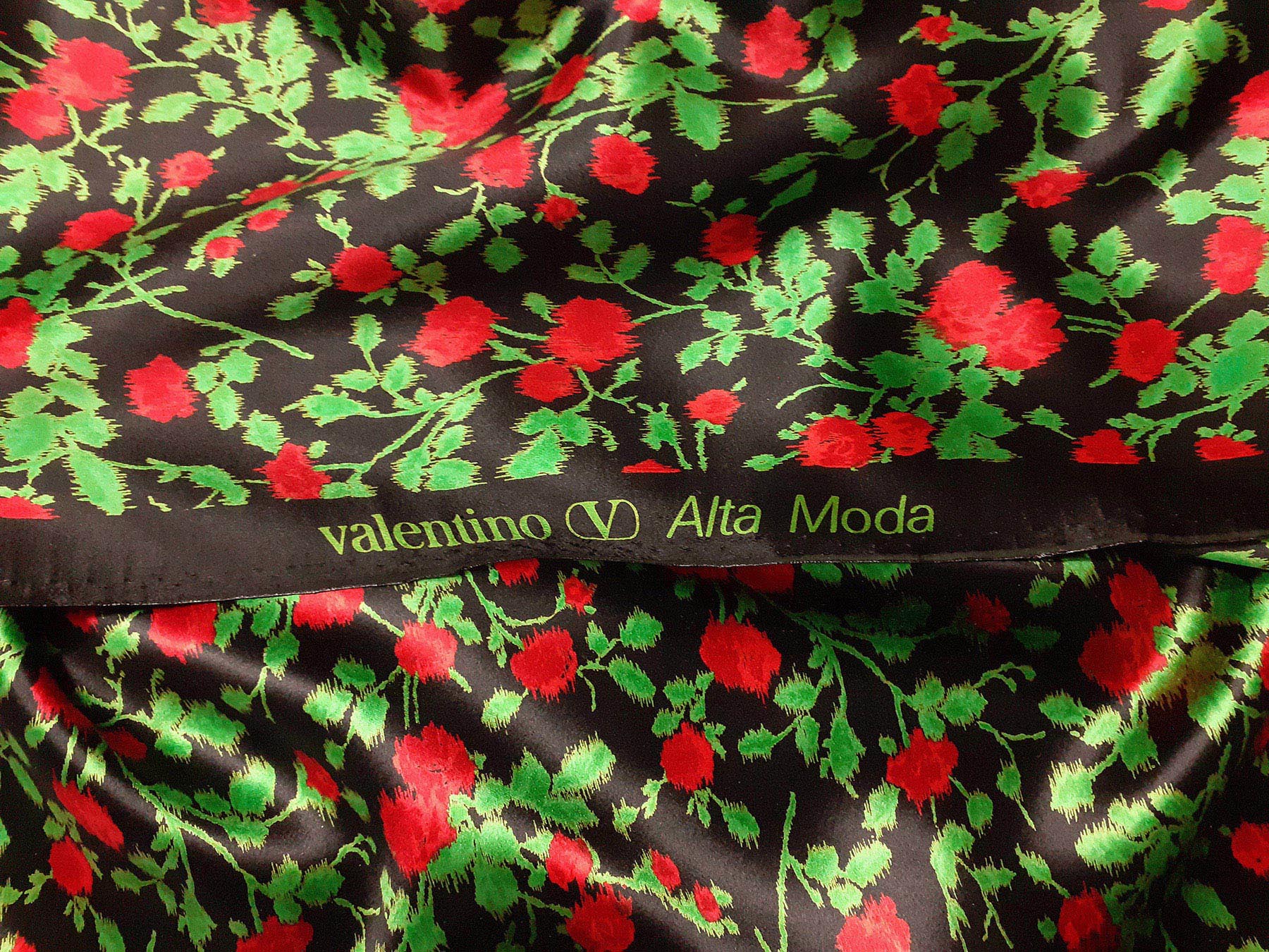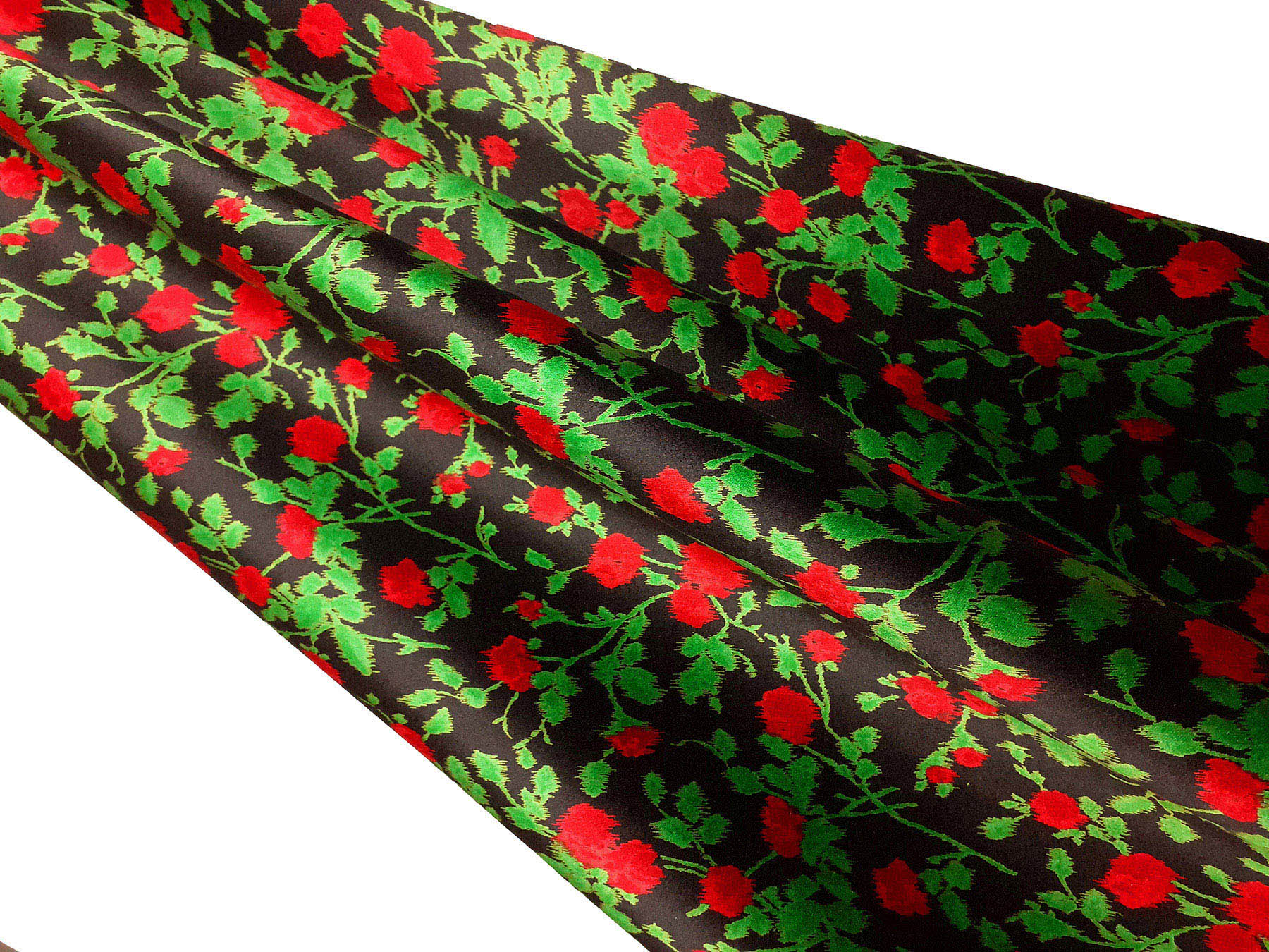 Raso pesante di seta fantasia floreale fondo nero. Valentino Alta Moda
