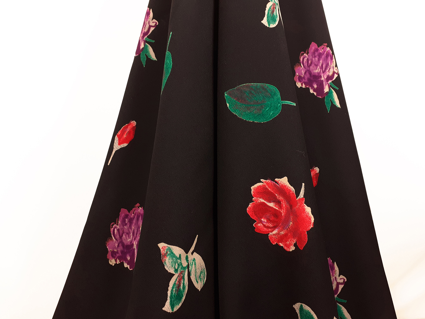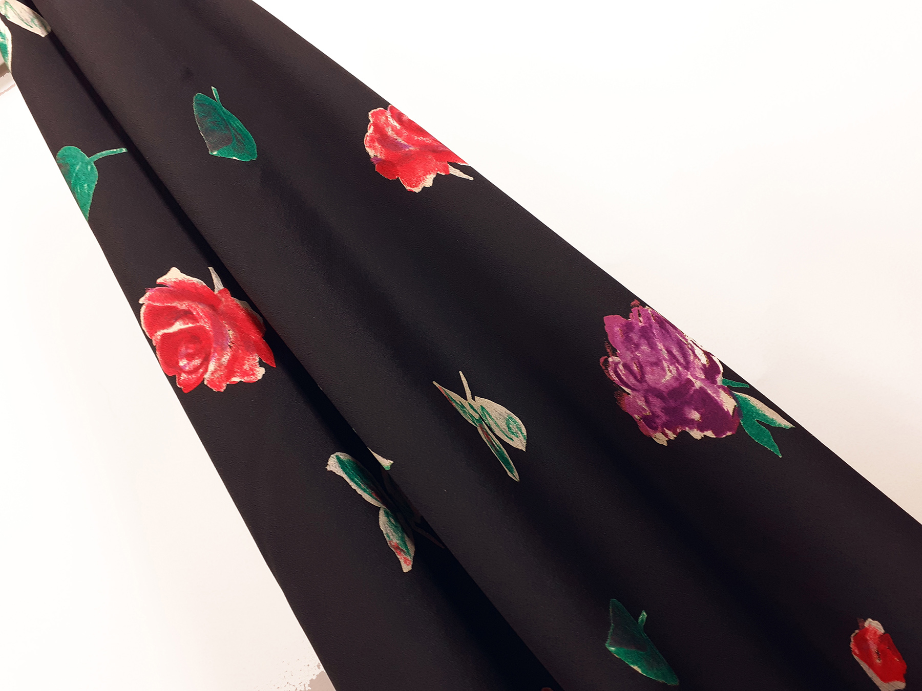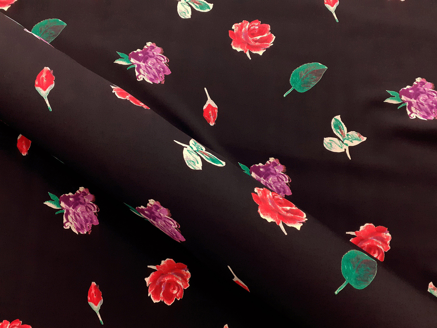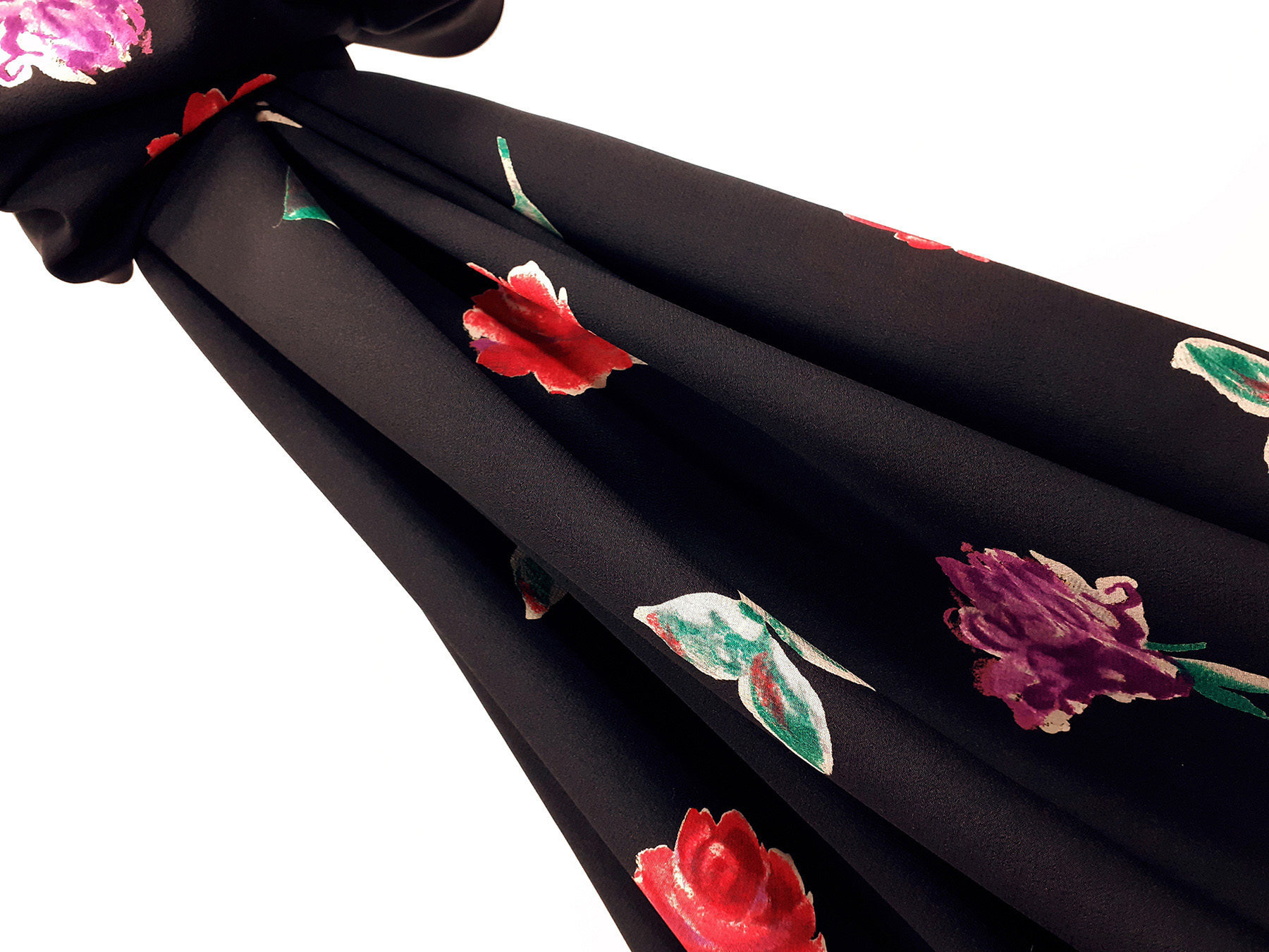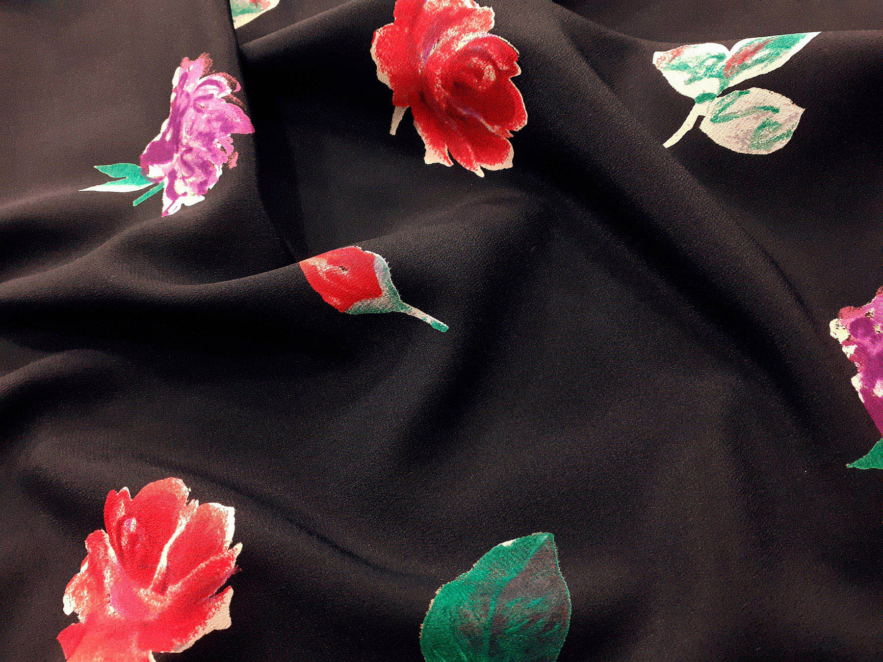 Crepe de Chine in seta fantasia floreale su fondo nero