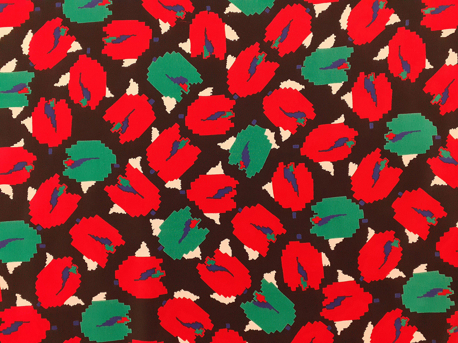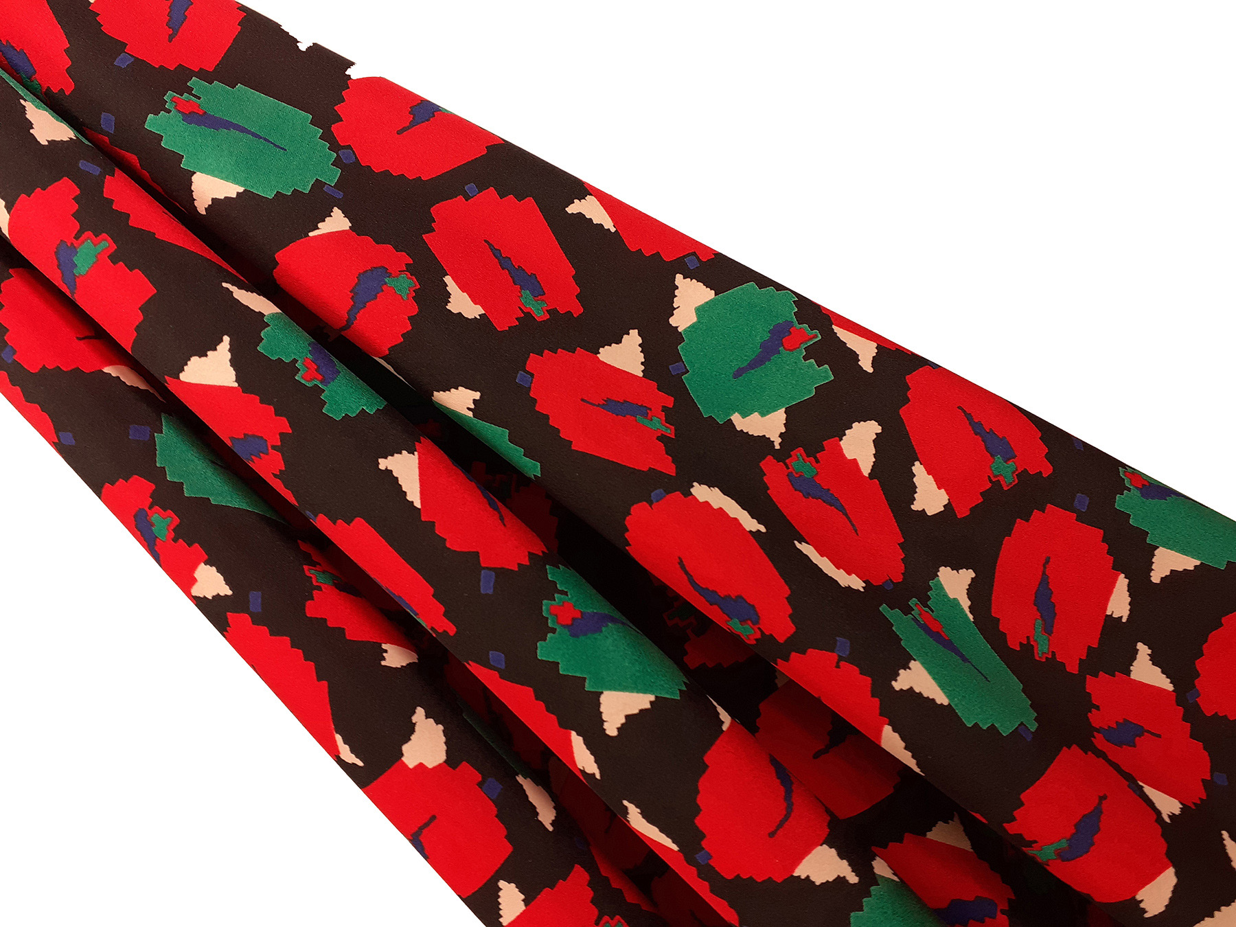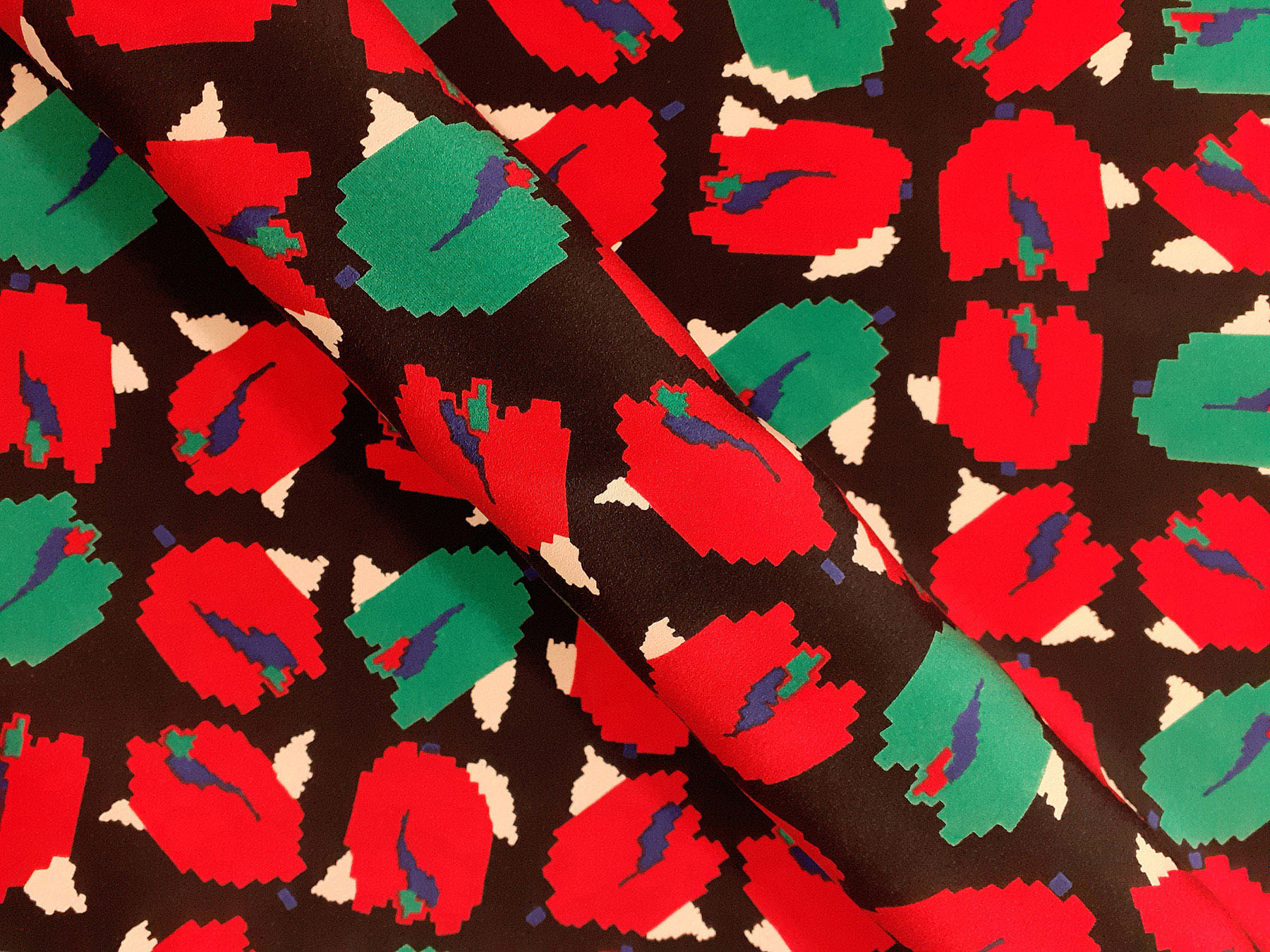 Crepe de Chine in seta fantasia geometrica su fondo nero