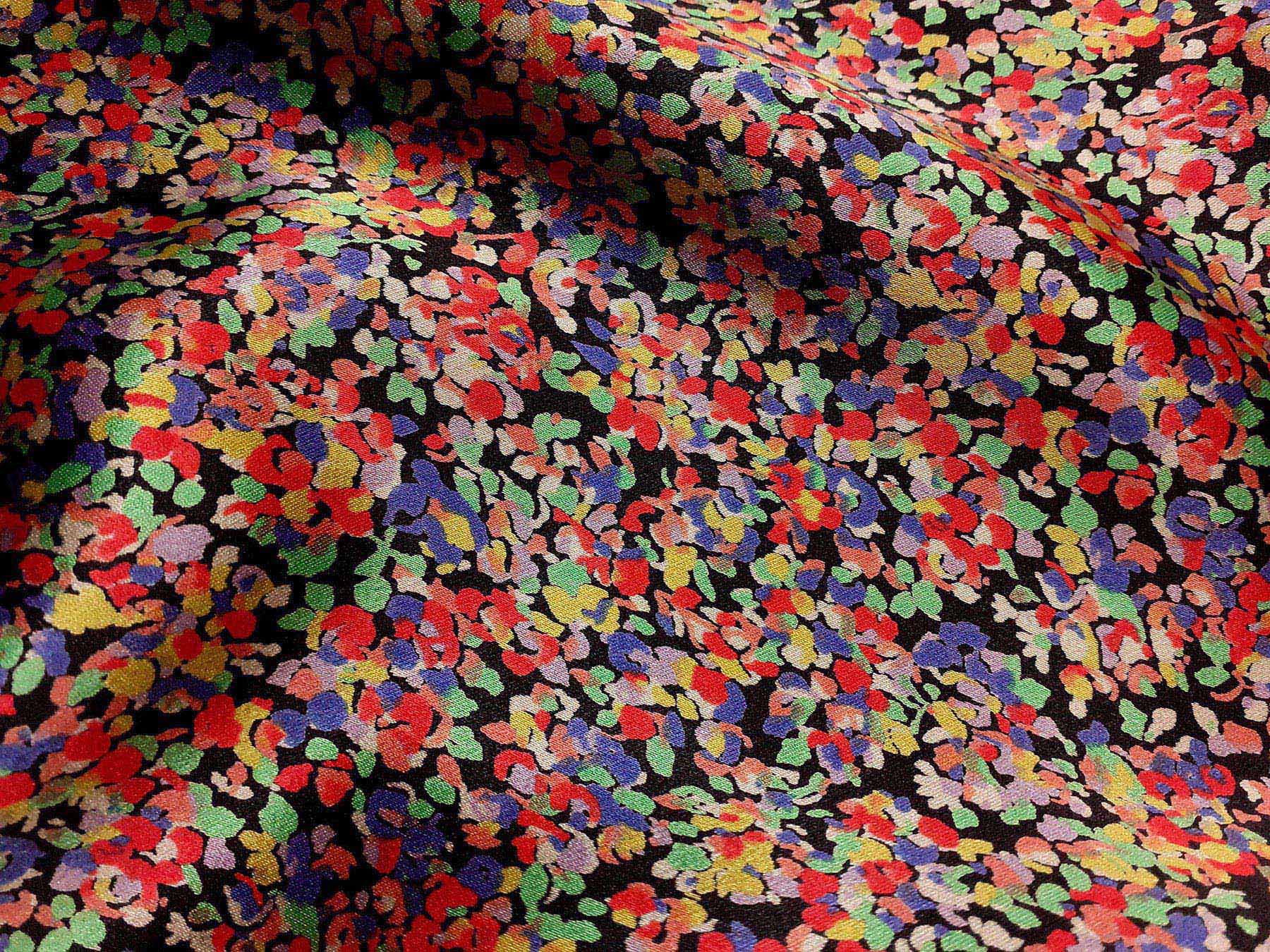 Raso di seta fantasia a mosaico fondo nero