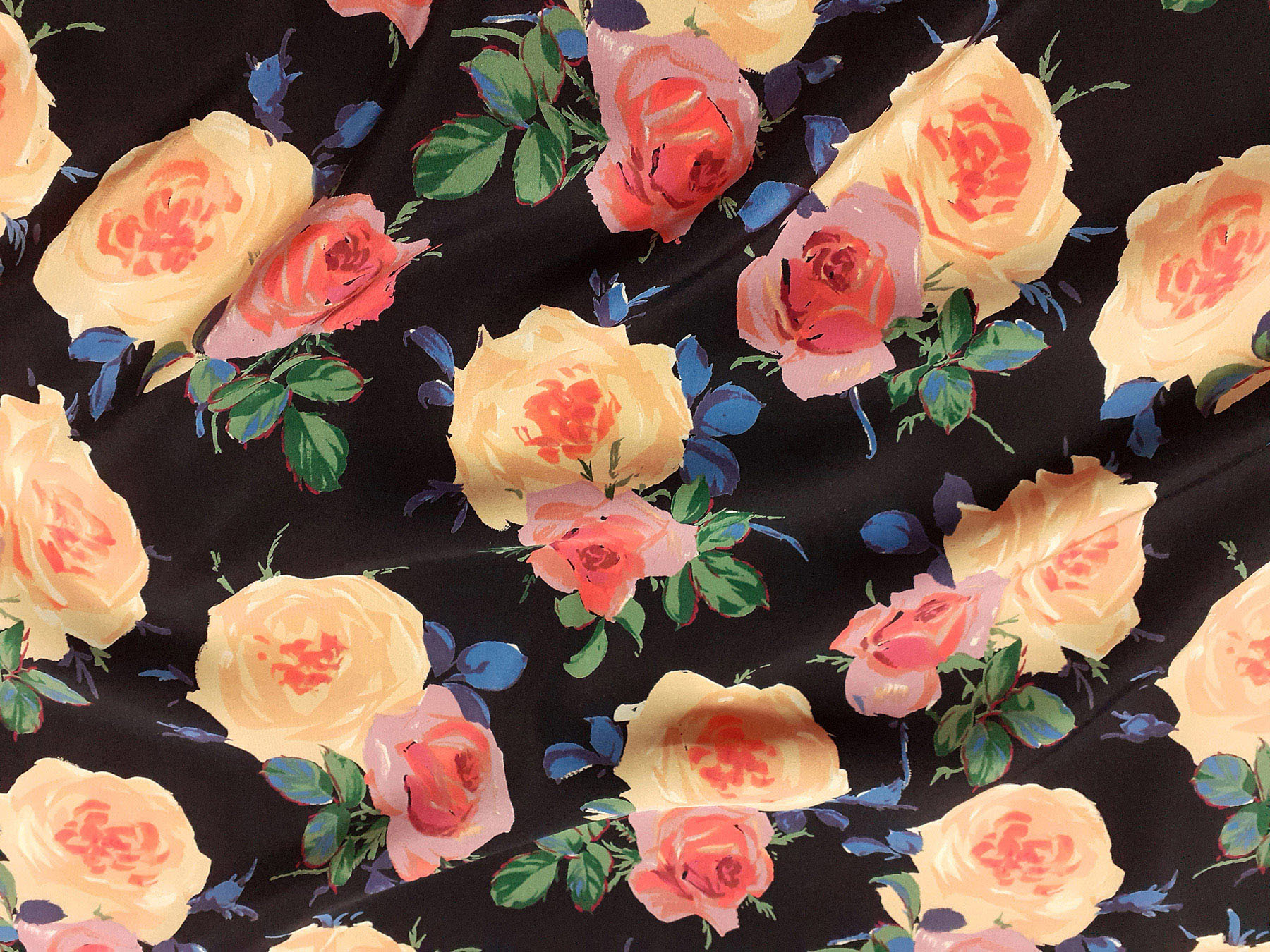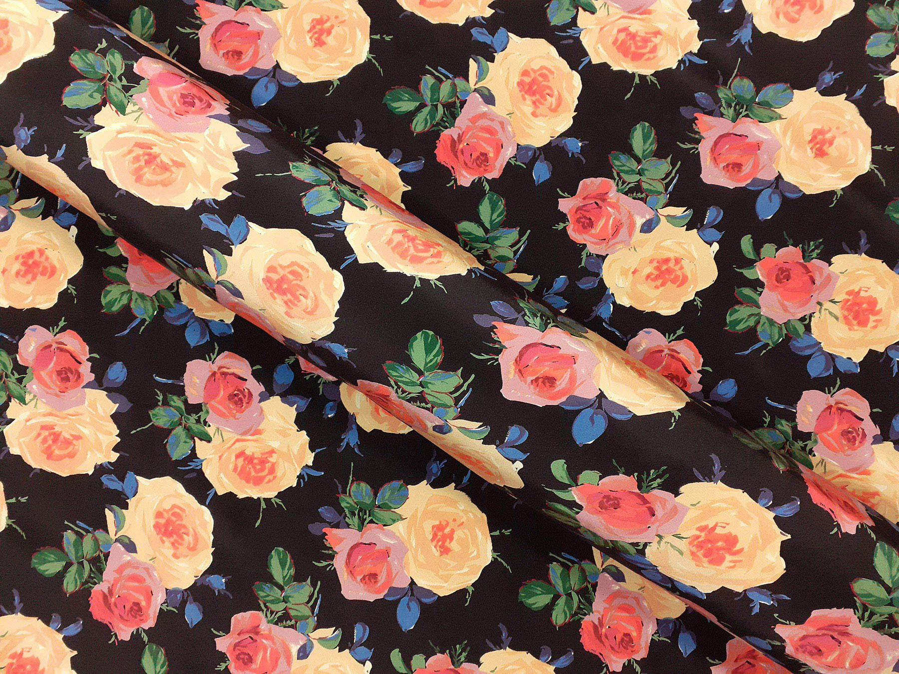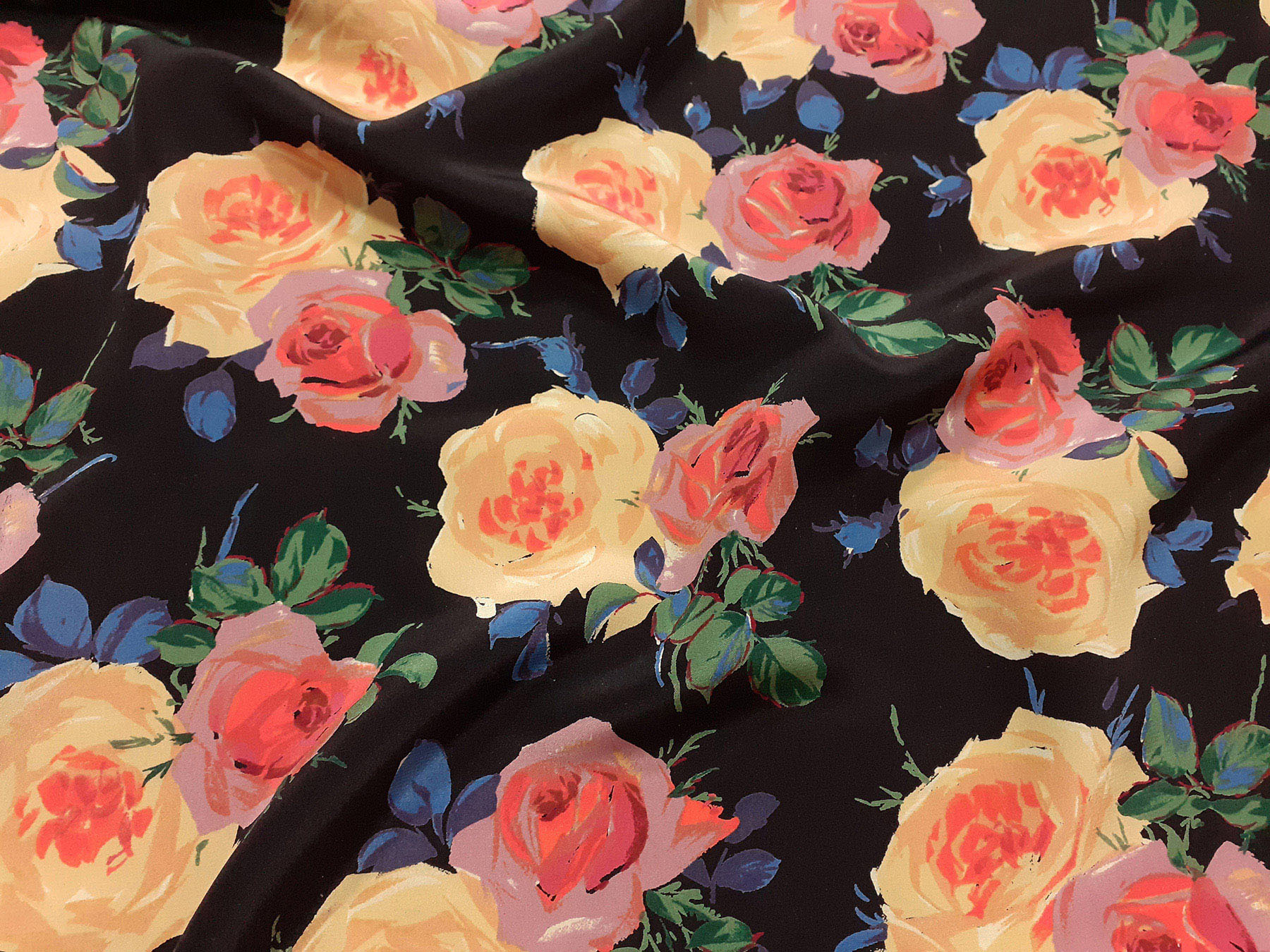 Crepe de Chine in seta fantasia floreale su fondo nero