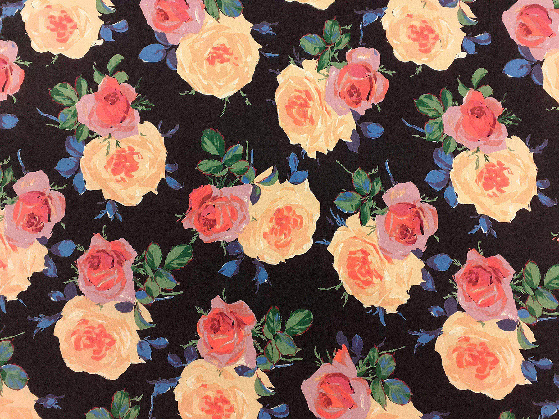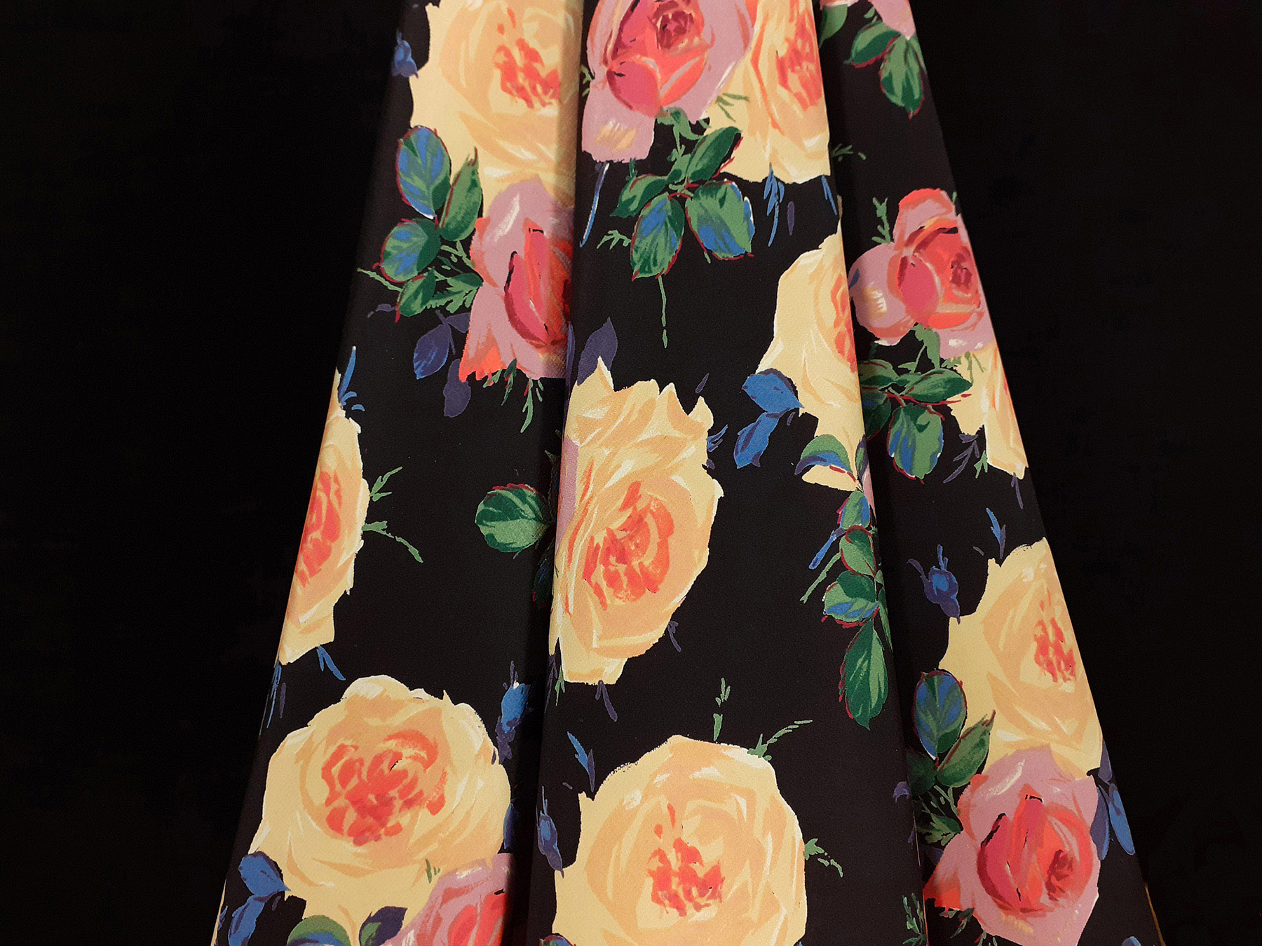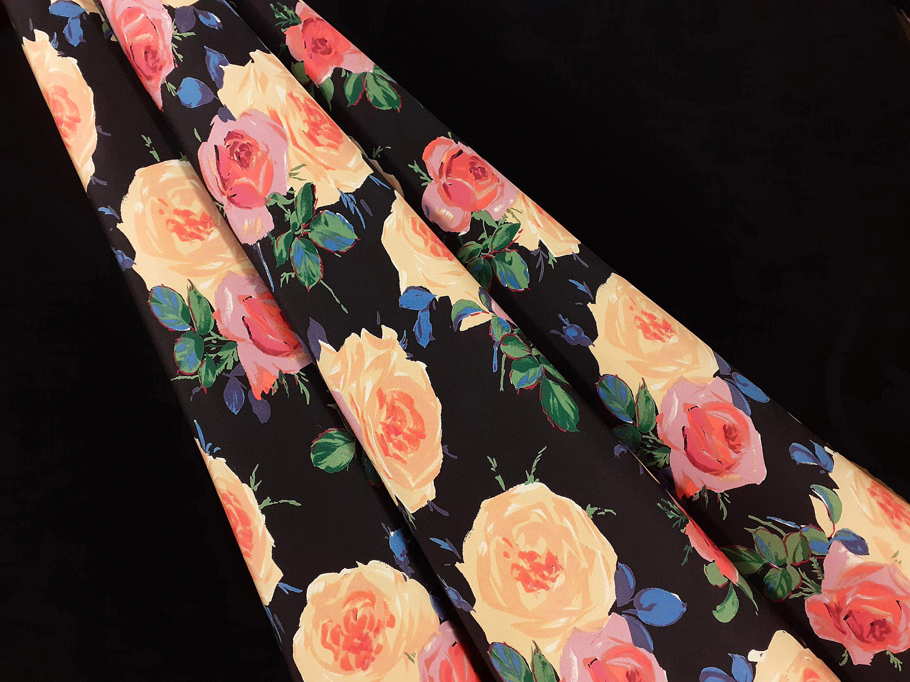 Crepe de Chine in seta fantasia floreale su fondo nero