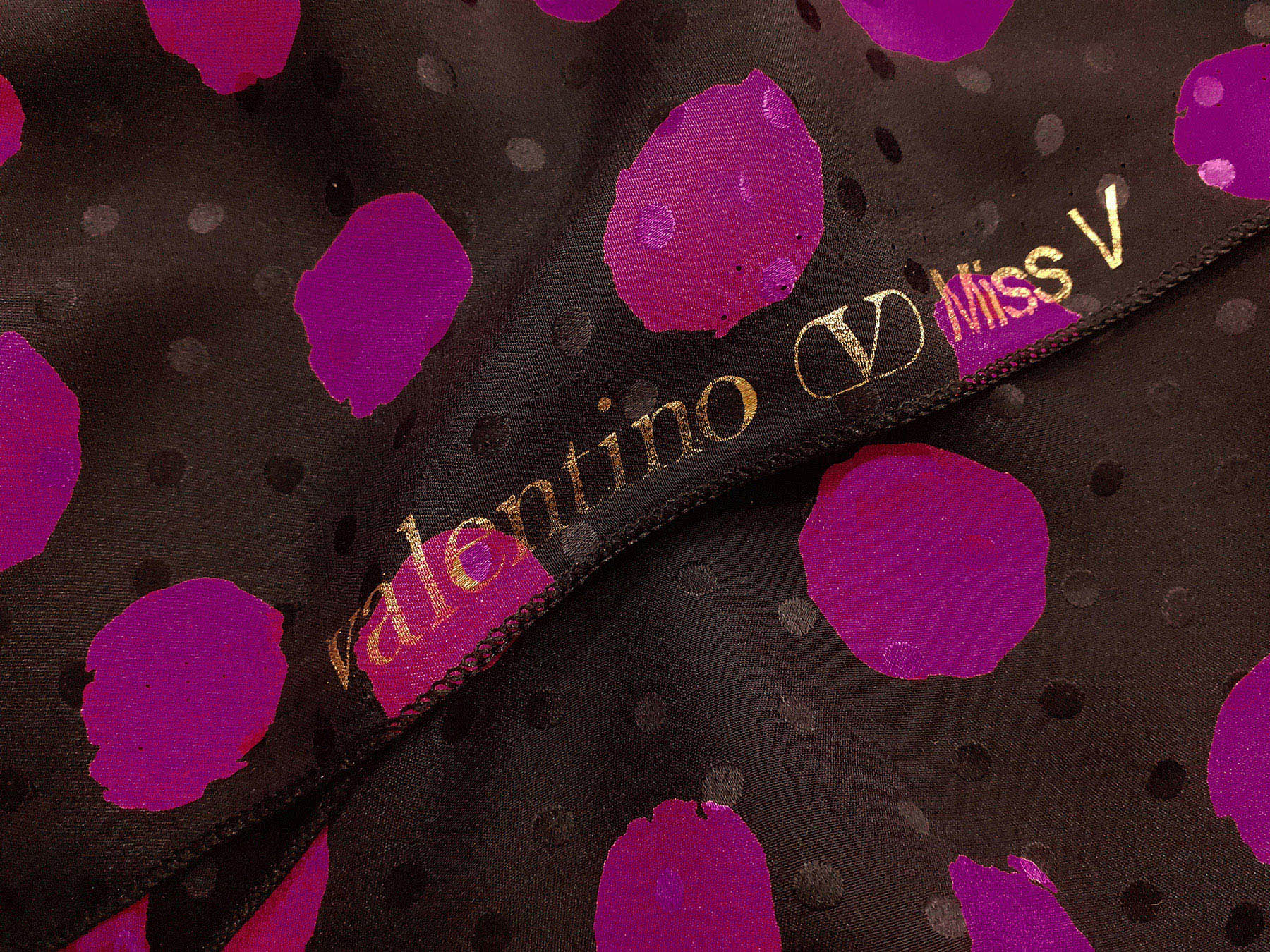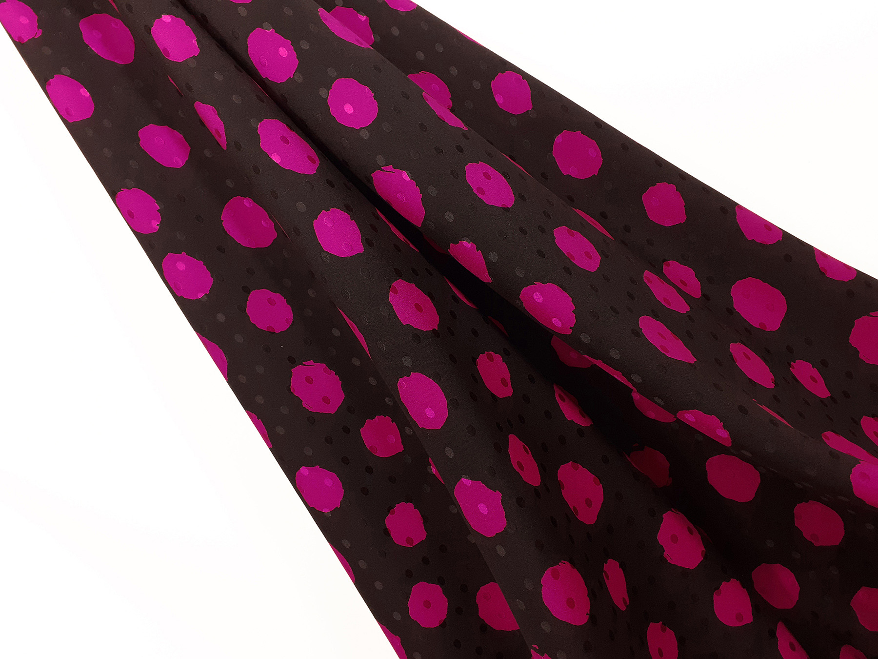 Seta jacquard disegno astratto fucsia su fondo nero. Valentino Miss V