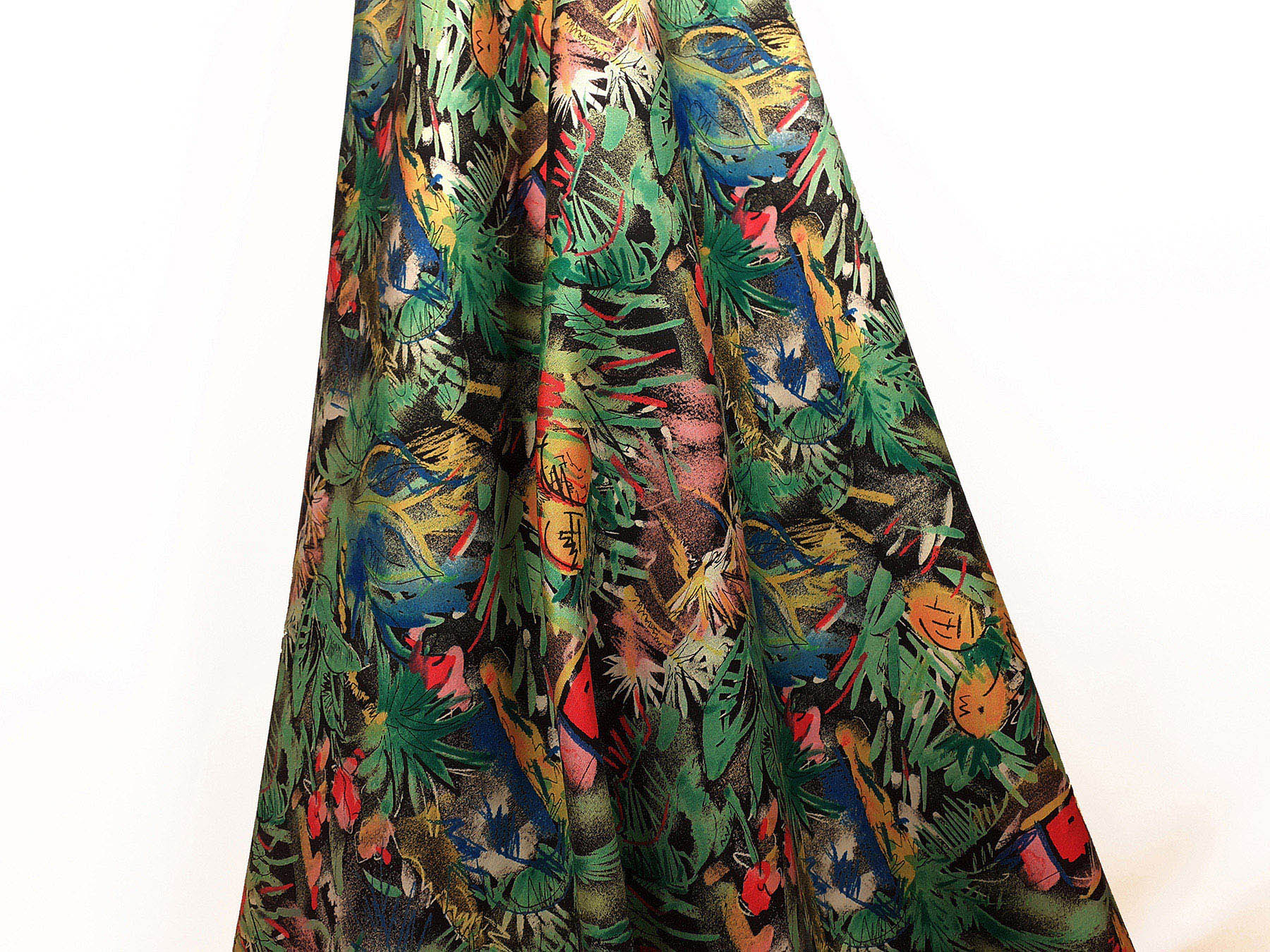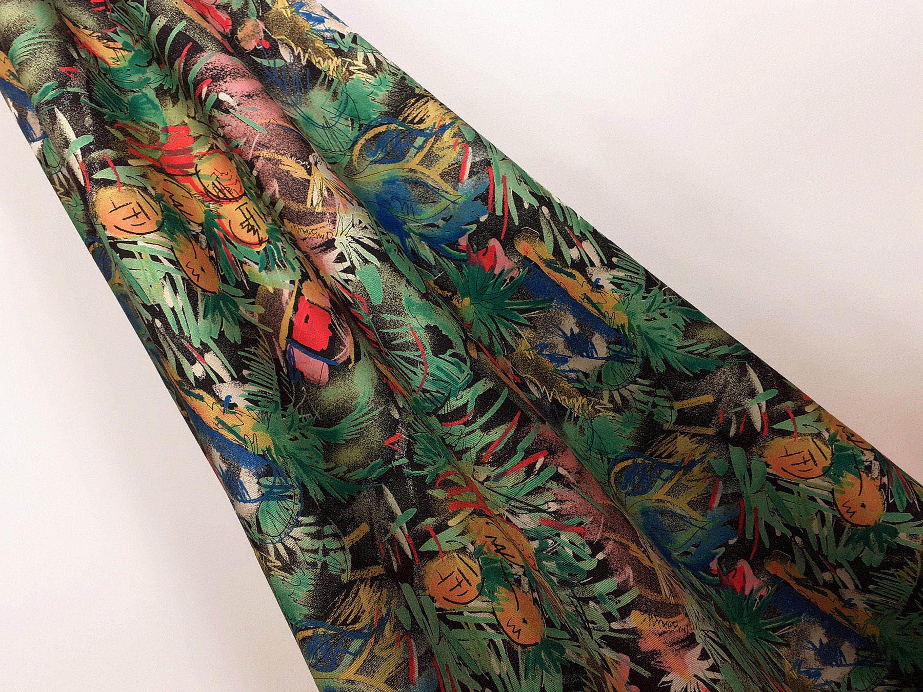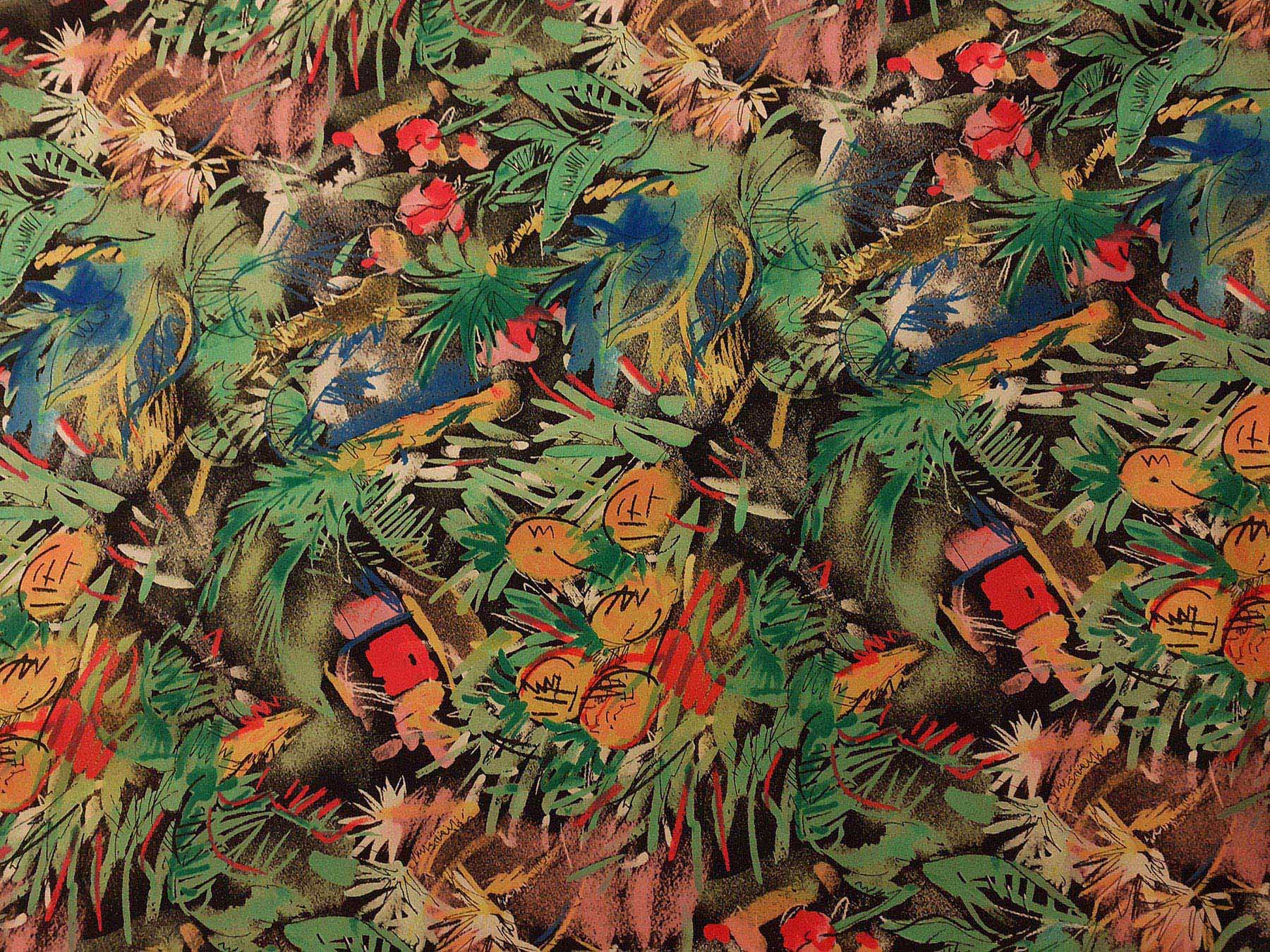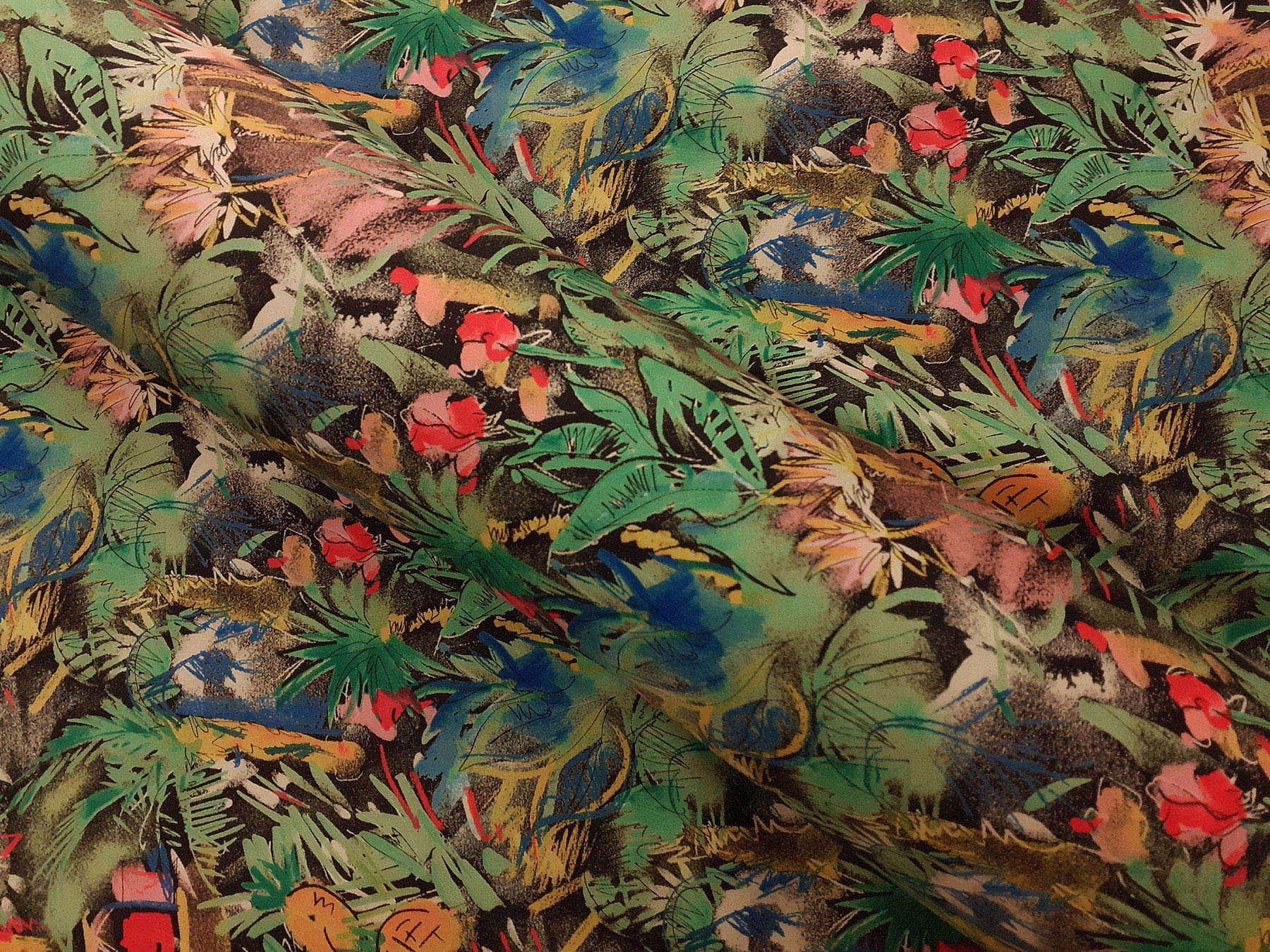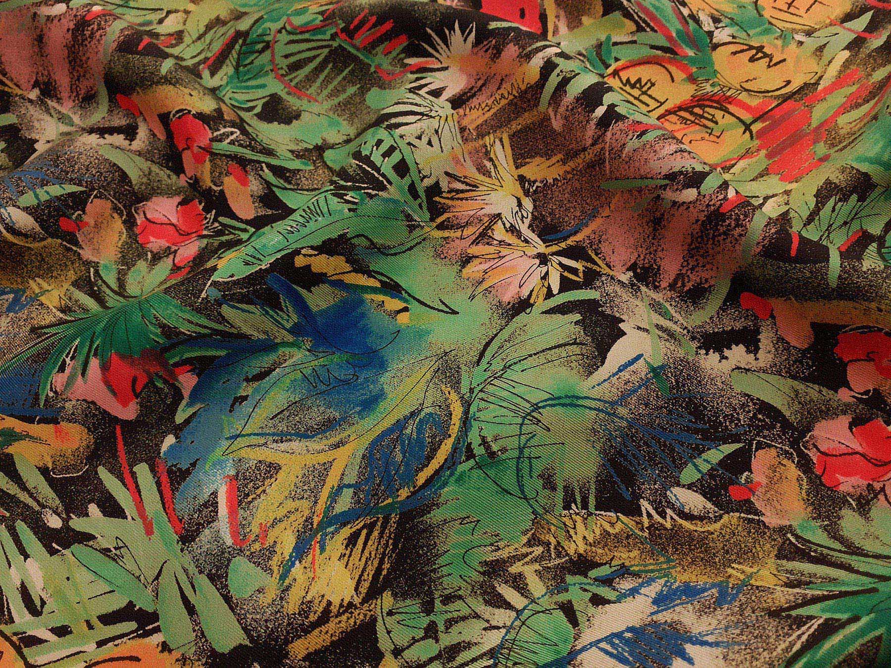 Twill in seta fantasia giungla su fondo nero