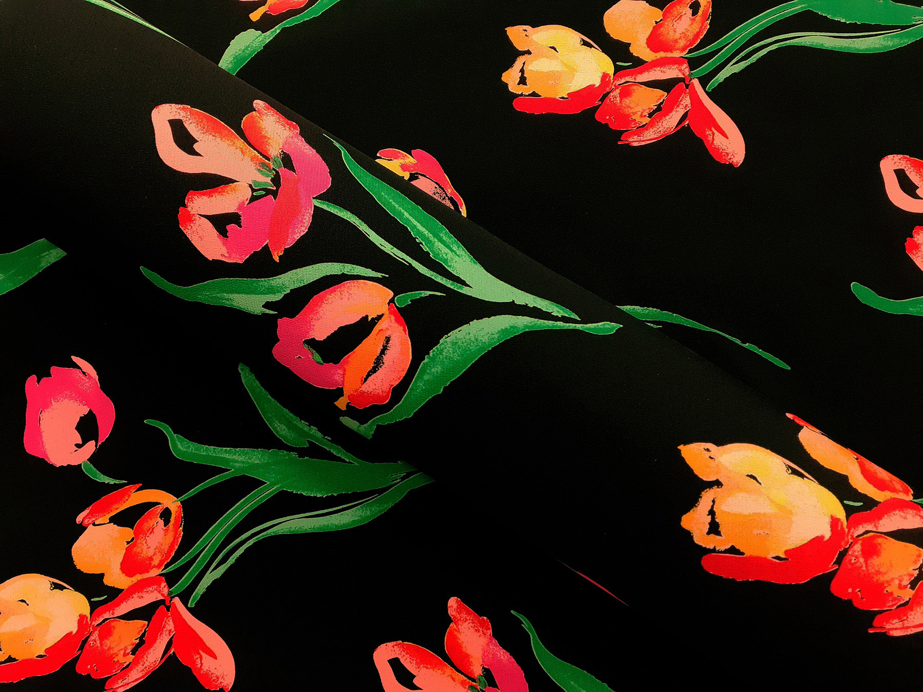 Crepe de Chine in seta 4 capi fantasia floreale su fondo nero