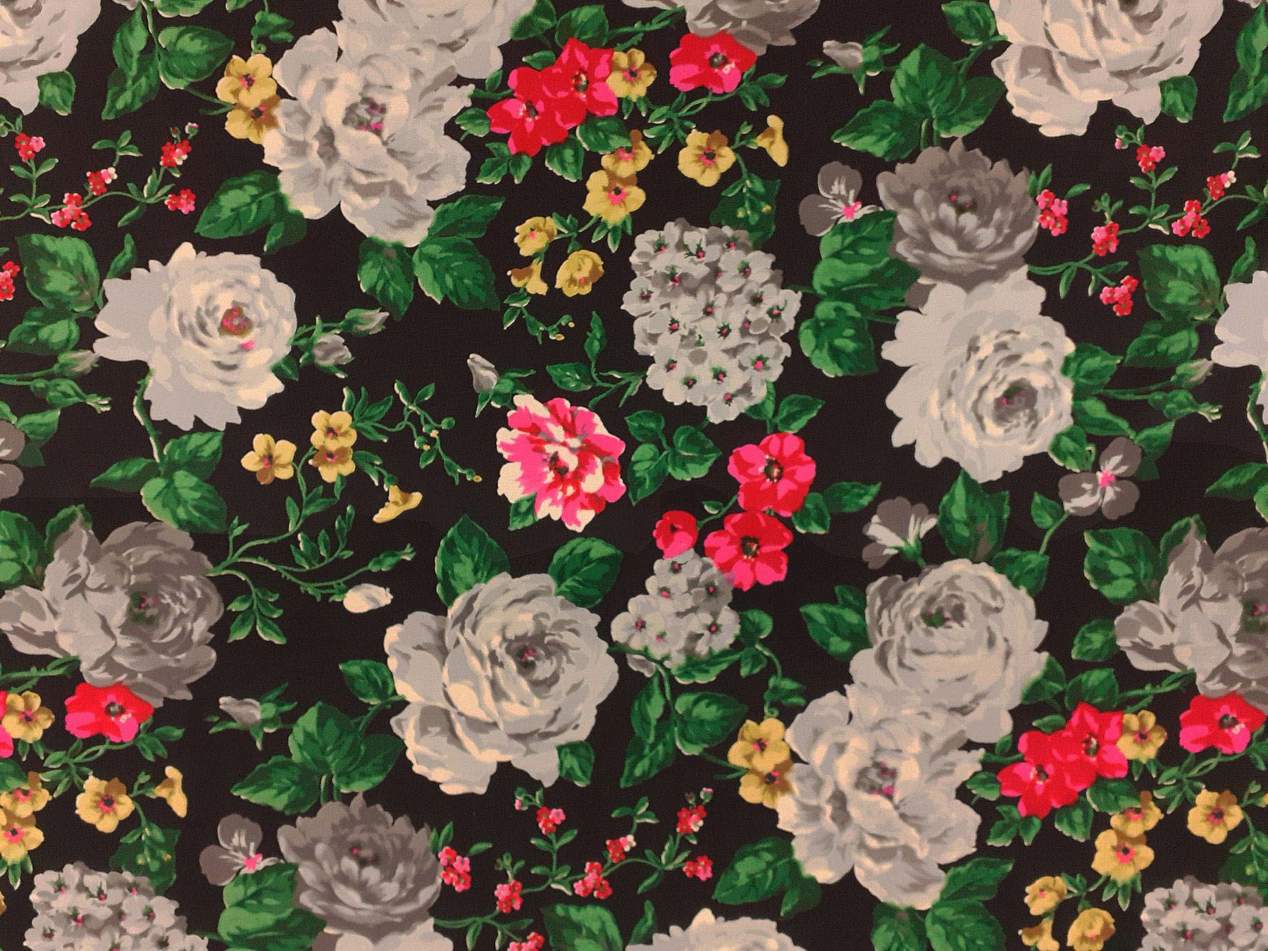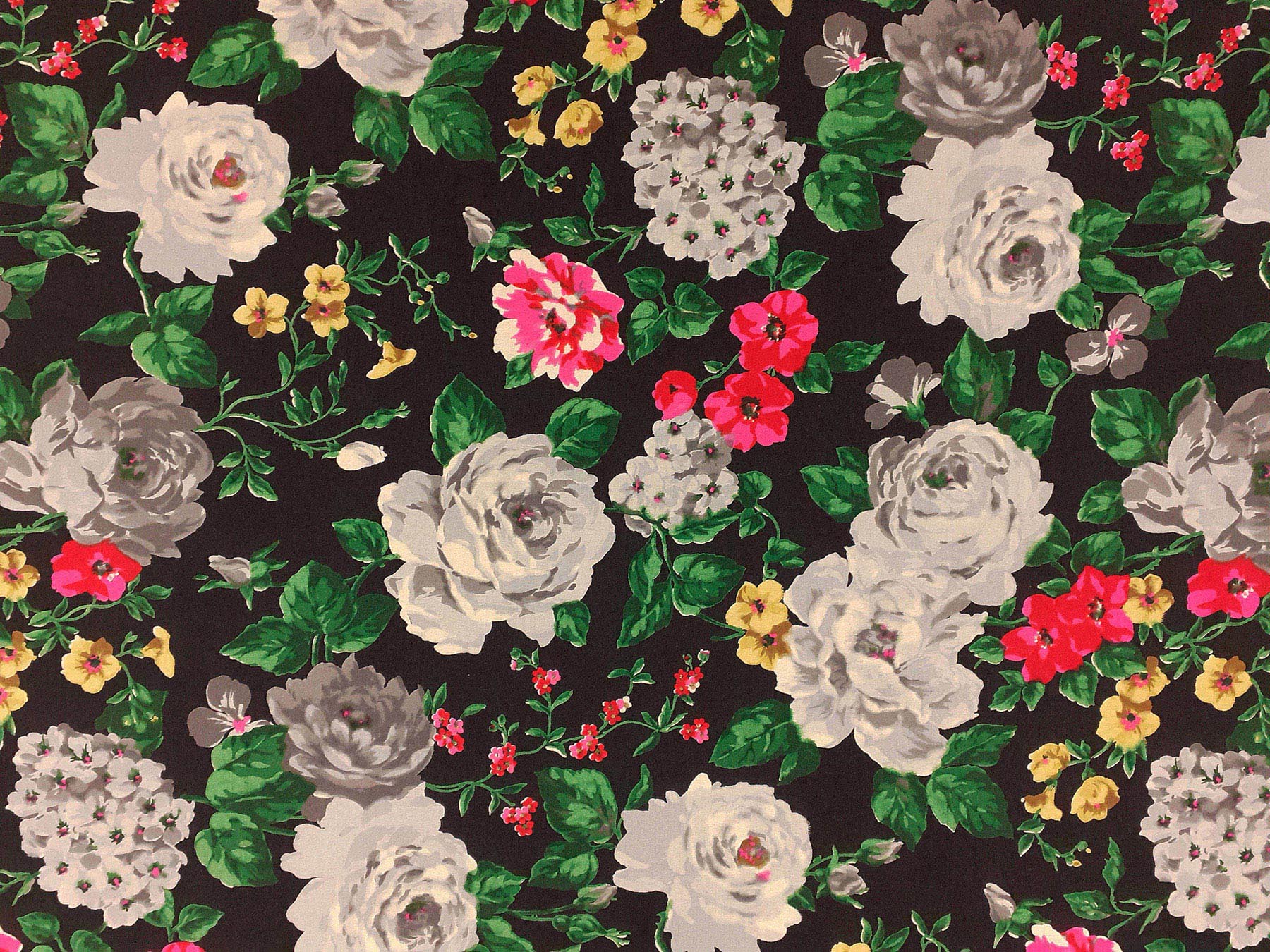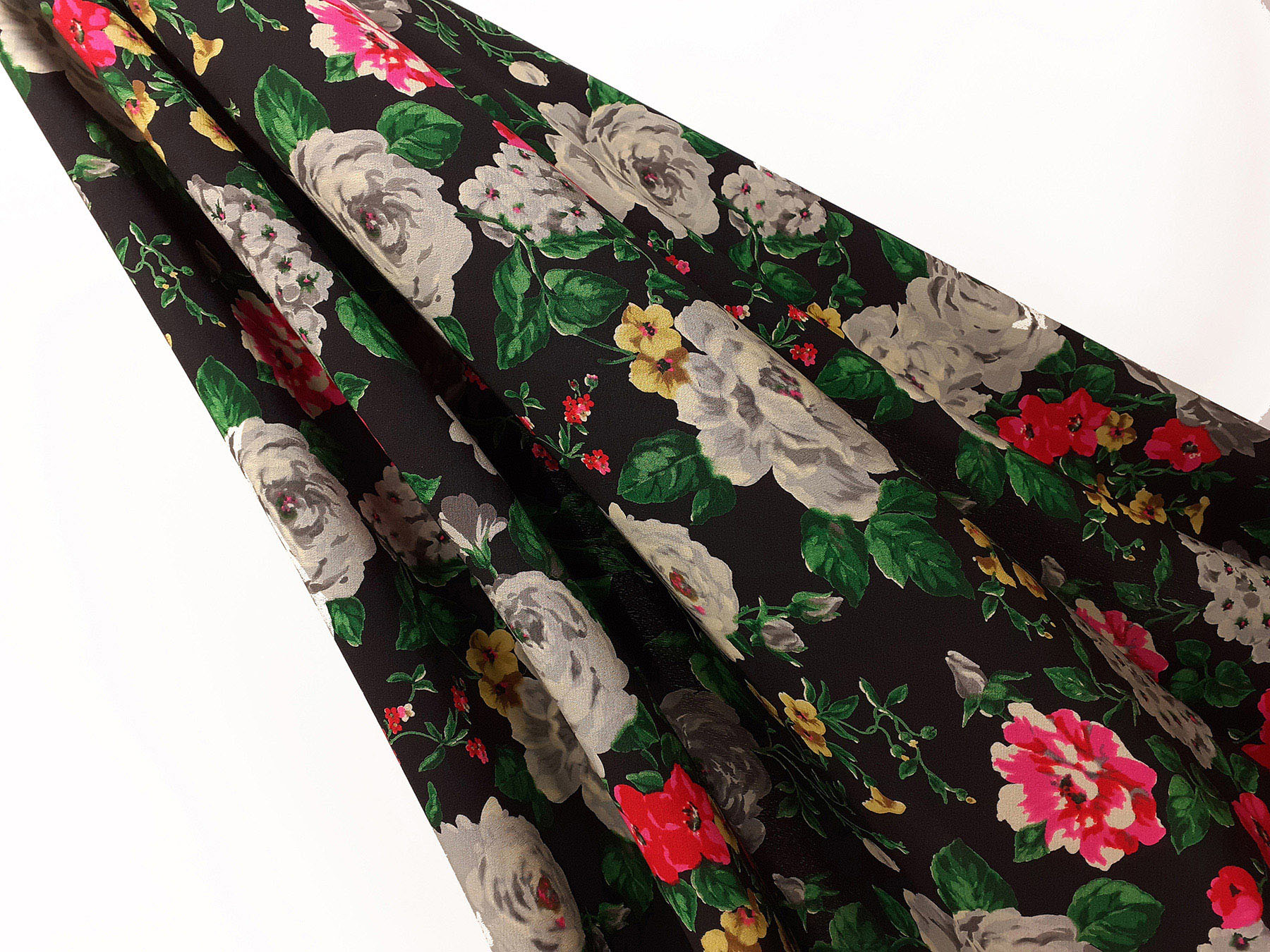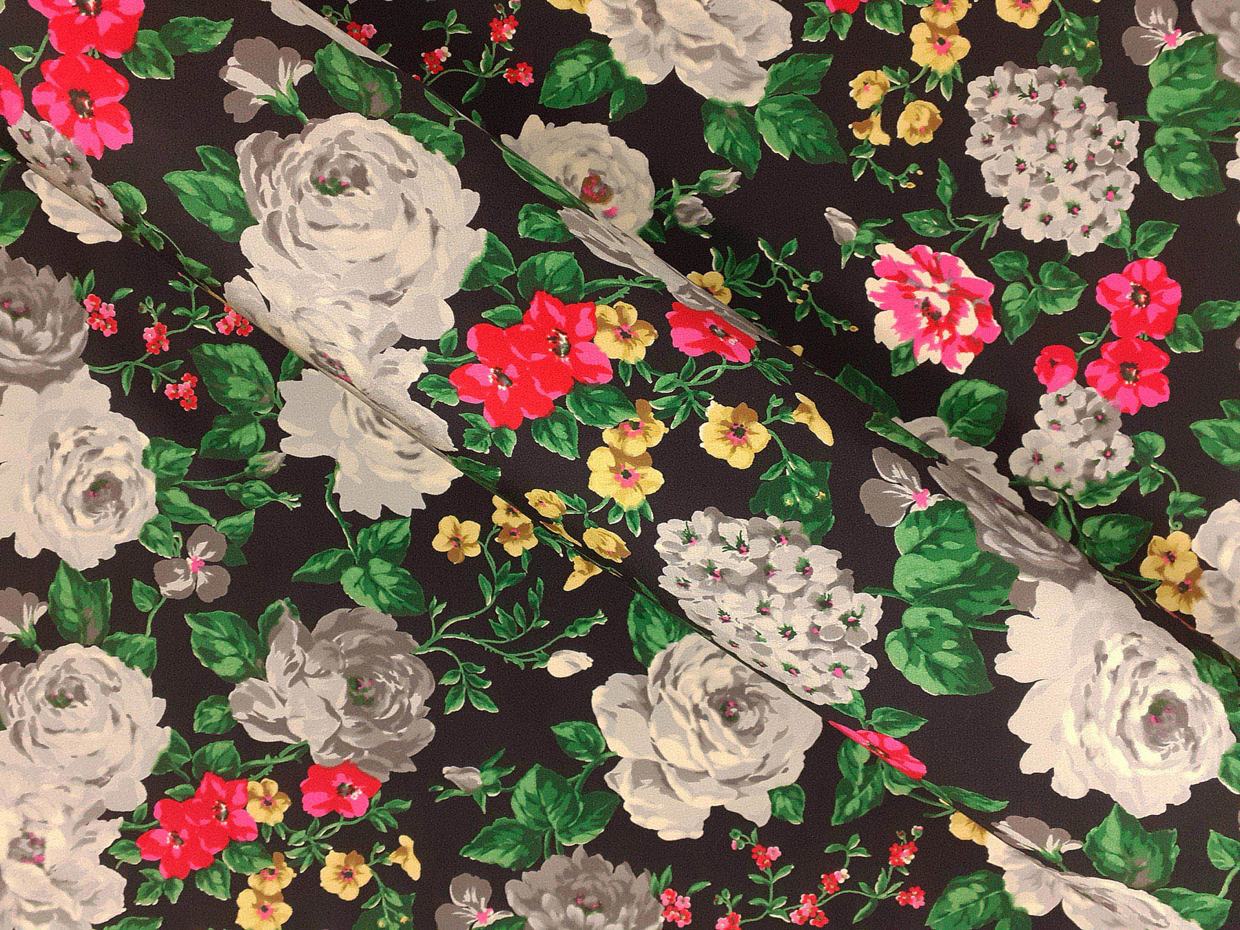 Crepe de Chine 4 capi in seta fantasia floreale su fondo nero