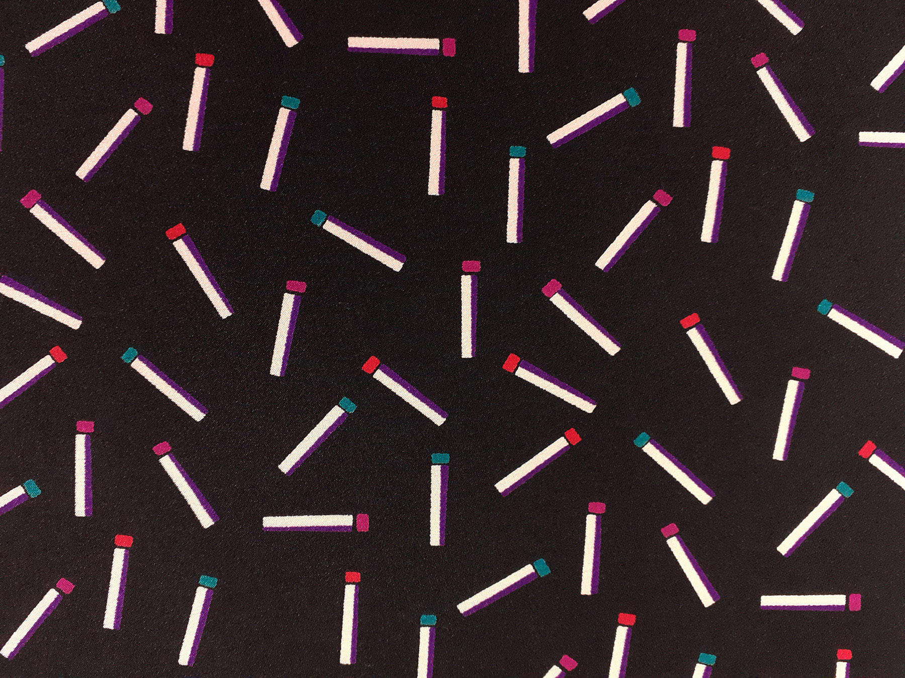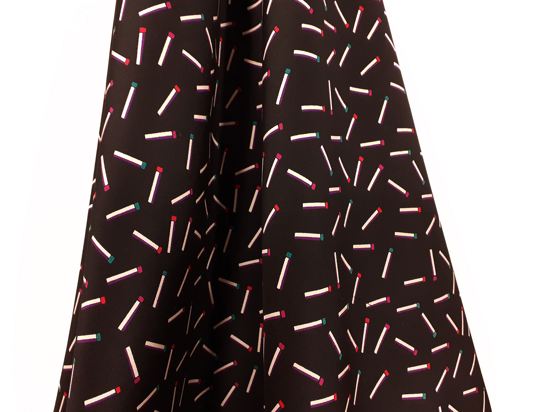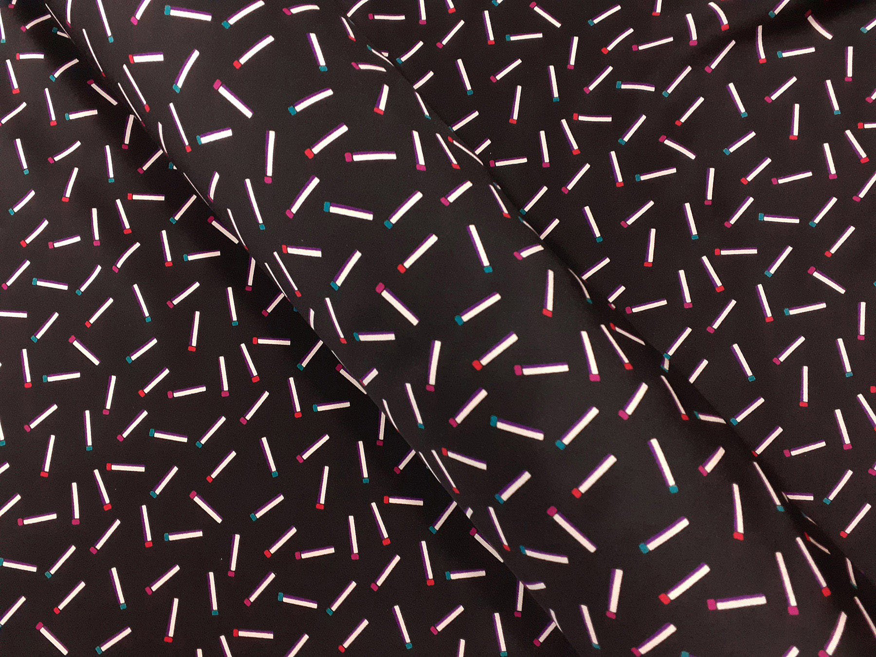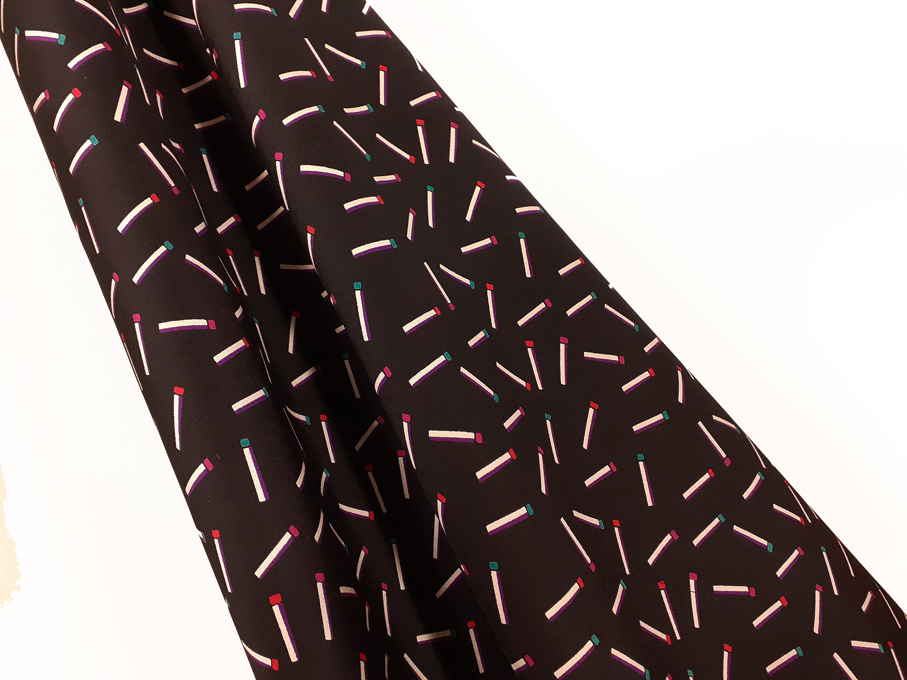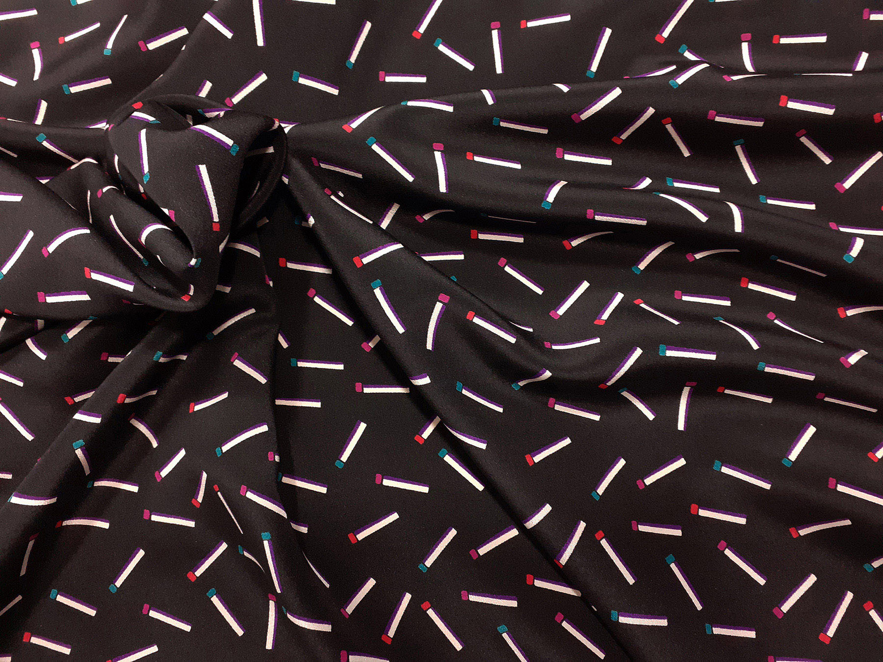 Crepe de Chine in seta fantasia geometrica su fondo nero