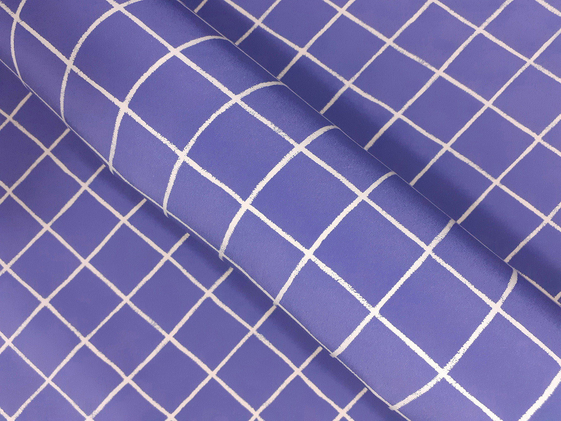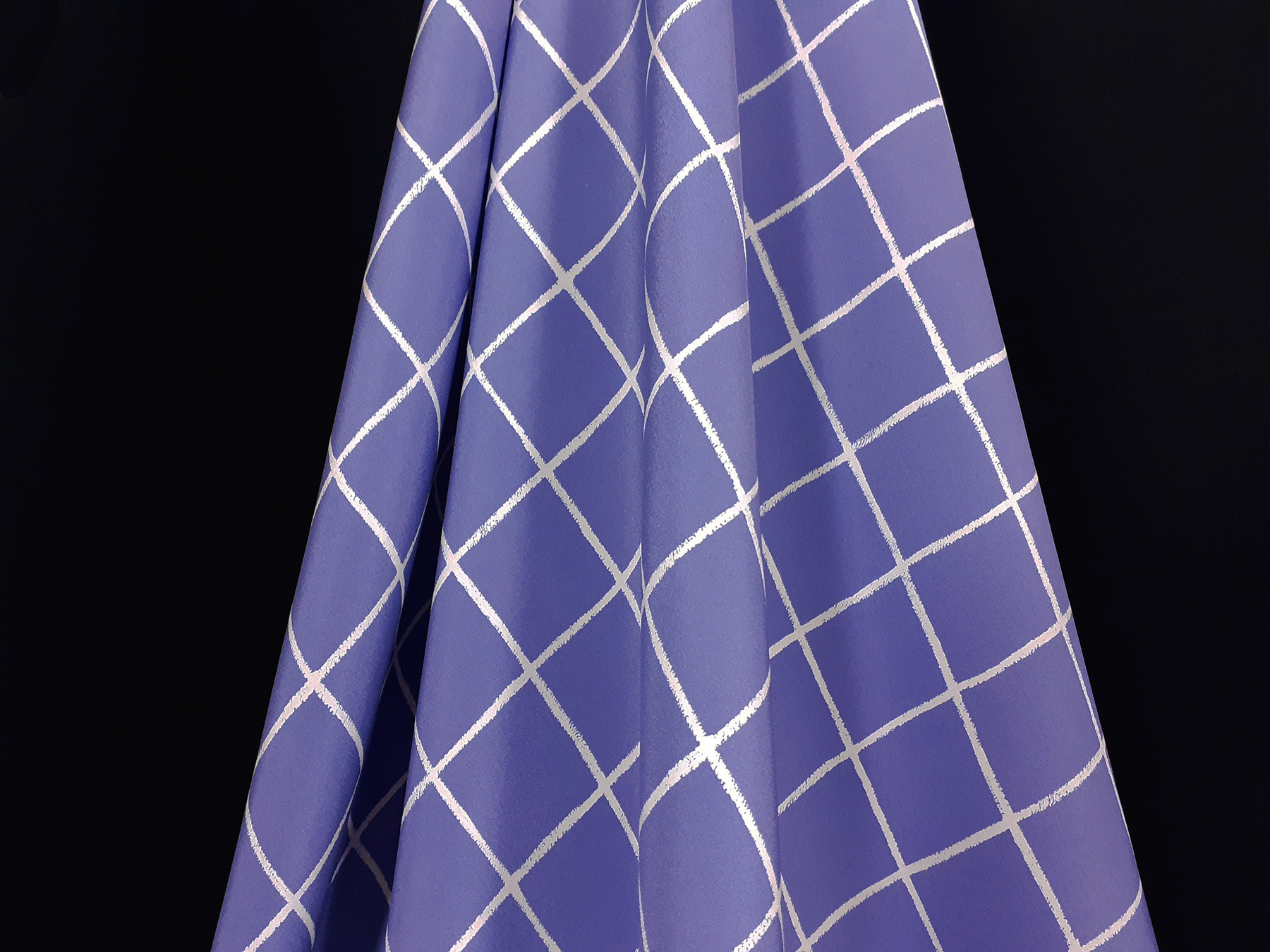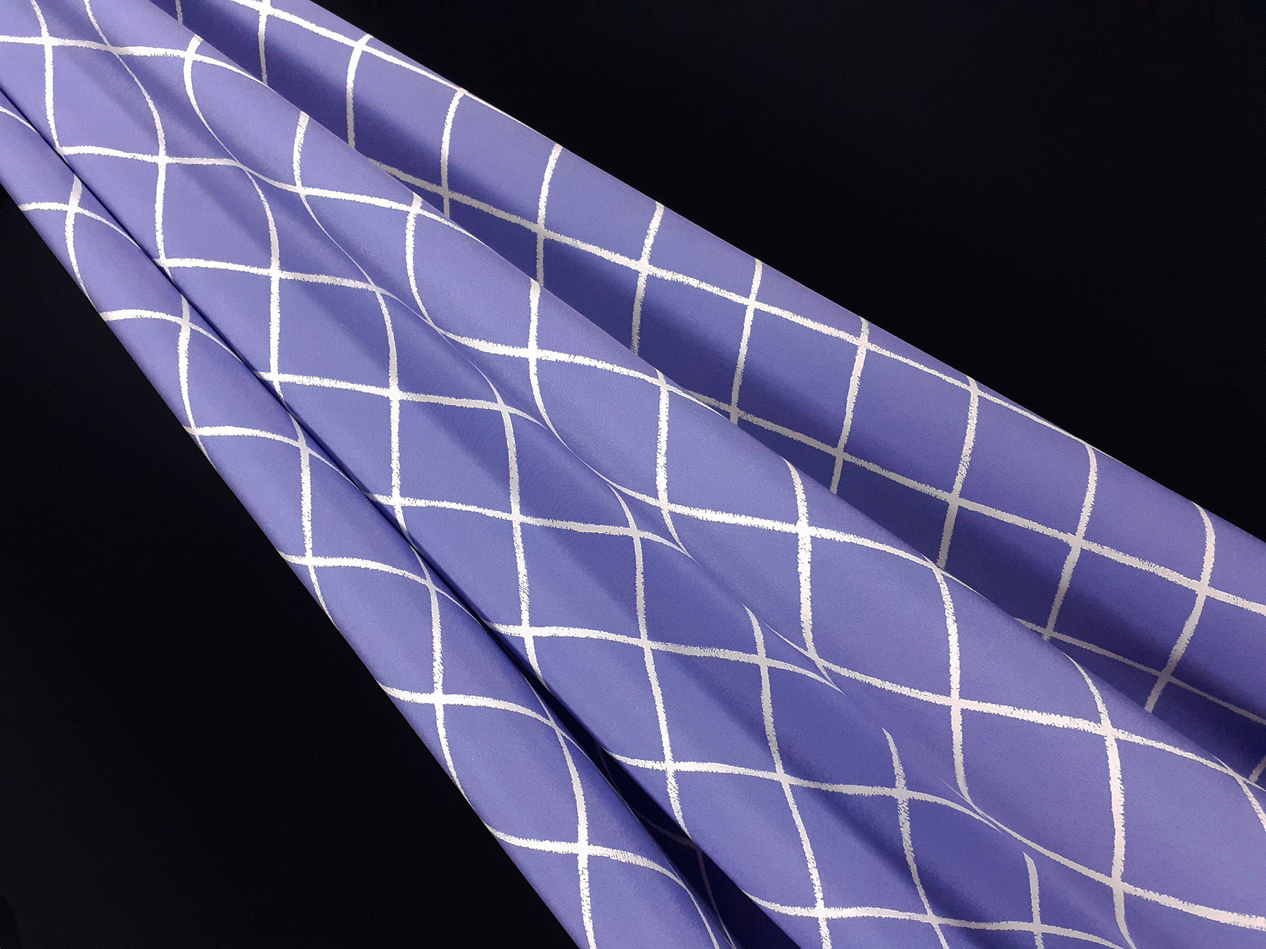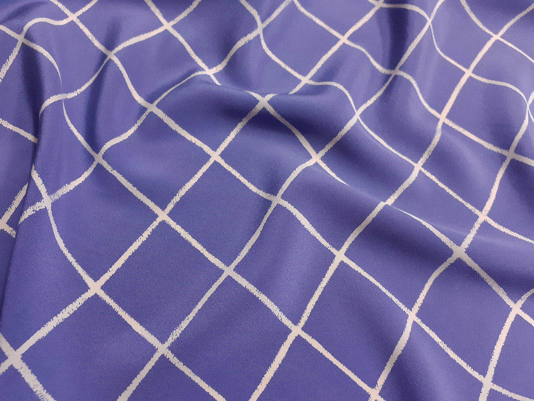Crepe de Chine in seta fantasia geometrica su fondo pervinca