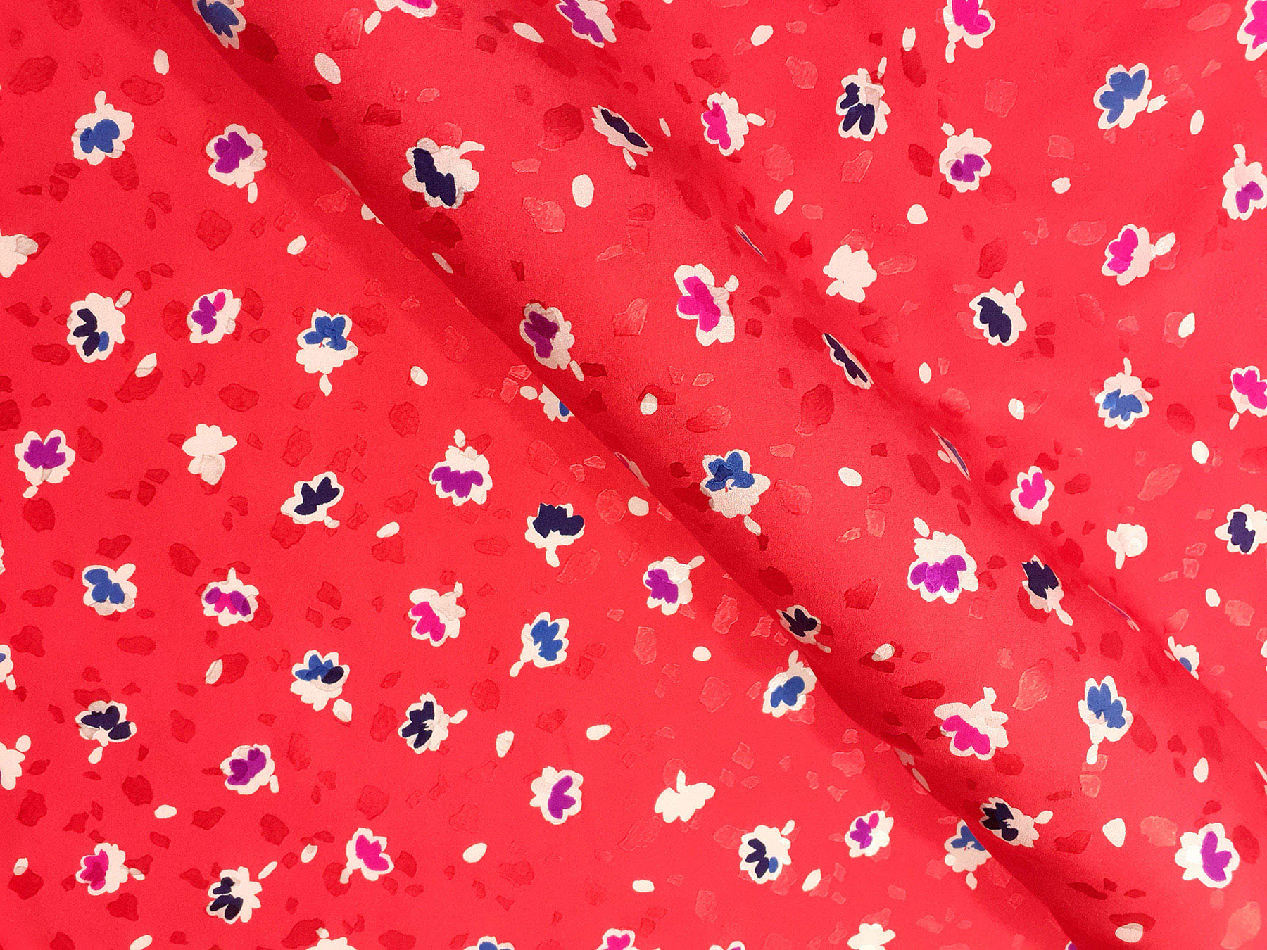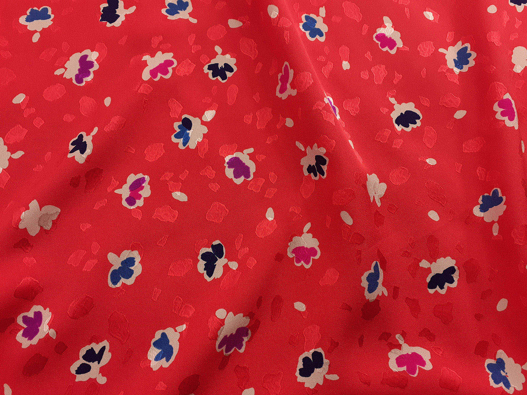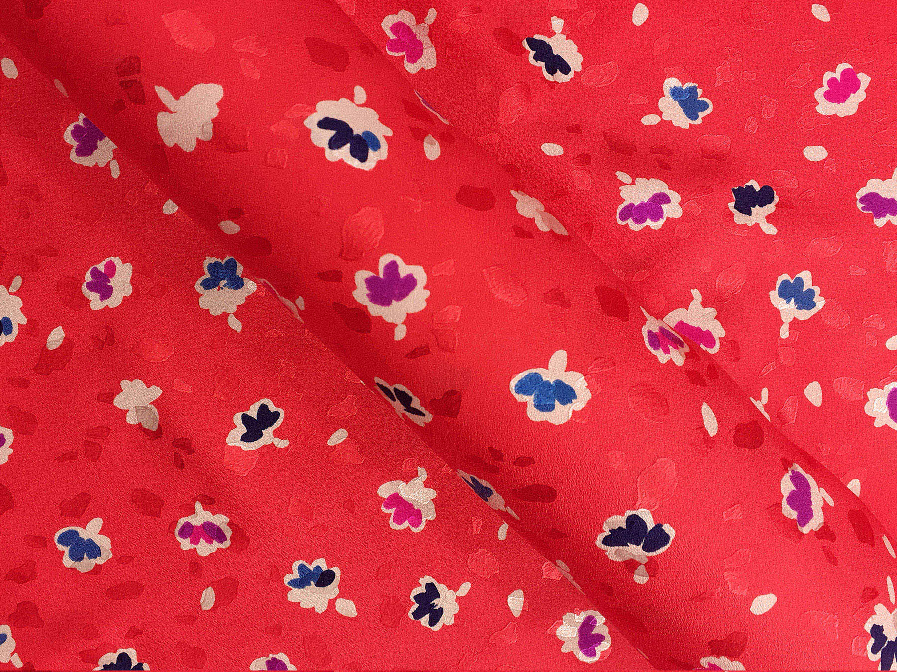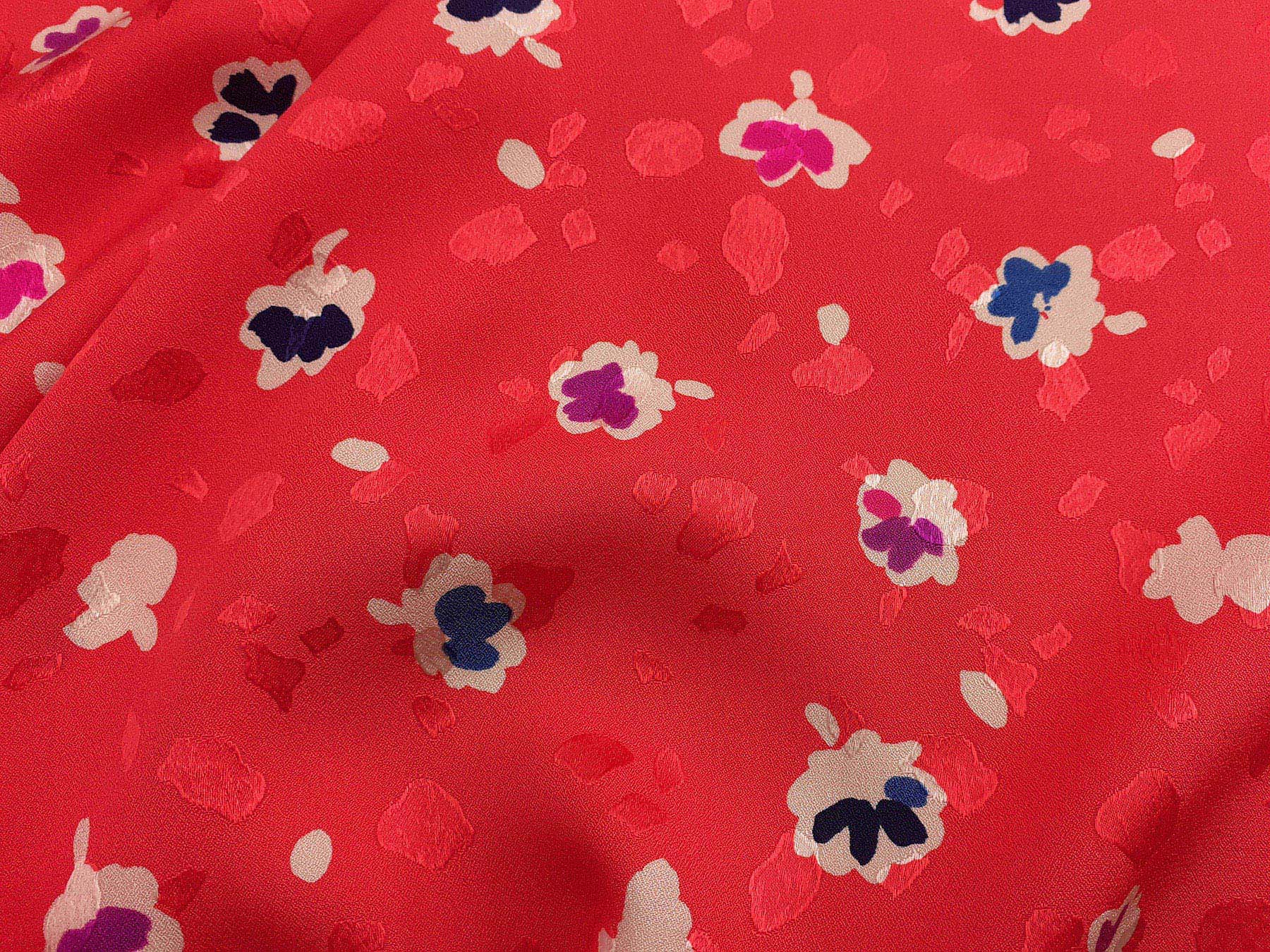 In questo tessuto di seta pura, prodotto a Como, la lavorazione jacquard con il contrasto fra lucido e opaco, crea un piacevole effetto di tridimensionalità. Perfetto per la realizzazione di abiti ampi e sinuosi, grazie alla sua morbidezza e caduta, può essere utilizzato anche per capi più lineari che mettono in evidenza la ricchezza e la particolarità di questo tipo di tessuto.