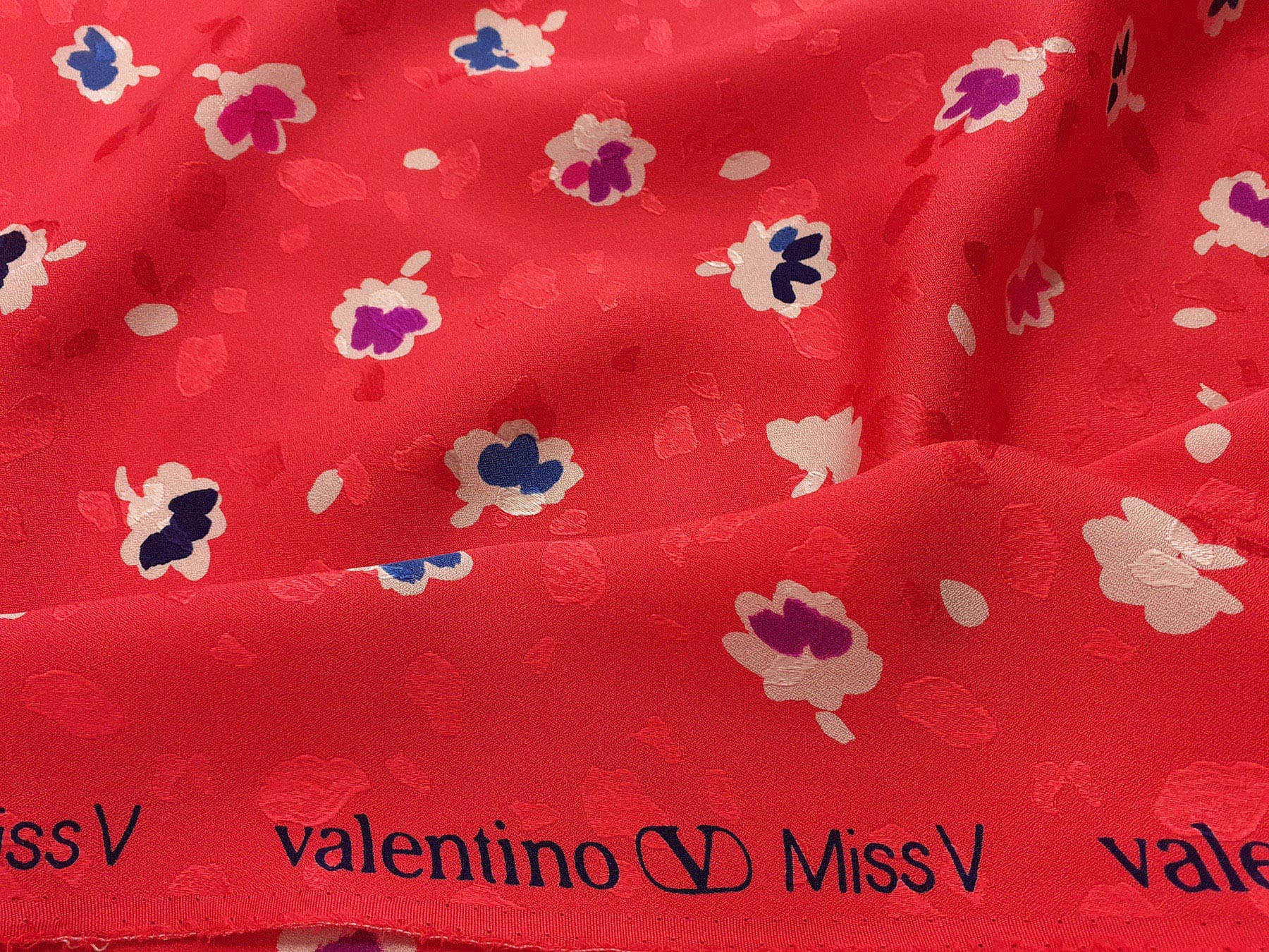 Seta jacquard fantasia floreale su fondo rosa corallo. Valentino Miss V
