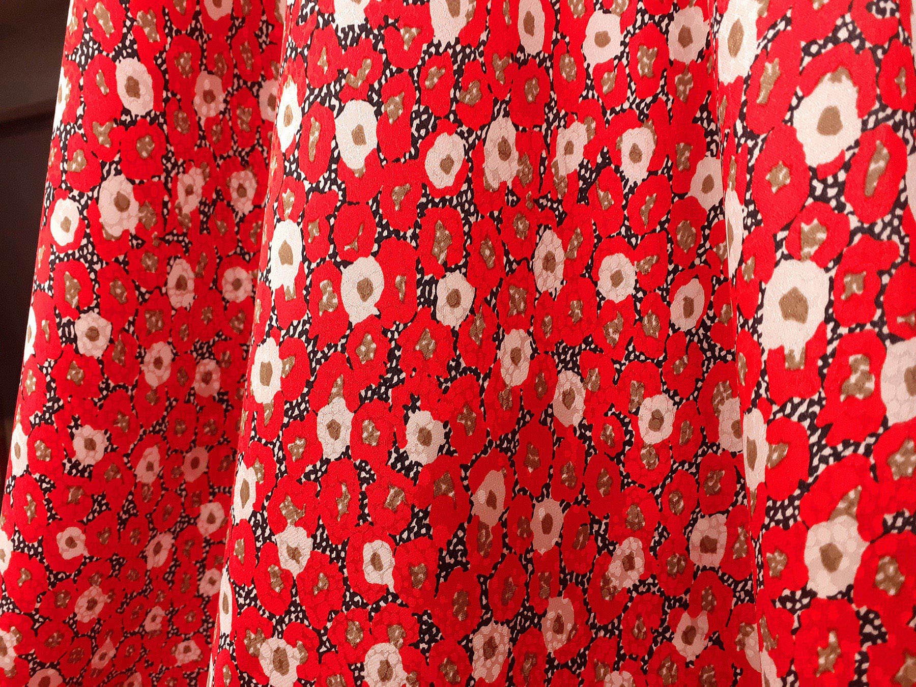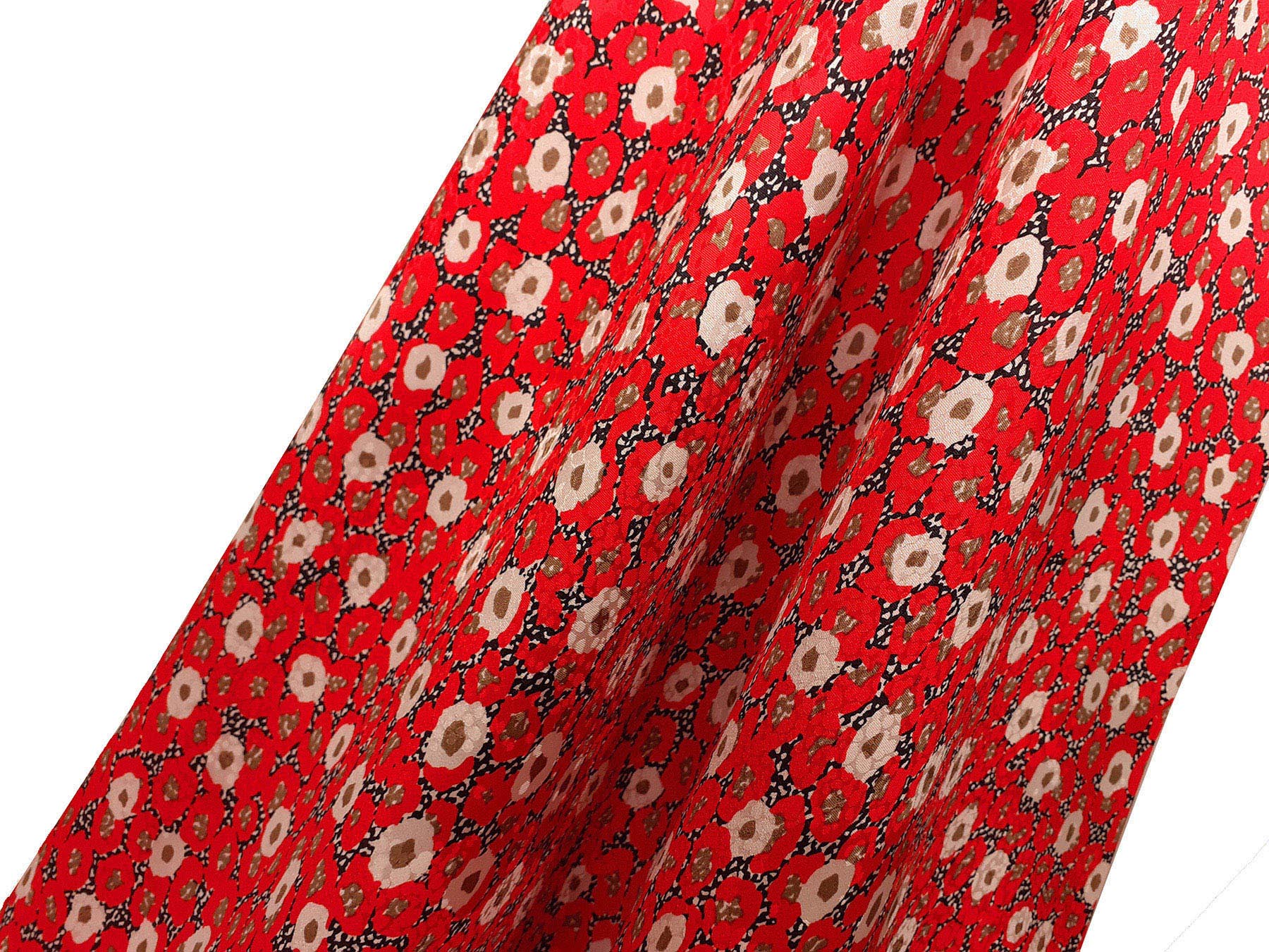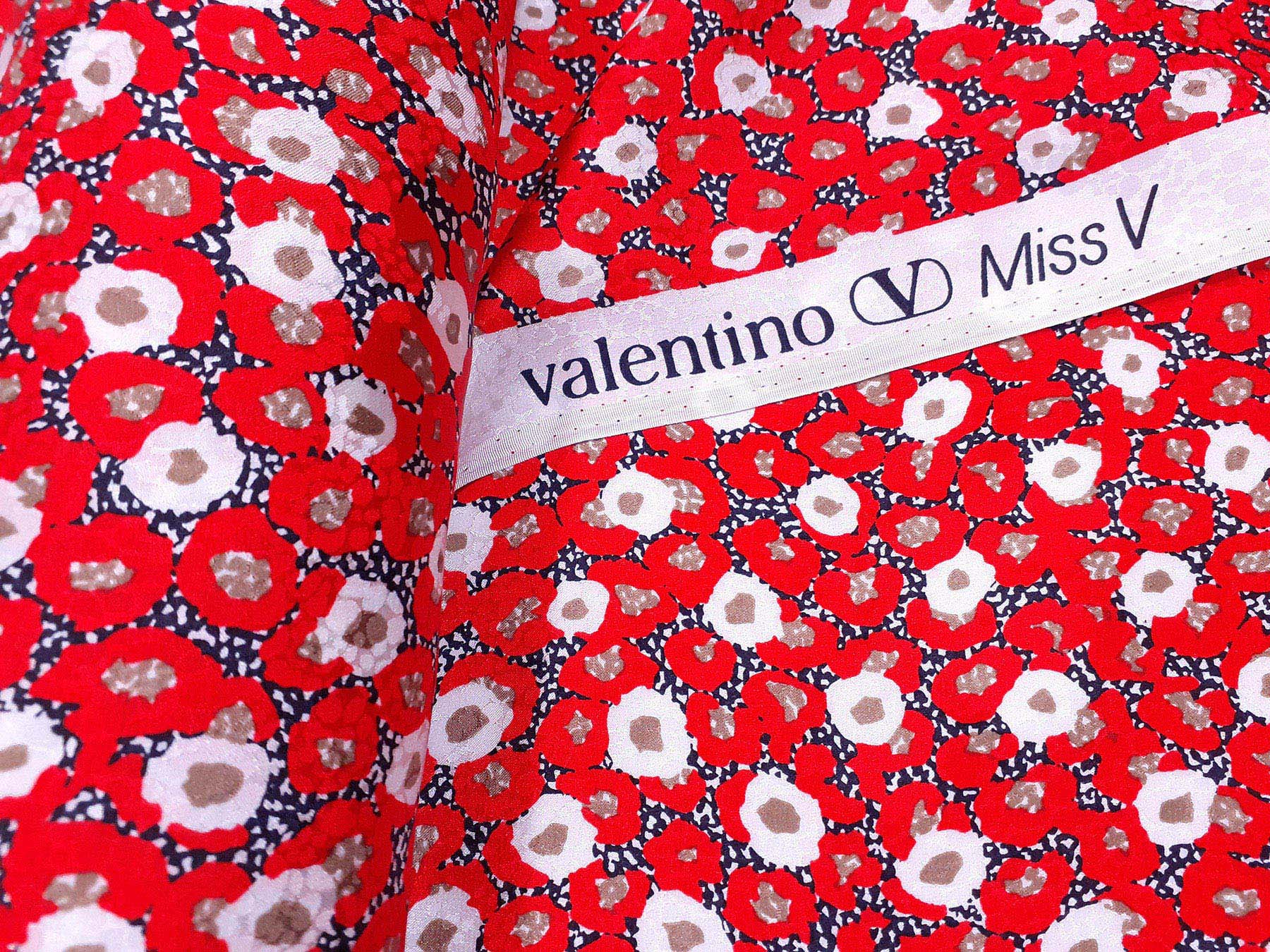 Seta jacquard fantasia floreale su fondo rosso. Valentino Miss V