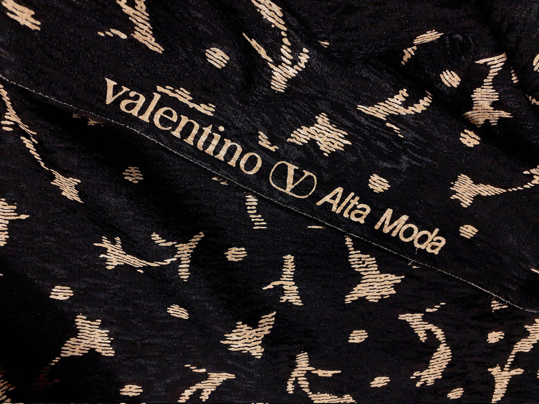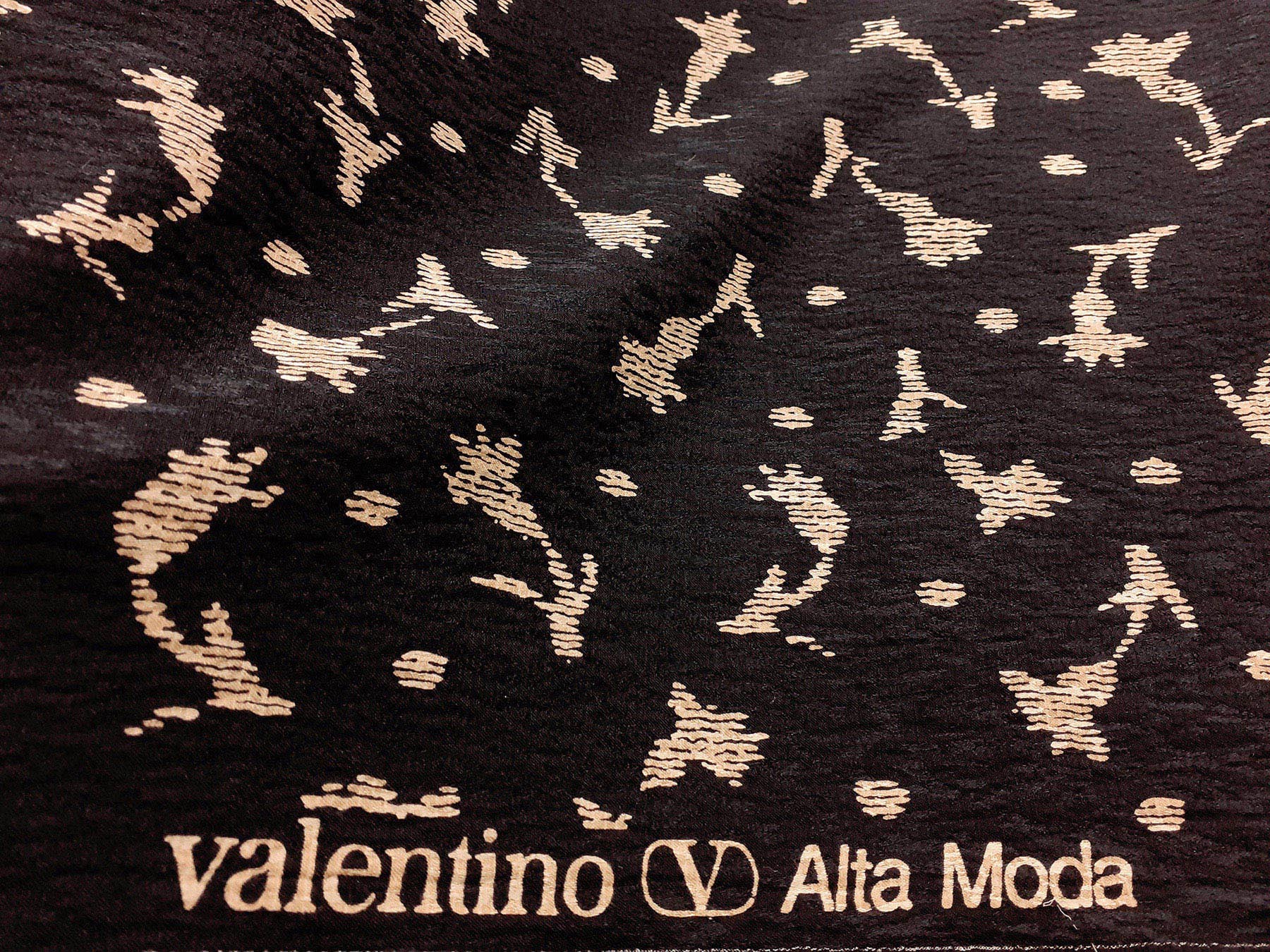 Seta jacquard fantasia floreale stilizzata su fondo nero. Valentino Alta Moda