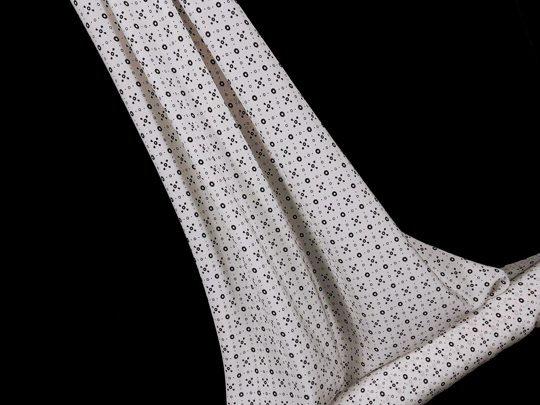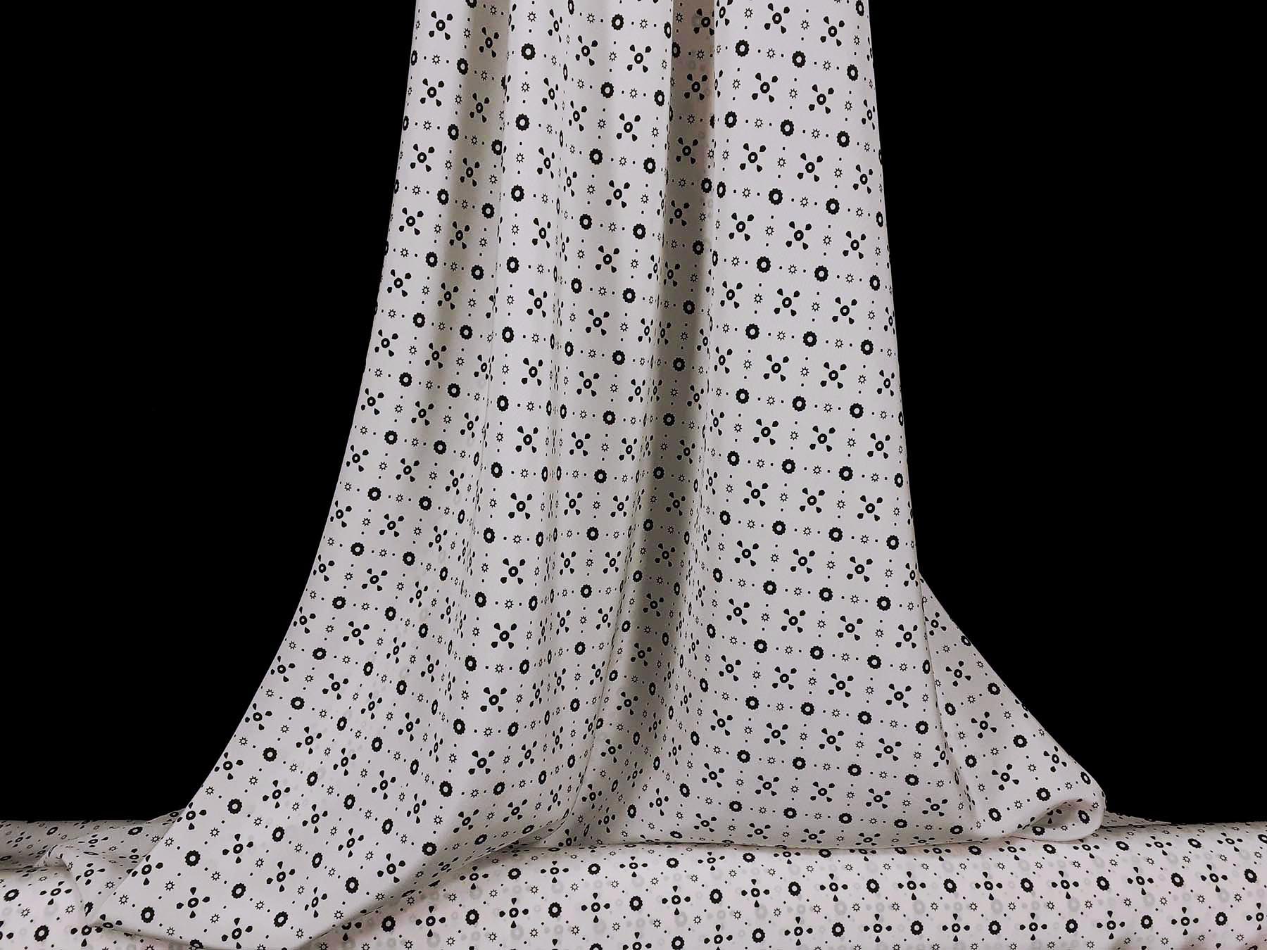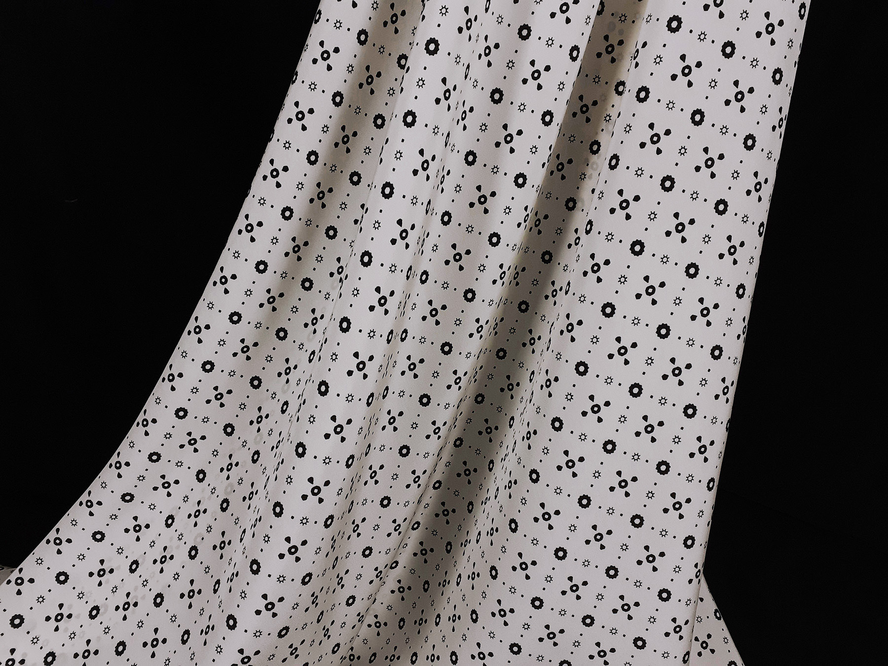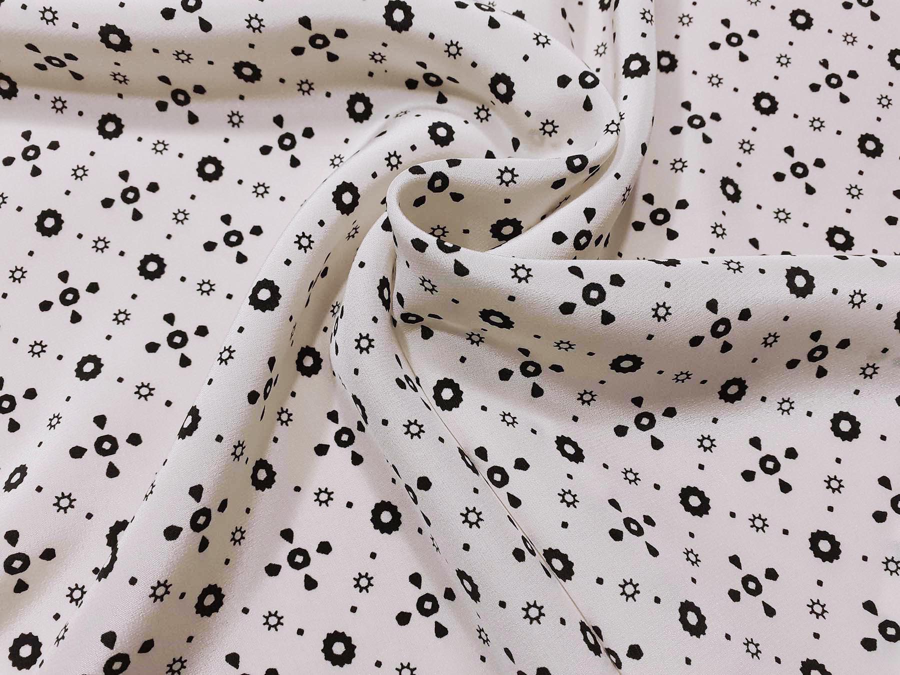 Crepe de Chine in seta fantasia geometrica nera su fondo avorio