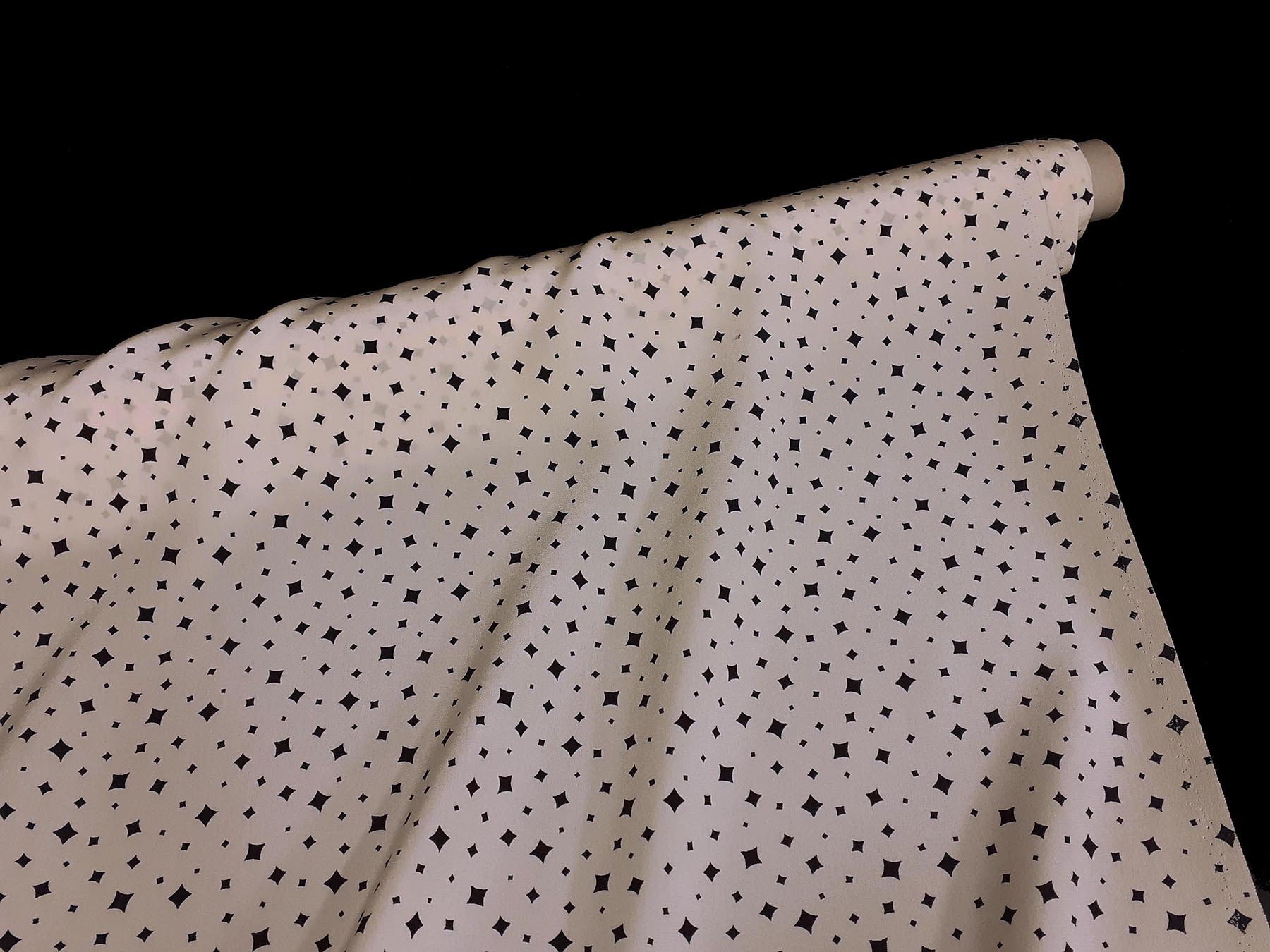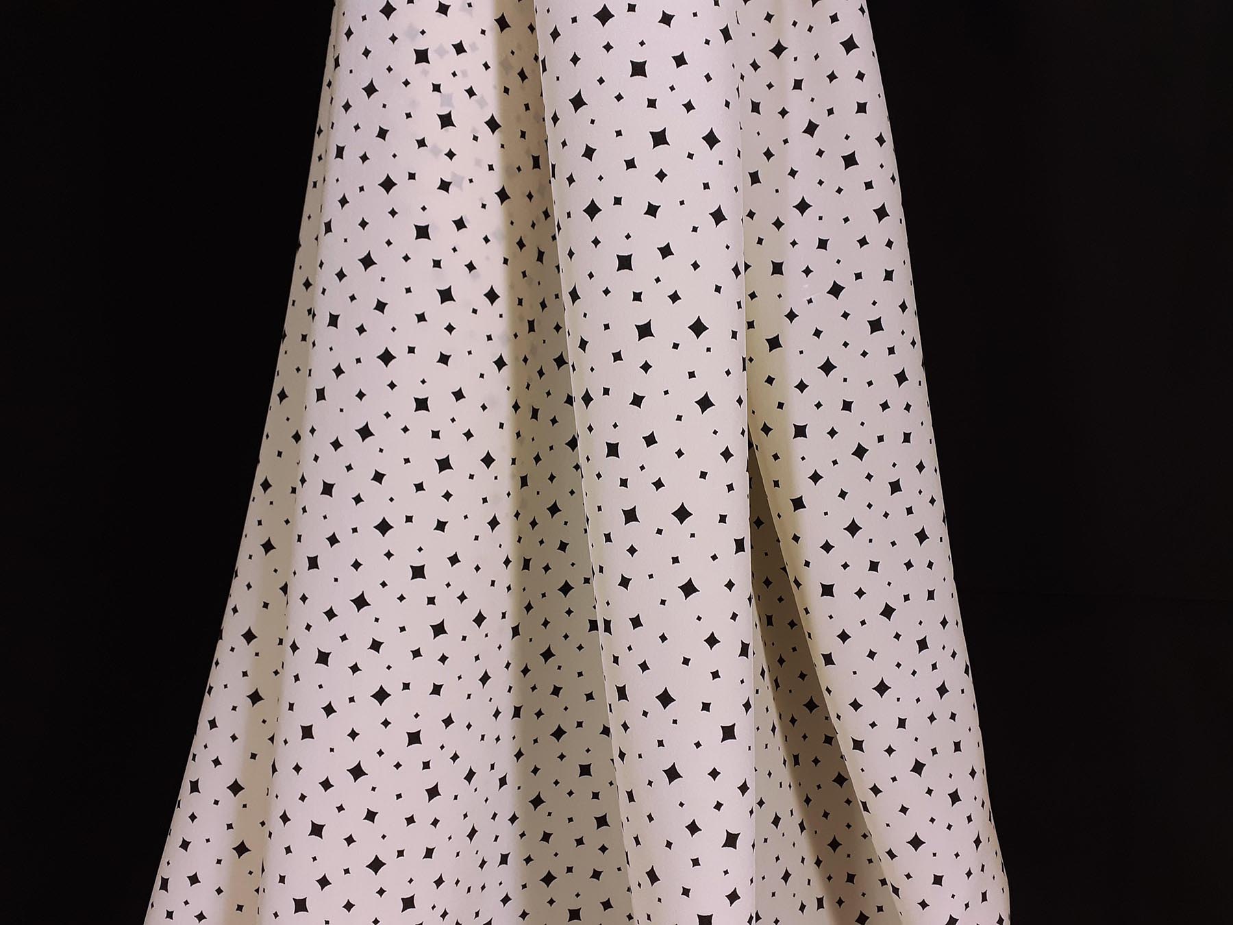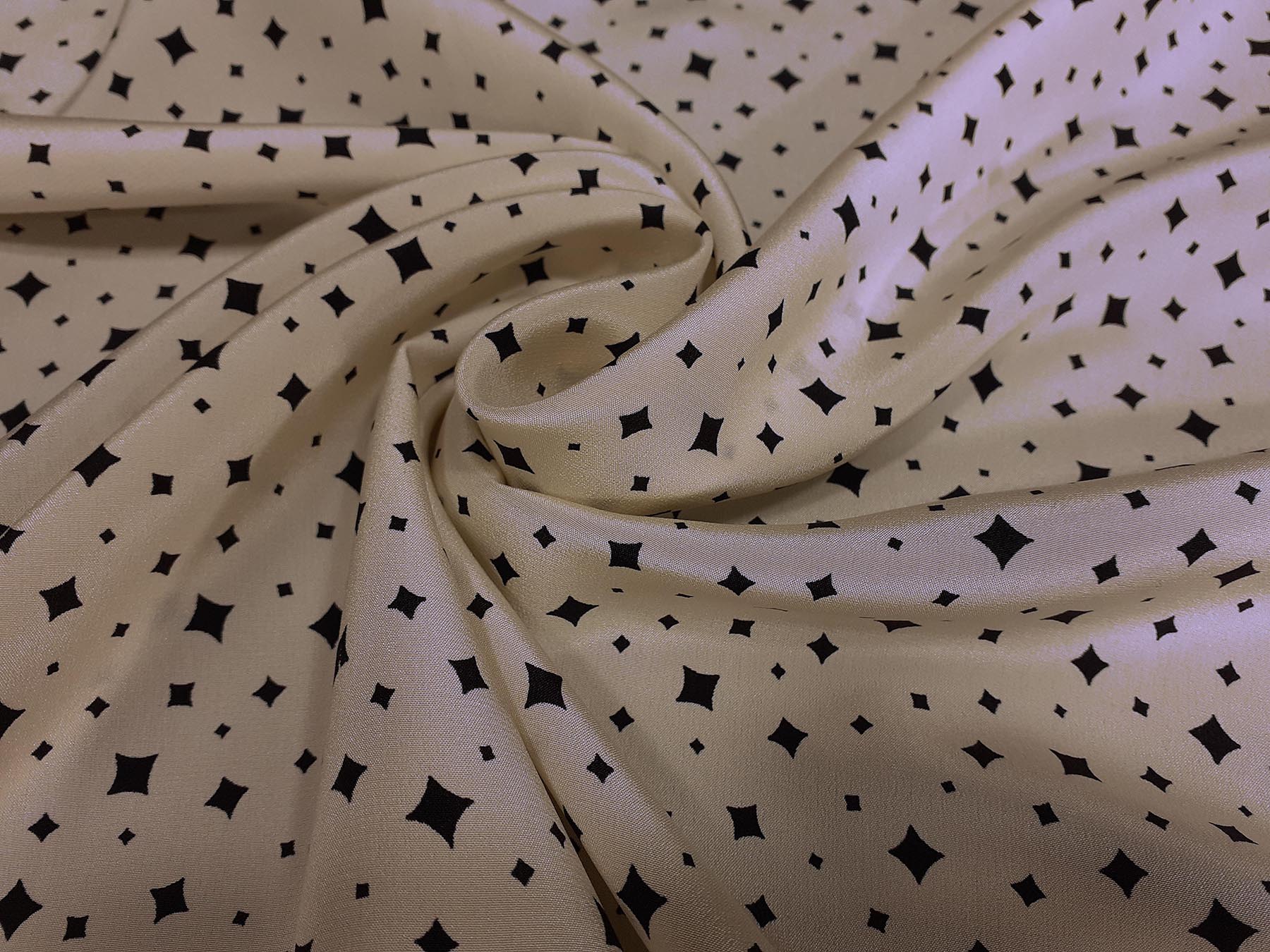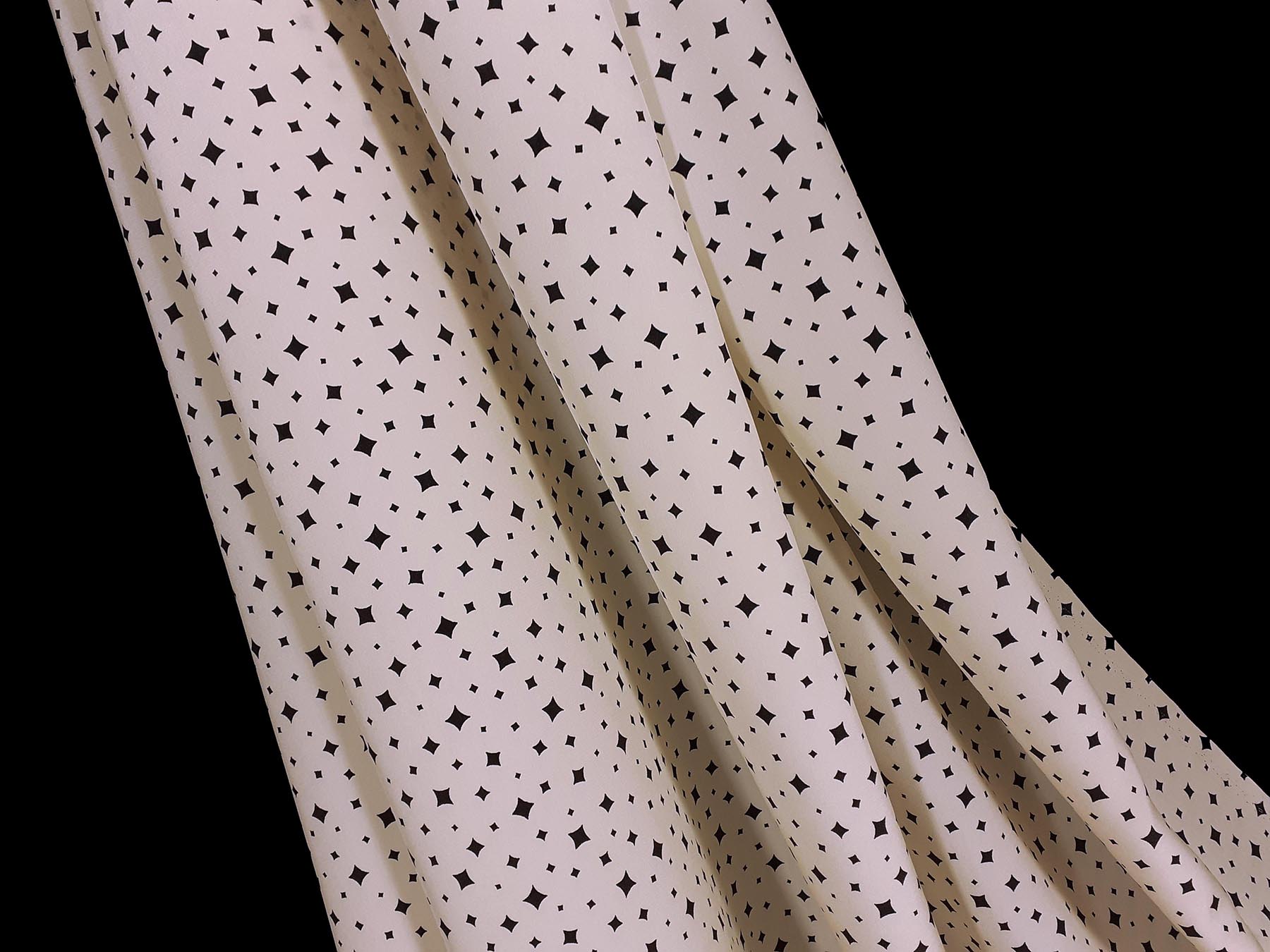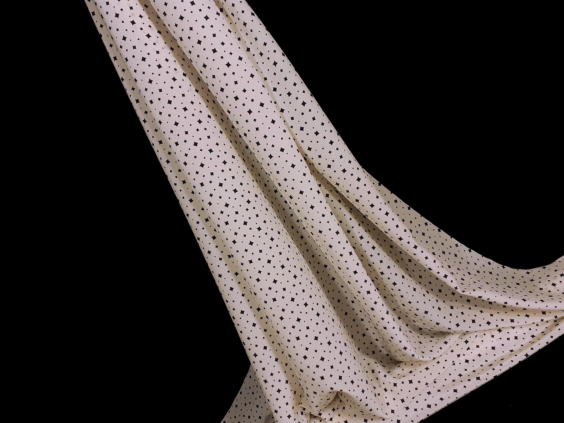 Crepe de Chine in seta fantasia geometrica nera su fondo avorio