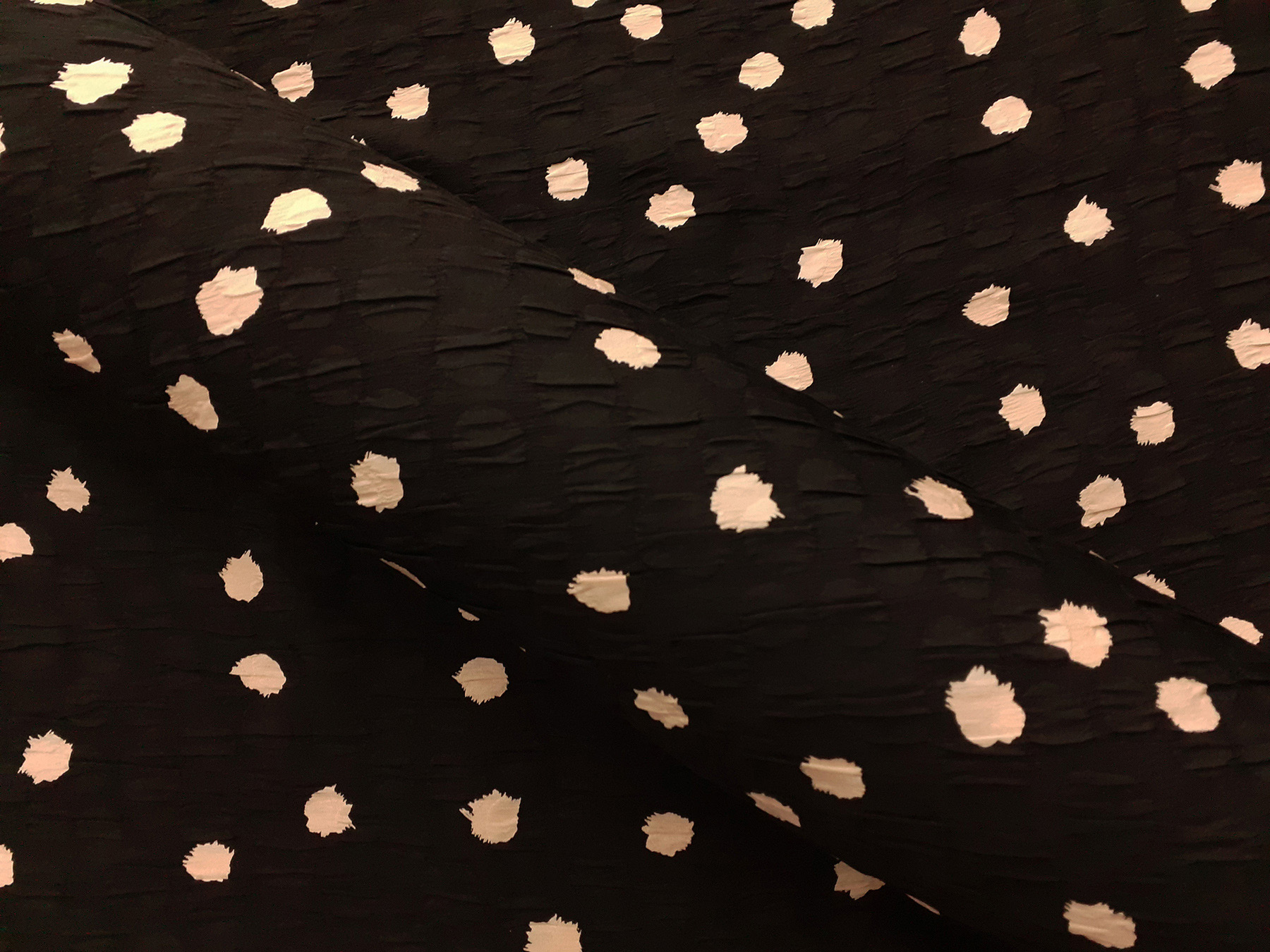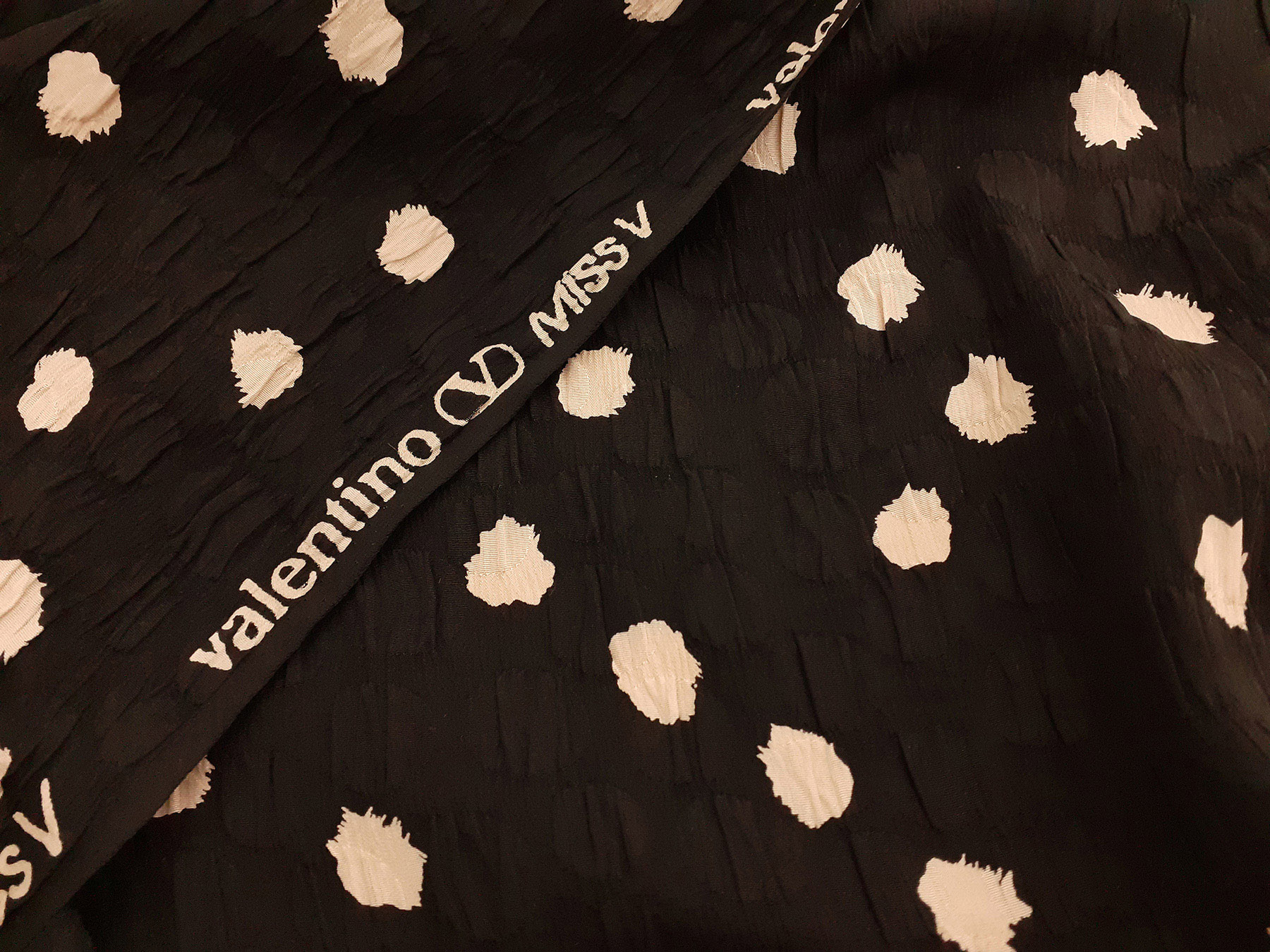 Seta jacquard fantasia astratta avorio su fondo nero. Valentino Miss V